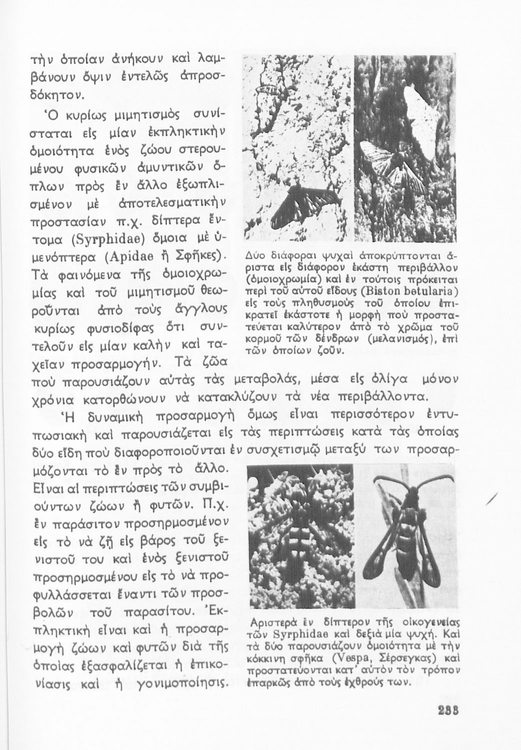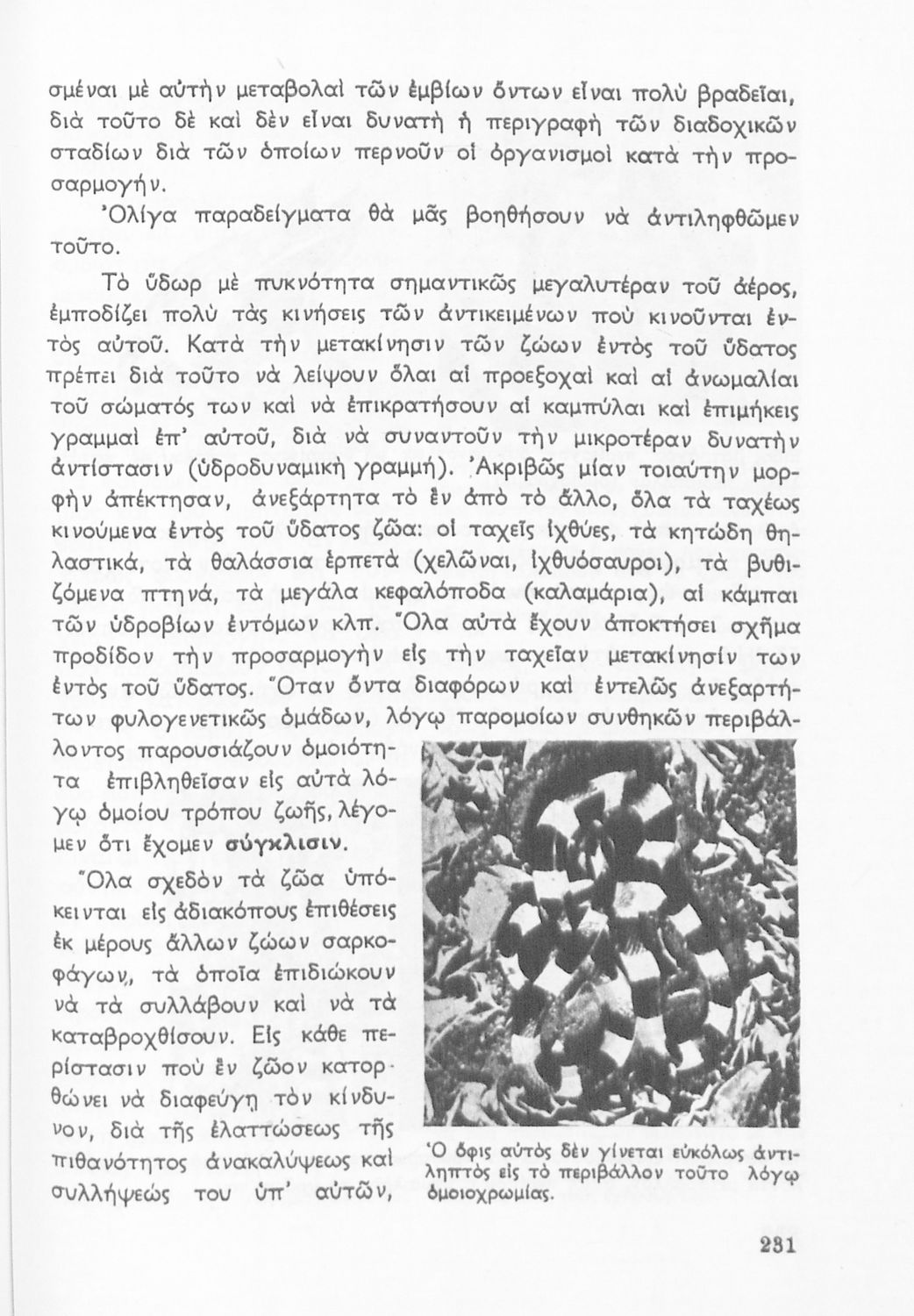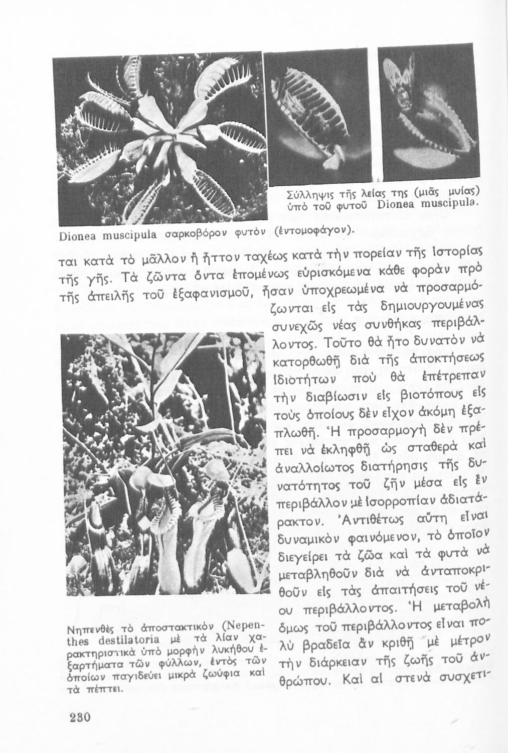 Σχολικό εγχειρίδιο Βιολογίας ΣΤ΄ Γυμνασίου που εστιάζει στις συνθήκες γέννησης, μεταβολής και θανάτου των έμβιων οργανισμών. Φέρει το σύμβολο της δικτατορίας. Ο συγγραφέας ήταν υφηγητής του Πανεπιστημίου Αθηνών.