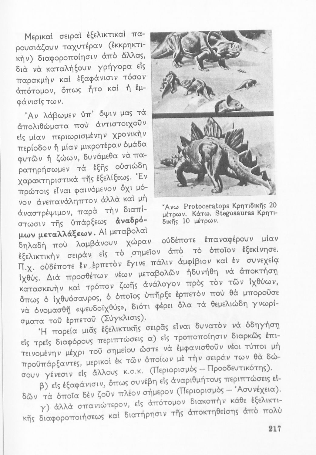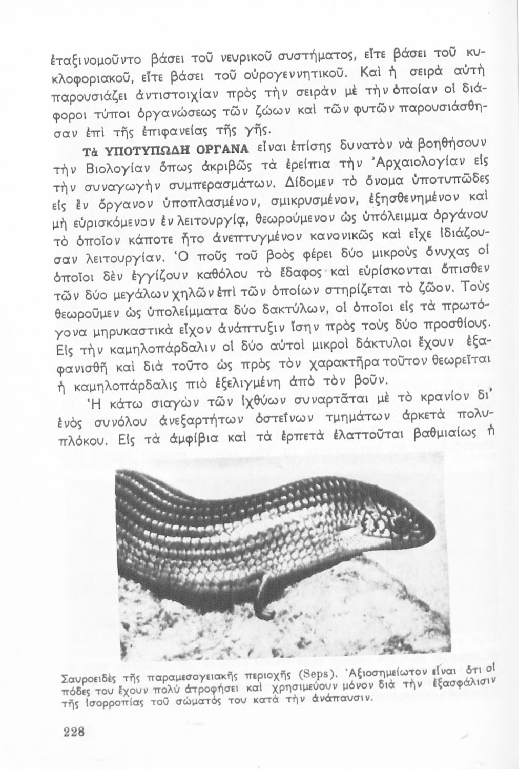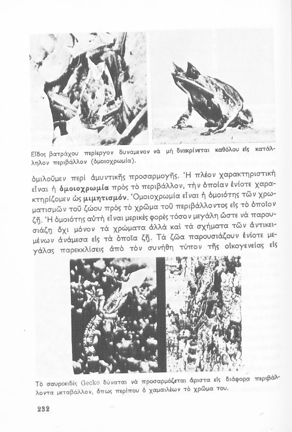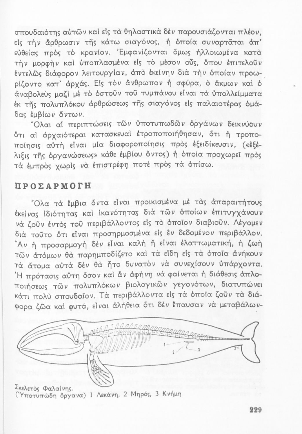 Σχολικό εγχειρίδιο Βιολογίας ΣΤ΄ Γυμνασίου που εστιάζει στις συνθήκες γέννησης, μεταβολής και θανάτου των έμβιων οργανισμών. Φέρει το σύμβολο της δικτατορίας. Ο συγγραφέας ήταν υφηγητής του Πανεπιστημίου Αθηνών.