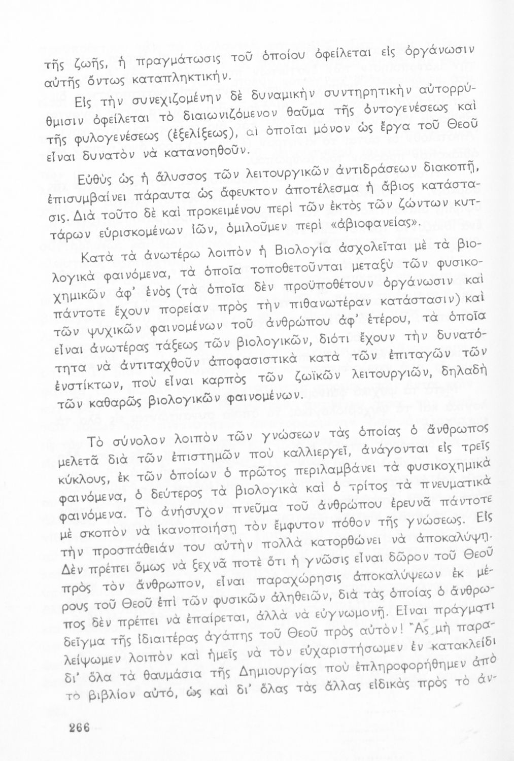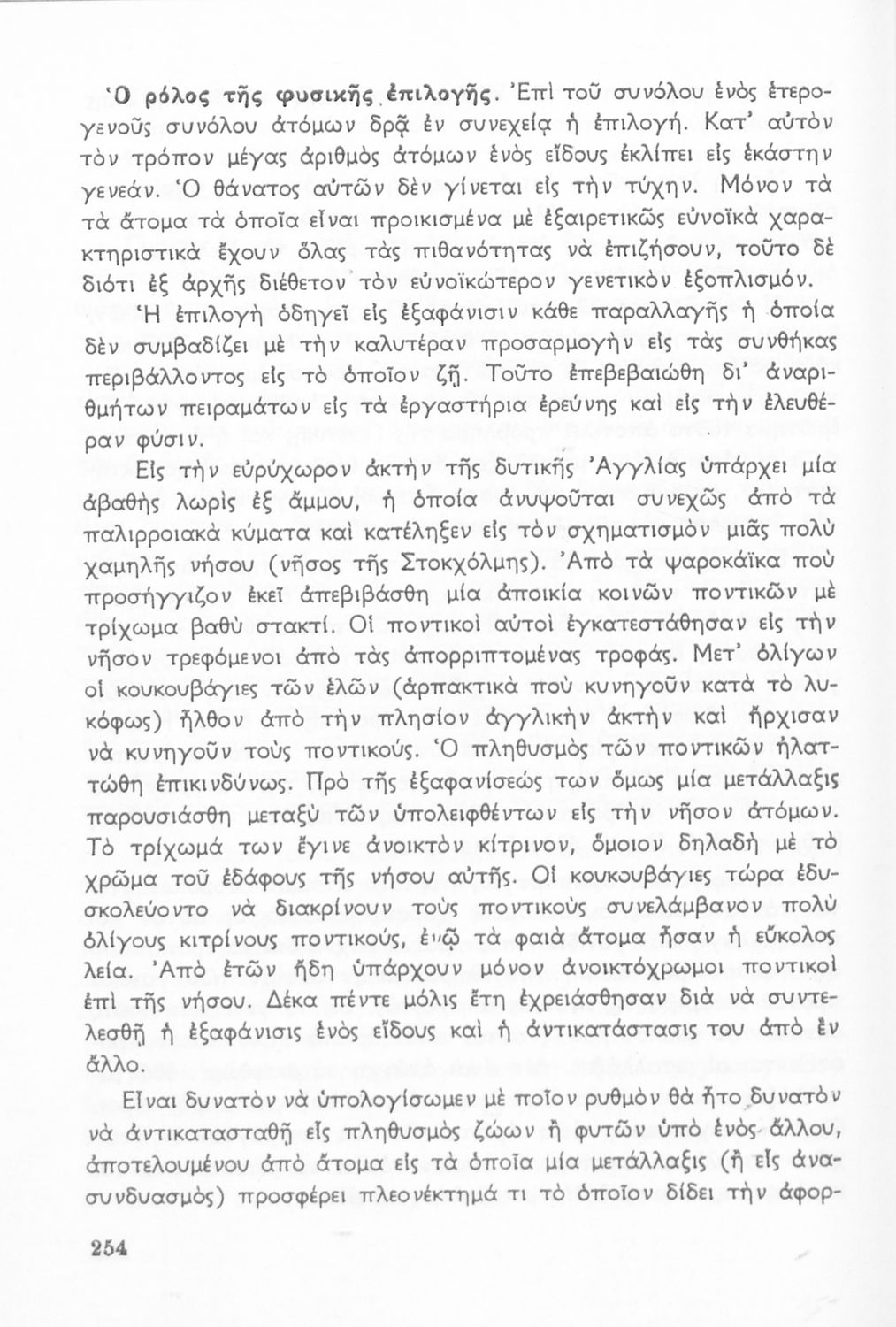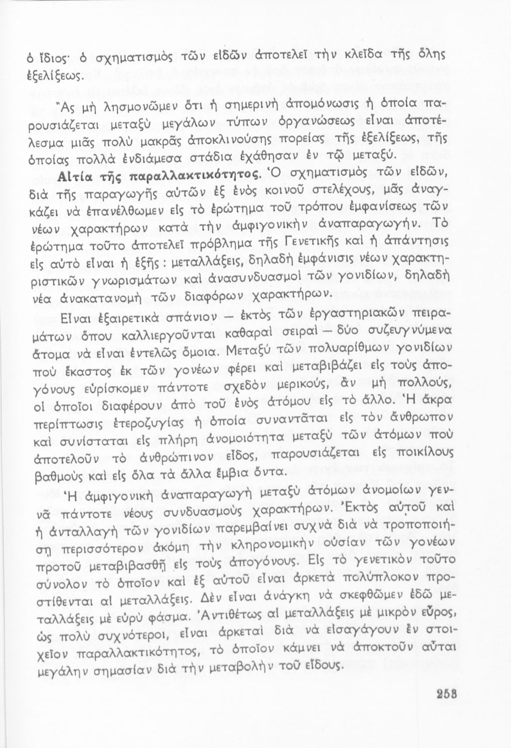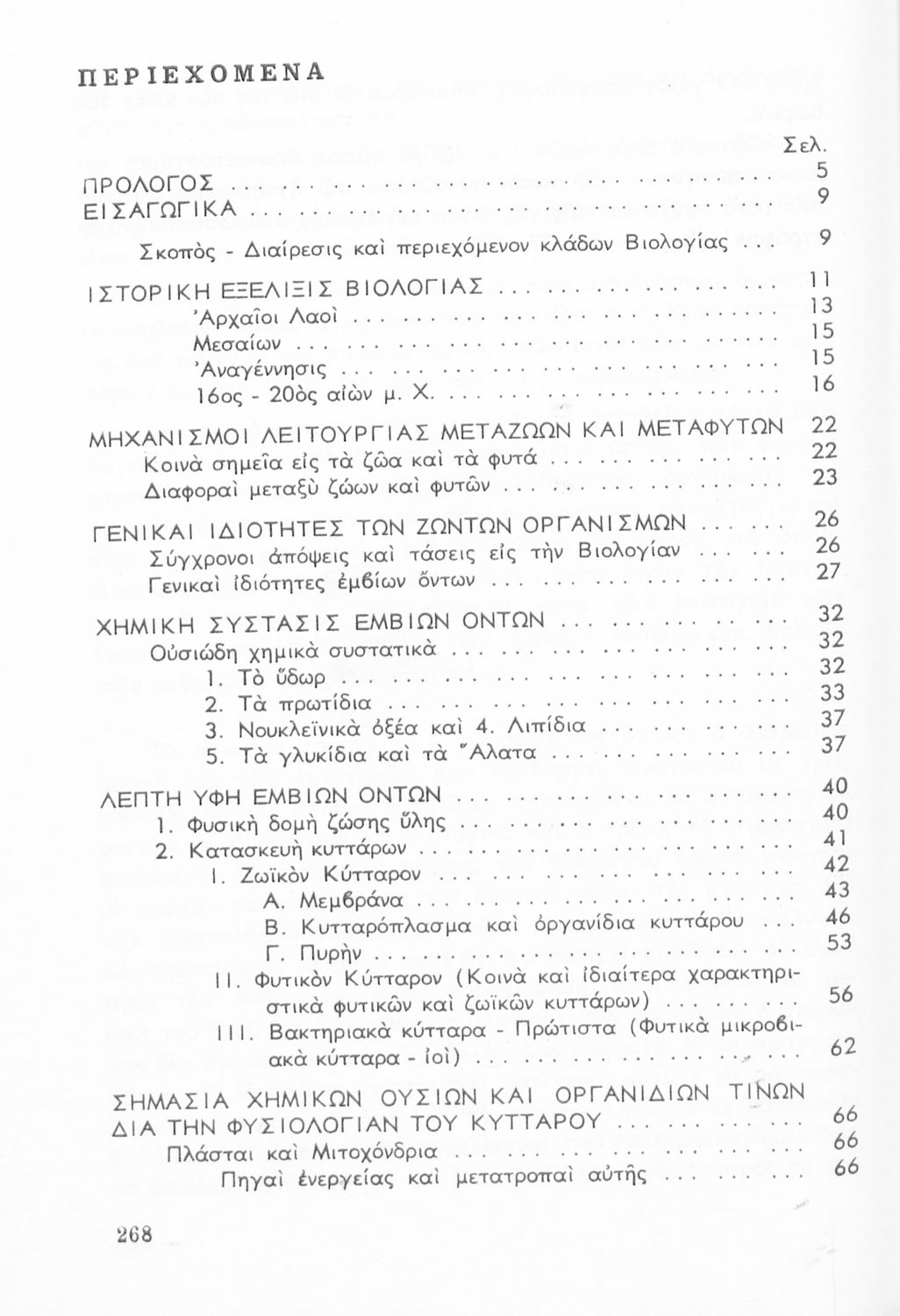 Σχολικό εγχειρίδιο Βιολογίας ΣΤ΄ Γυμνασίου που εστιάζει στις συνθήκες γέννησης, μεταβολής και θανάτου των έμβιων οργανισμών. Φέρει το σύμβολο της δικτατορίας. Ο συγγραφέας ήταν υφηγητής του Πανεπιστημίου Αθηνών.