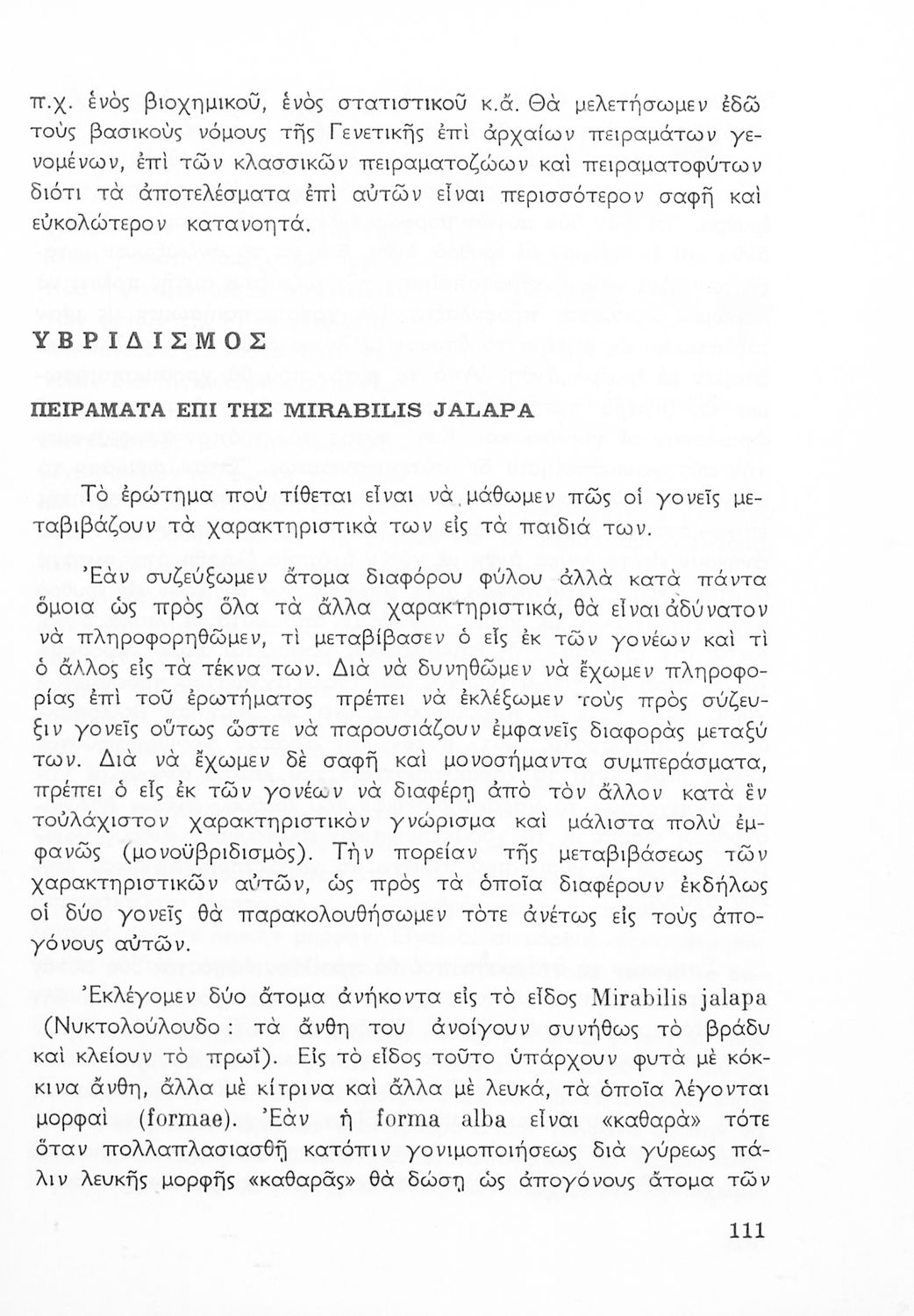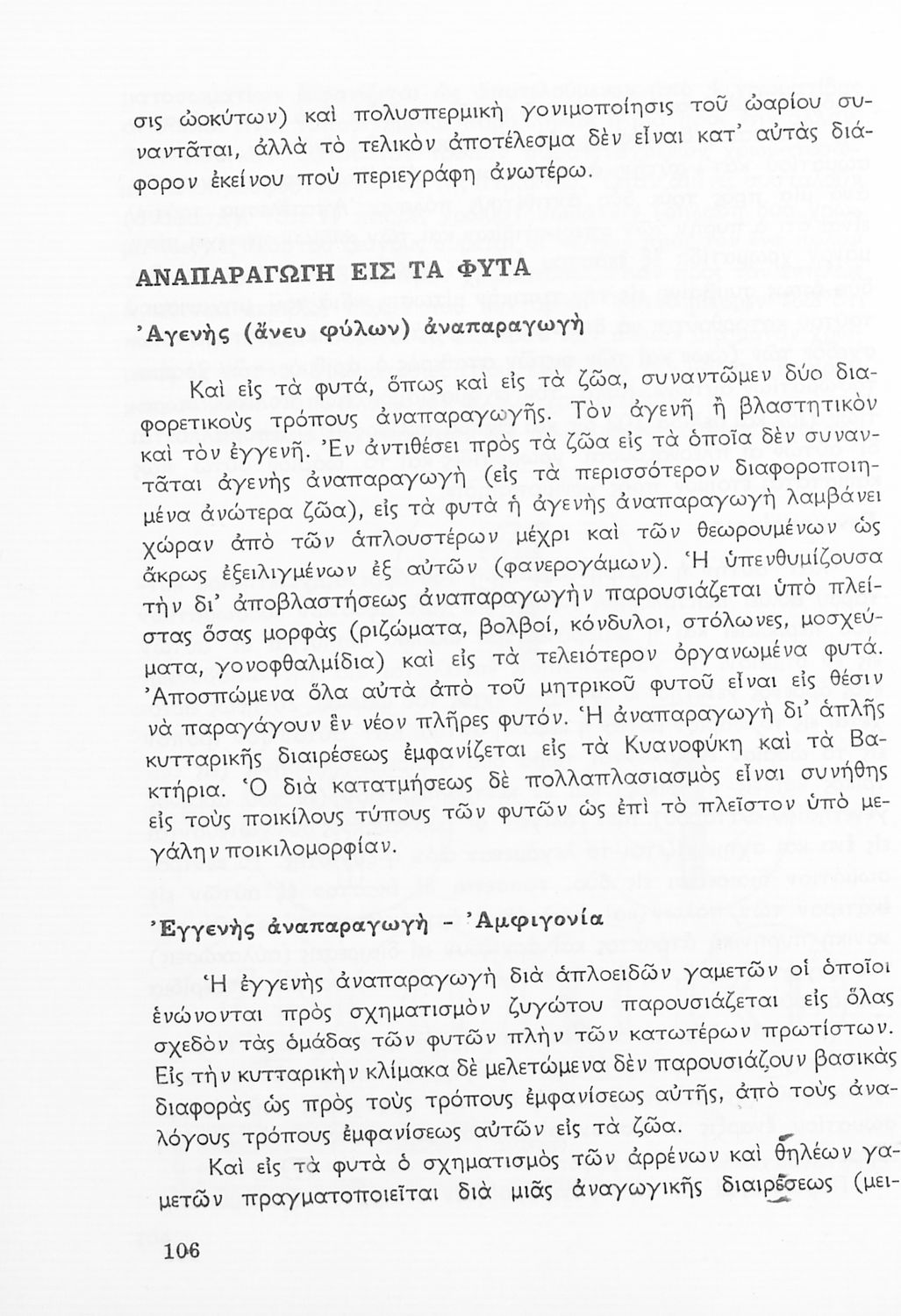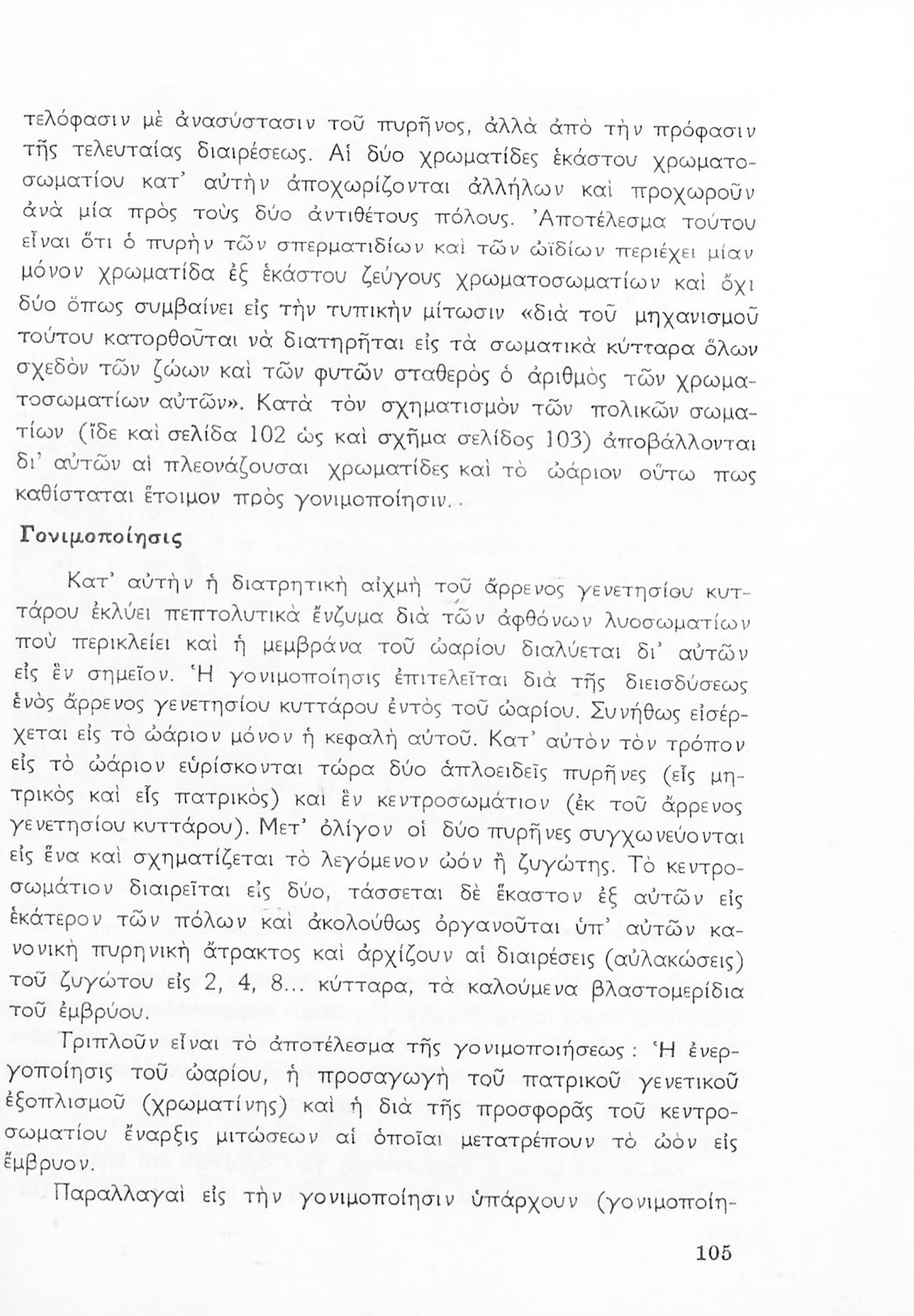Σχολικό εγχειρίδιο Βιολογίας ΣΤ΄ Γυμνασίου που εστιάζει στις συνθήκες γέννησης, μεταβολής και θανάτου των έμβιων οργανισμών. Φέρει το σύμβολο της δικτατορίας. Ο συγγραφέας ήταν υφηγητής του Πανεπιστημίου Αθηνών.