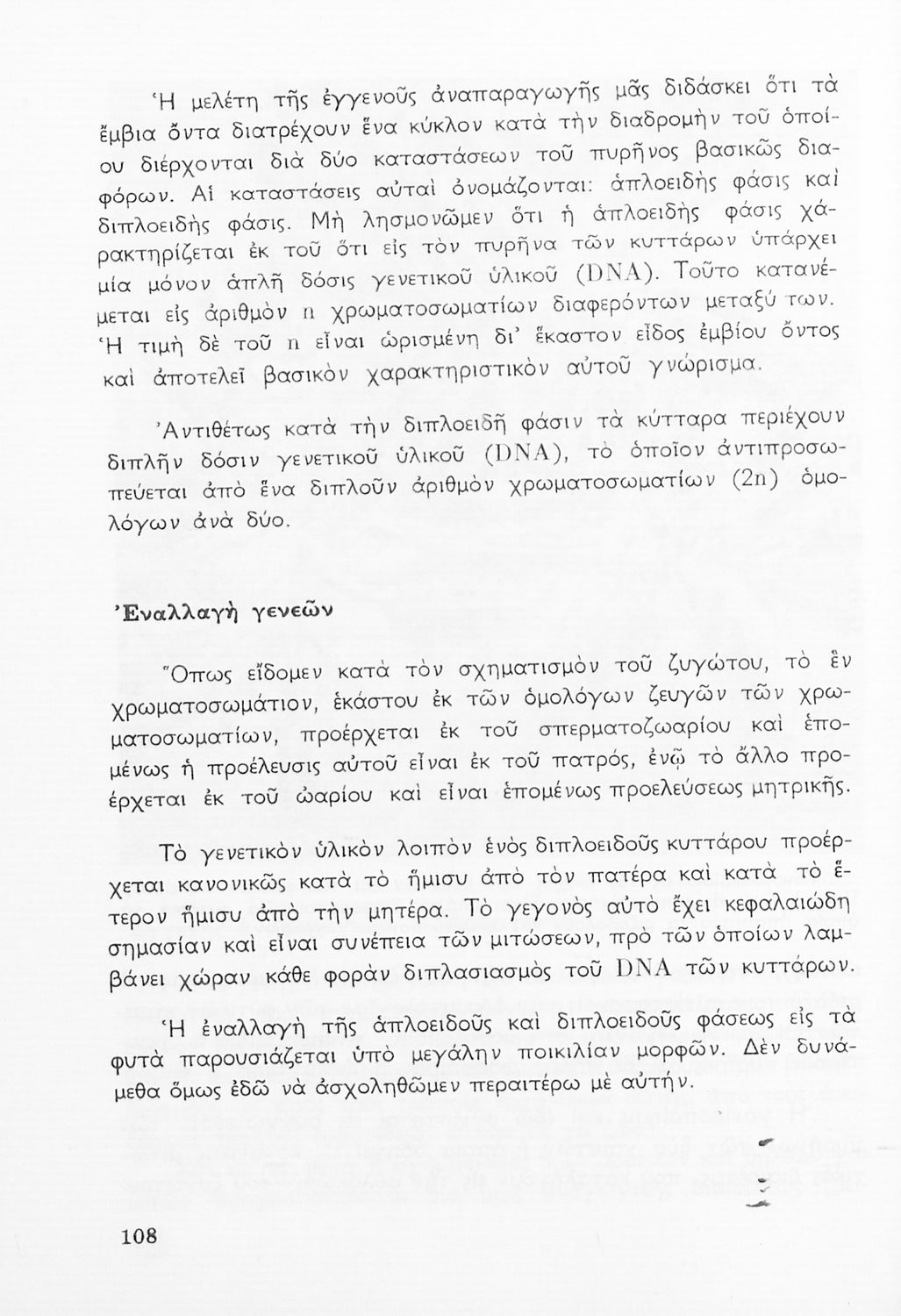 Παρουσίαση περιεχομένου: Σχολικό εγχειρίδιο Βιολογίας ΣΤ΄ Γυμνασίου που εστιάζει στις συνθήκες γέννησης, μεταβολής και θανάτου των έμβιων οργανισμών. Φέρει το σύμβολο της δικτατορίας. Ο συγγραφέας ήταν υφηγητής του Πανεπιστημίου Αθηνών.