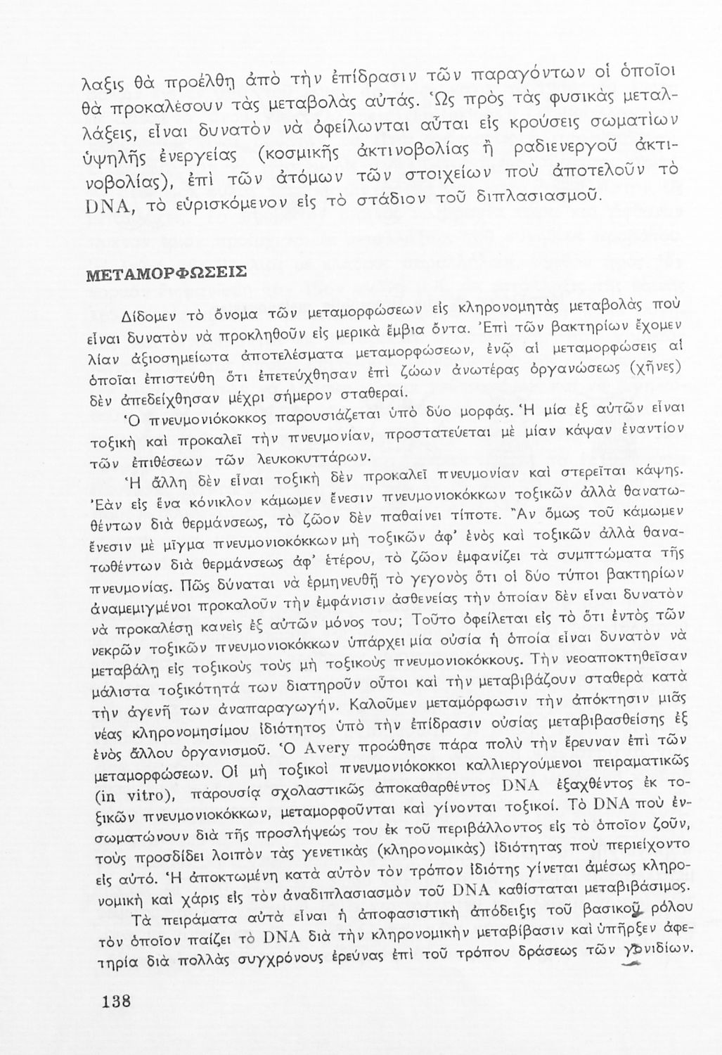 Σχολικό εγχειρίδιο Βιολογίας ΣΤ΄ Γυμνασίου που εστιάζει στις συνθήκες γέννησης, μεταβολής και θανάτου των έμβιων οργανισμών. Φέρει το σύμβολο της δικτατορίας. Ο συγγραφέας ήταν υφηγητής του Πανεπιστημίου Αθηνών.