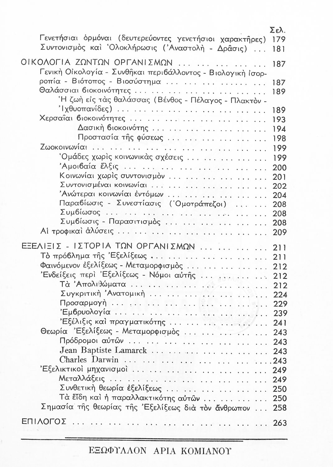 Σχολικό εγχειρίδιο Βιολογίας Δ΄ Γυμνασίου που εστιάζει στις συνθήκες γέννησης, μεταβολής και θανάτου των έμβιων οργανισμών. Ο συγγραφέας ήταν καθηγητής της γενικής Βιολογίας στο Πανεπιστήμιο Αθηνών.