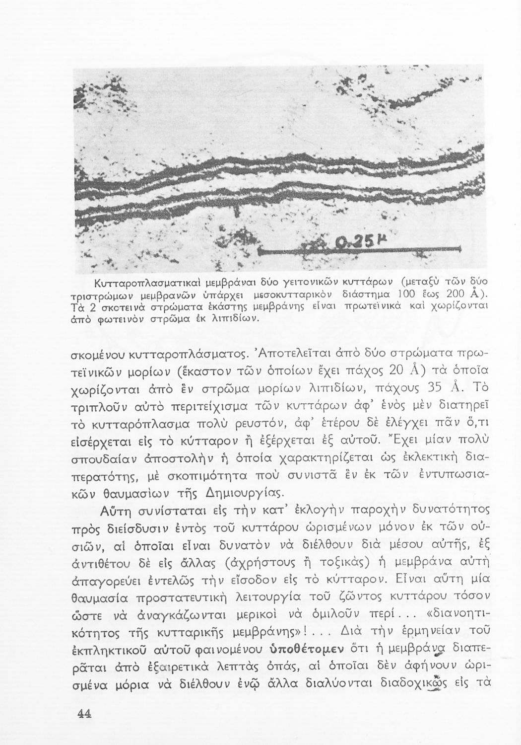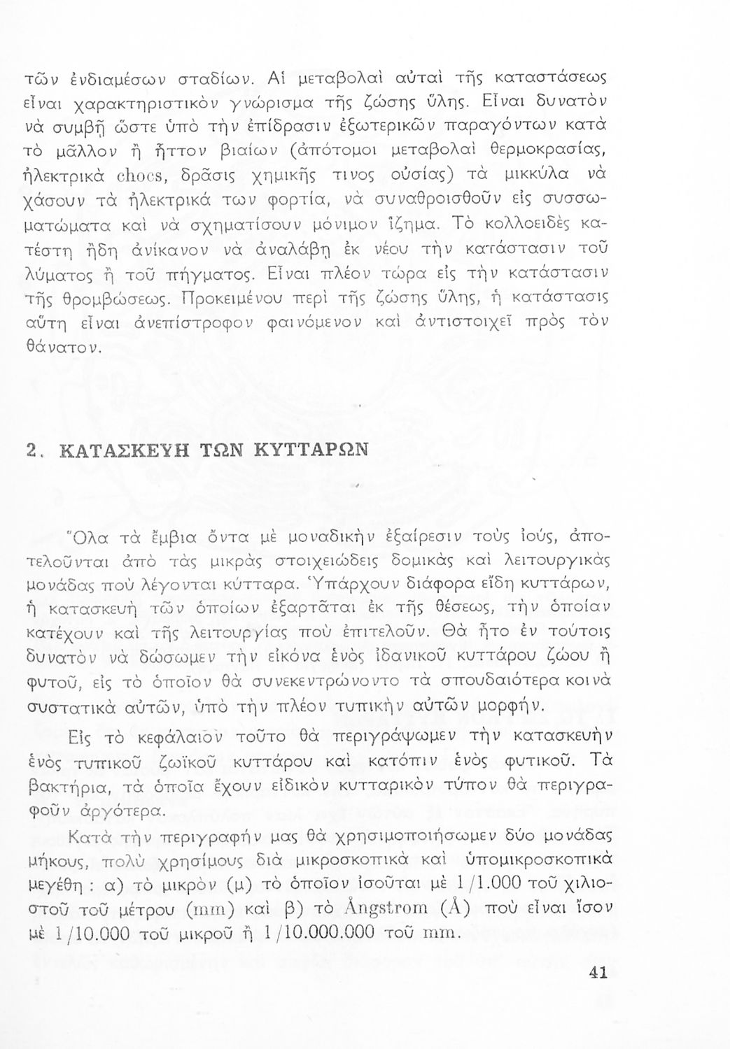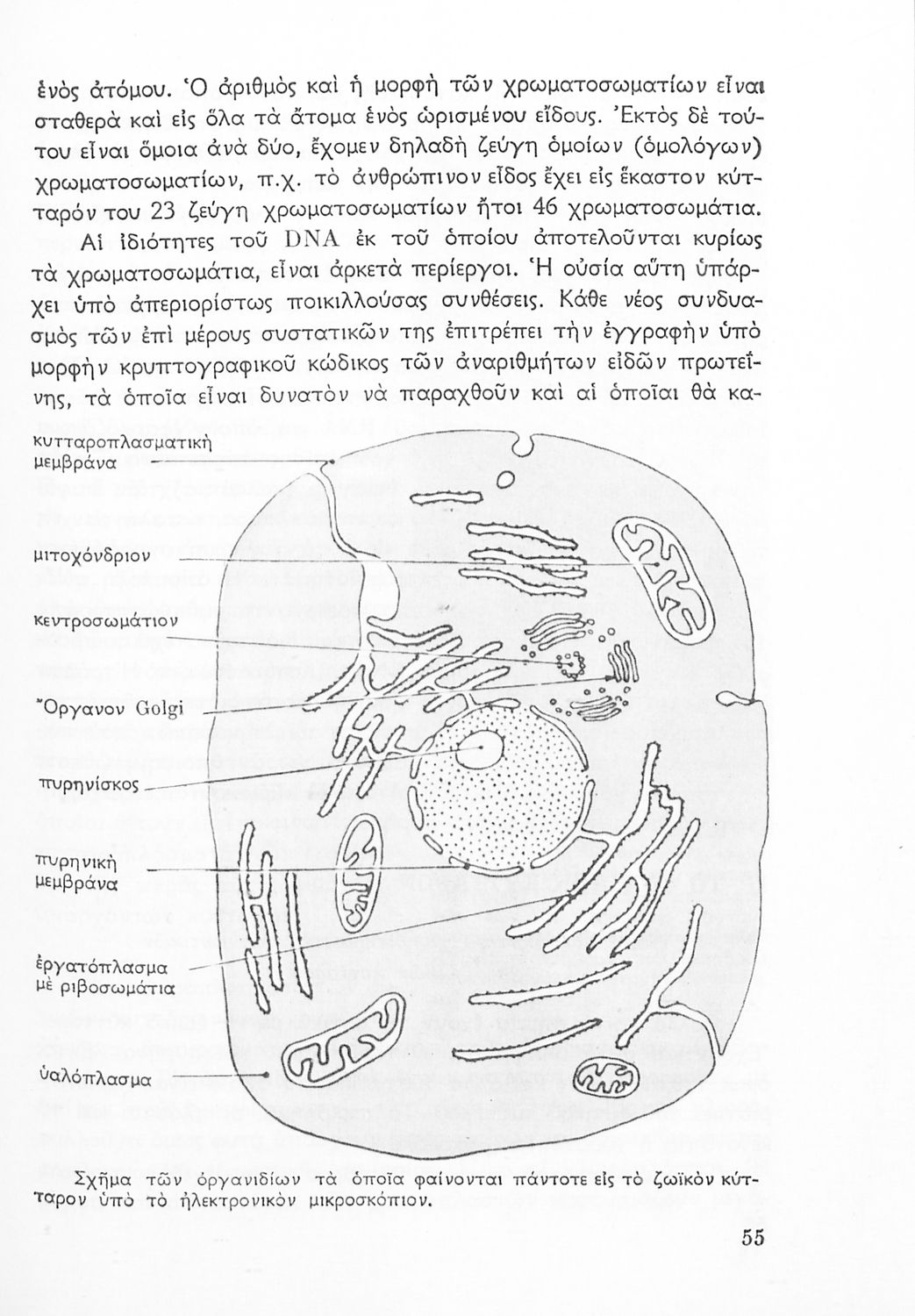 Σχολικό εγχειρίδιο Βιολογίας ΣΤ΄ Γυμνασίου που εστιάζει στις συνθήκες γέννησης, μεταβολής και θανάτου των έμβιων οργανισμών. Φέρει το σύμβολο της δικτατορίας. Ο συγγραφέας ήταν υφηγητής του Πανεπιστημίου Αθηνών.