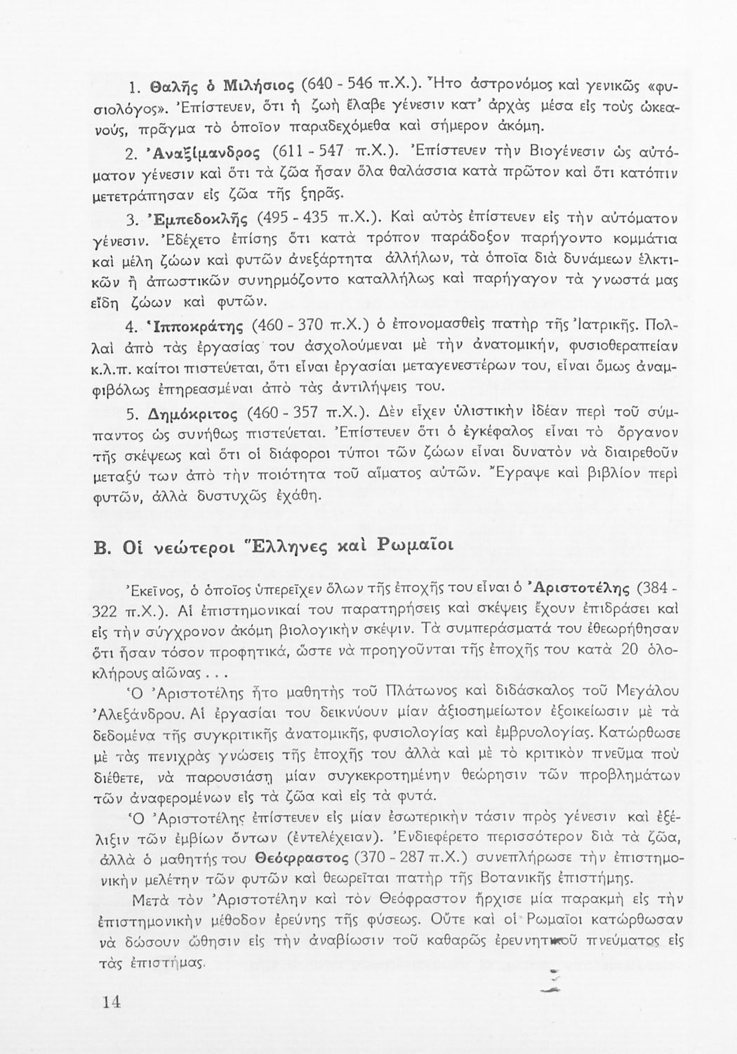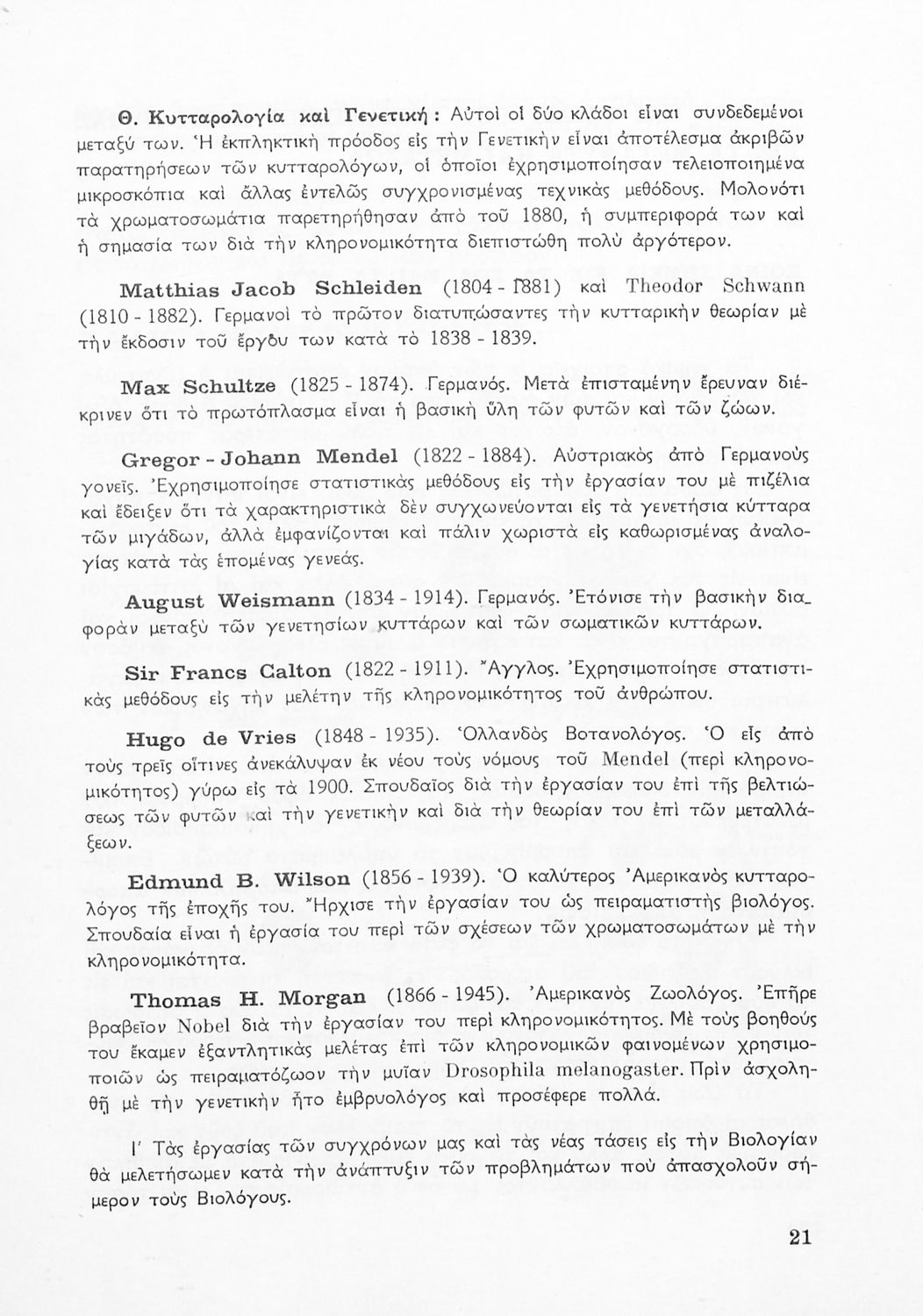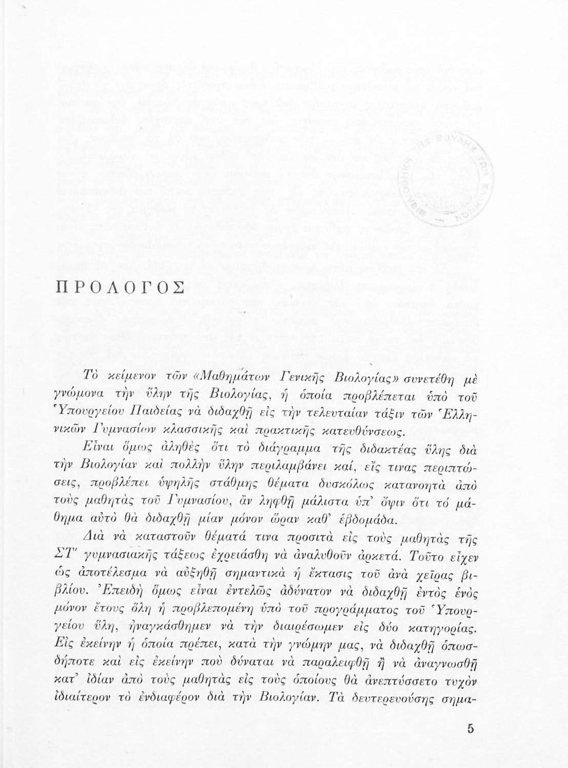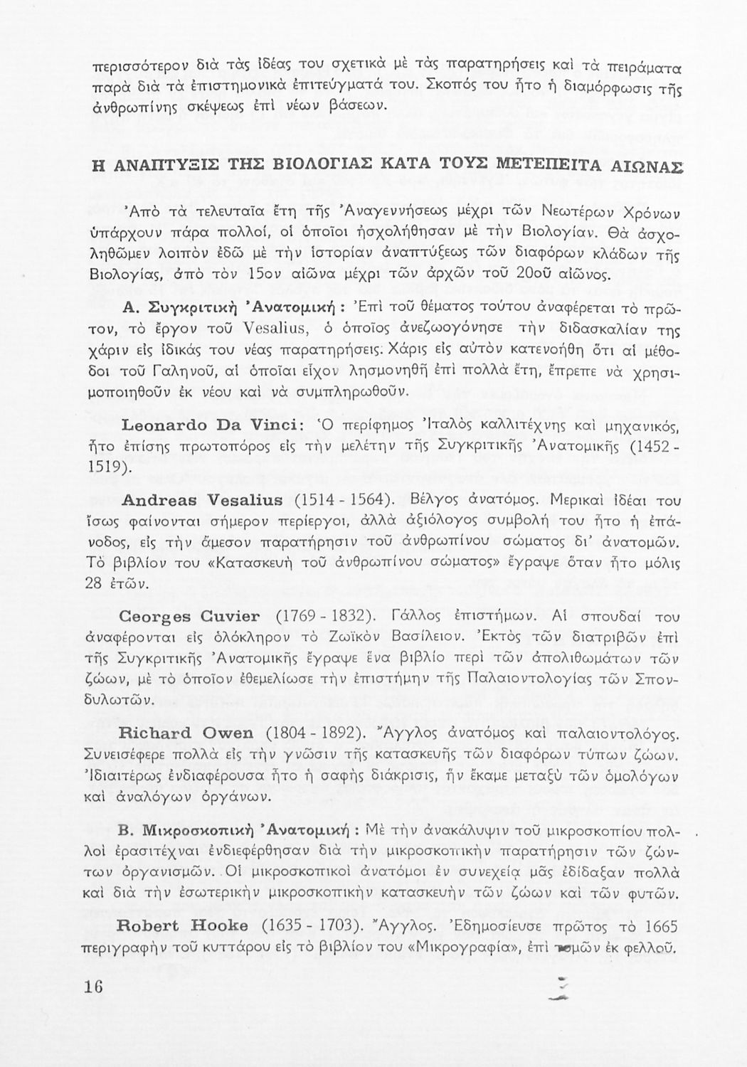 Σχολικό εγχειρίδιο Βιολογίας ΣΤ΄ Γυμνασίου που εστιάζει στις συνθήκες γέννησης, μεταβολής και θανάτου των έμβιων οργανισμών. Φέρει το σύμβολο της δικτατορίας. Ο συγγραφέας ήταν υφηγητής του Πανεπιστημίου Αθηνών.