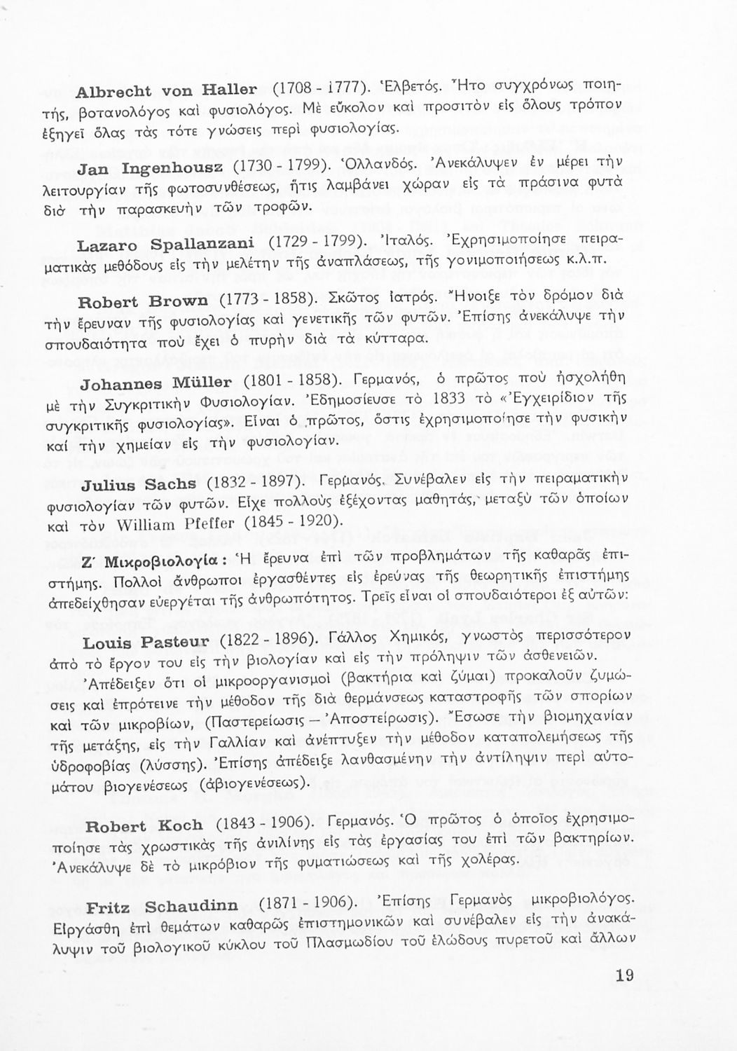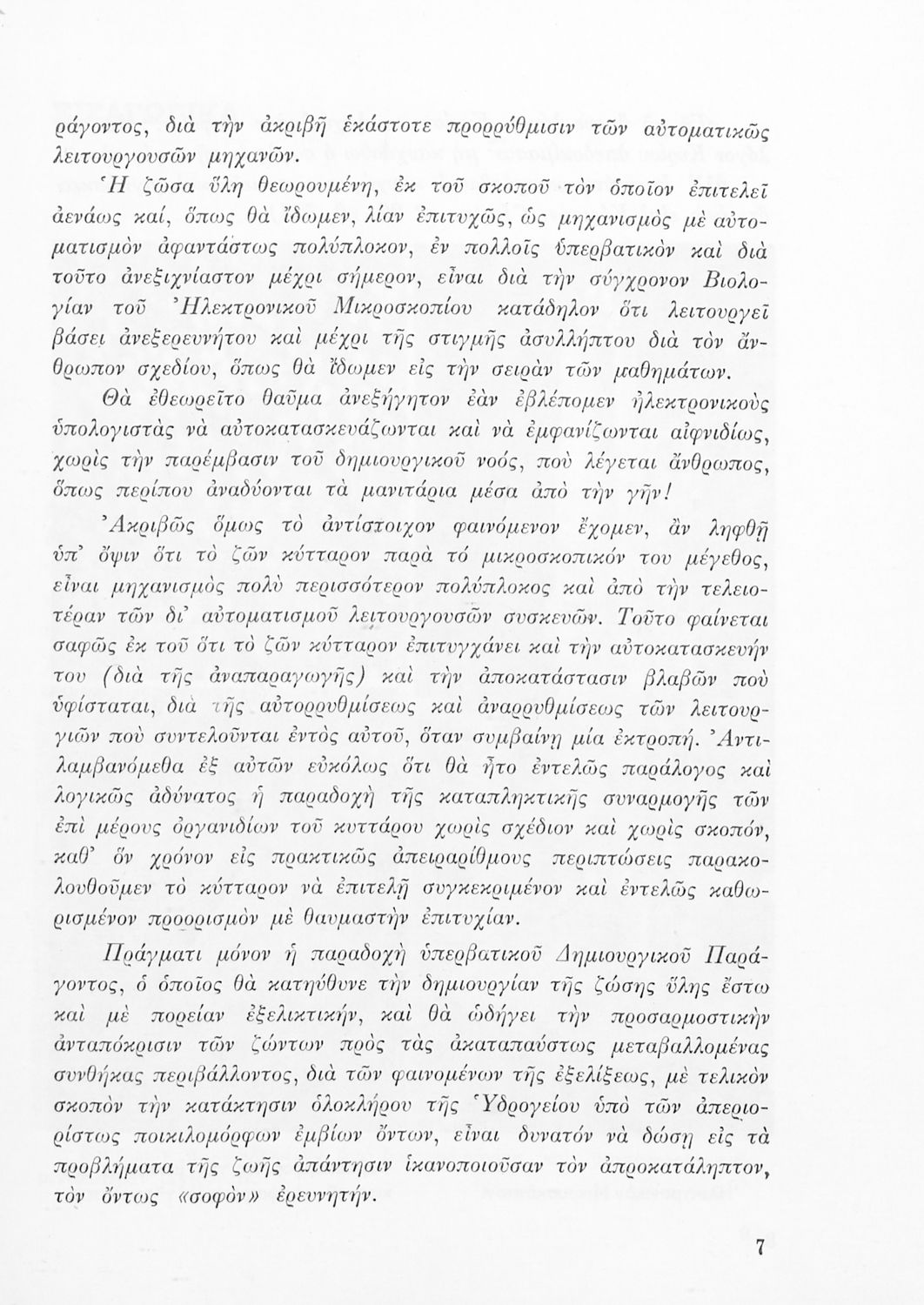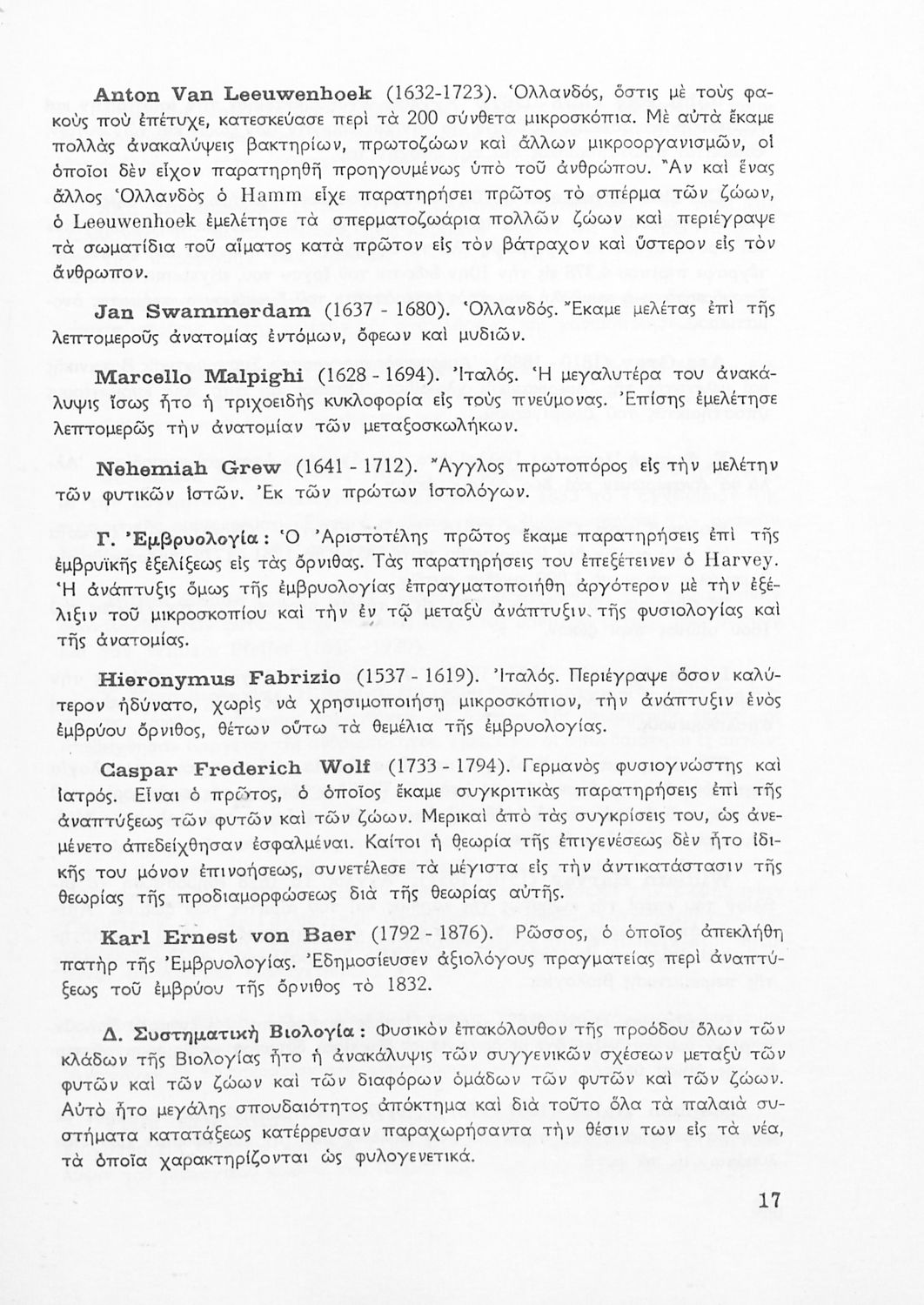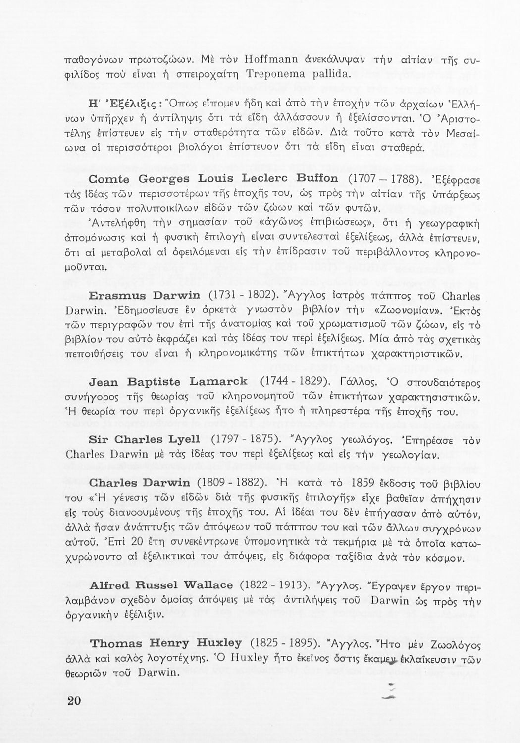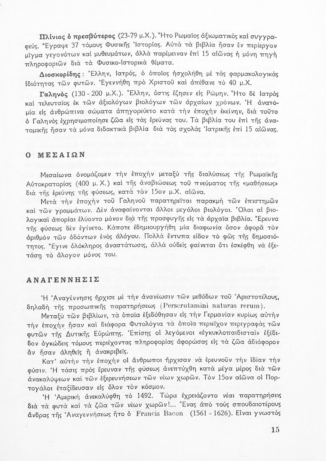 Σχολικό εγχειρίδιο Βιολογίας ΣΤ΄ Γυμνασίου που εστιάζει στις συνθήκες γέννησης, μεταβολής και θανάτου των έμβιων οργανισμών. Φέρει το σύμβολο της δικτατορίας. Ο συγγραφέας ήταν υφηγητής του Πανεπιστημίου Αθηνών.