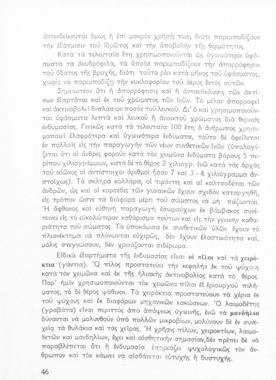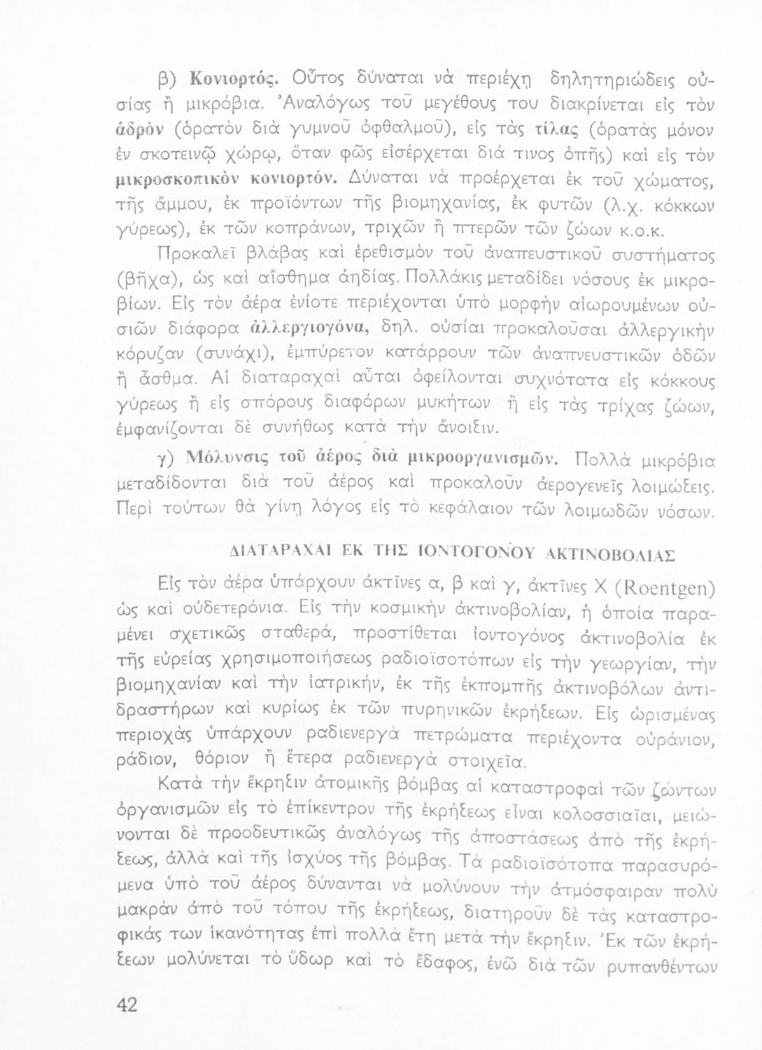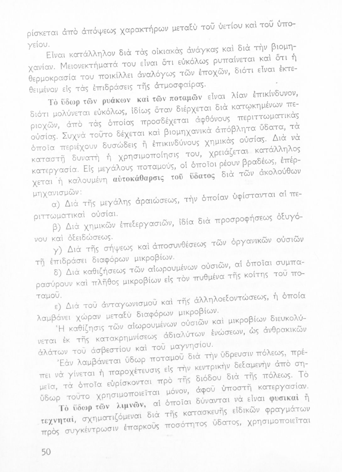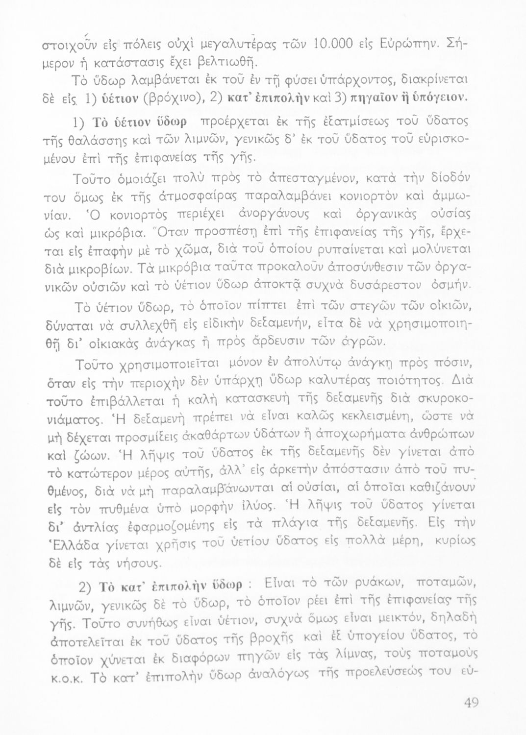 Σχολικό εγχειρίδιο Υγιεινής για τους μαθητές της Ε' τάξης του Γυμνασίου. Το βιβλίο αναφέρεται στις συνθήκες και τις αιτίες που επηρεάζουν την υγεία του ατόμου ή μιας ομάδας ατόμων και παρουσιάζει τα μέτρα που πρέπει να ληφθούν για την ανάκτηση και διατήρηση της υγιεινής των ανθρώπων. Πιο συγκεκριμένα αναφέρεται στην επίδραση της ατμόσφαιρας, του νερού, των λοιμωδών νοσημάτων αλλά και της κληρονομικότητας.