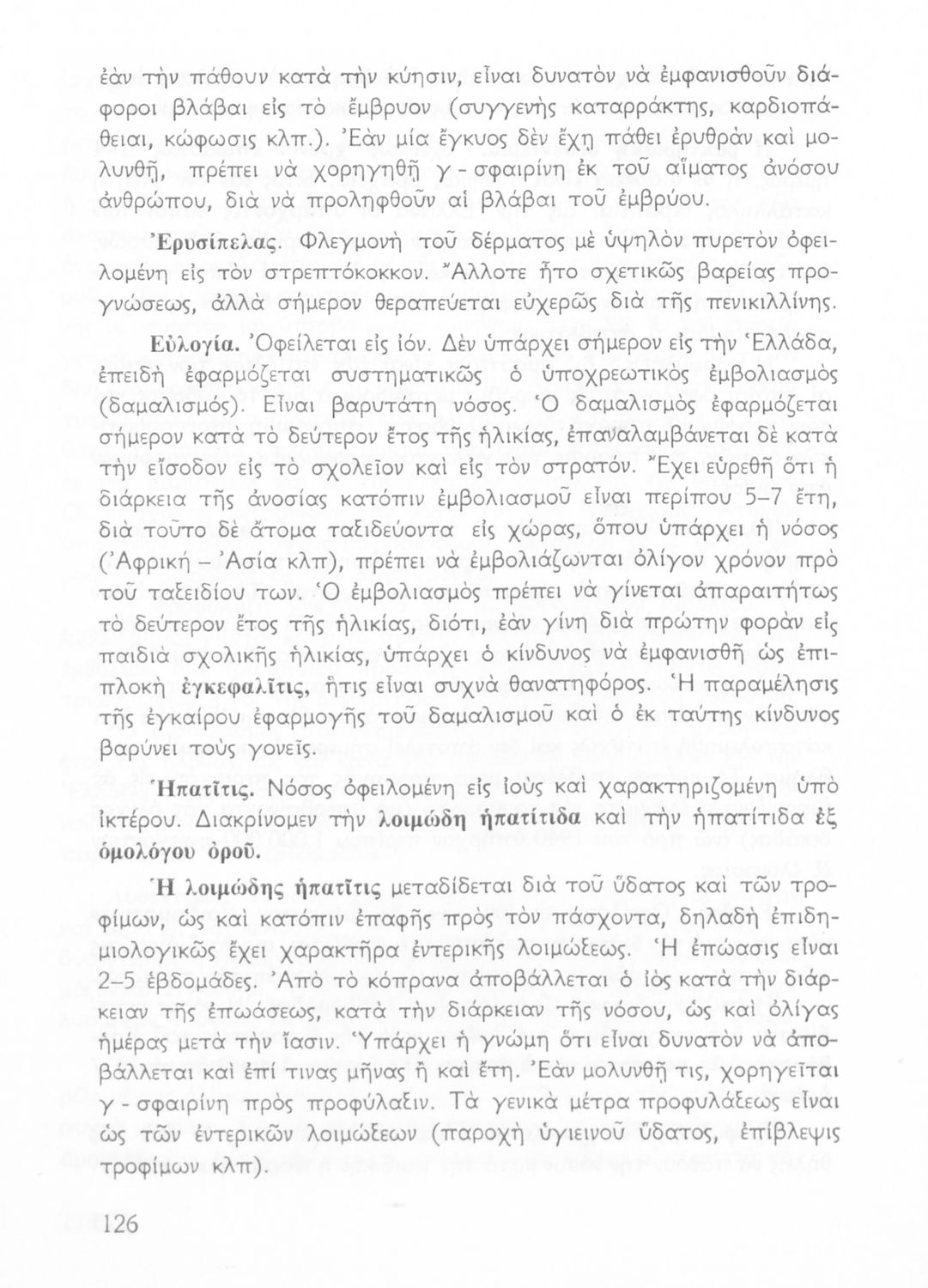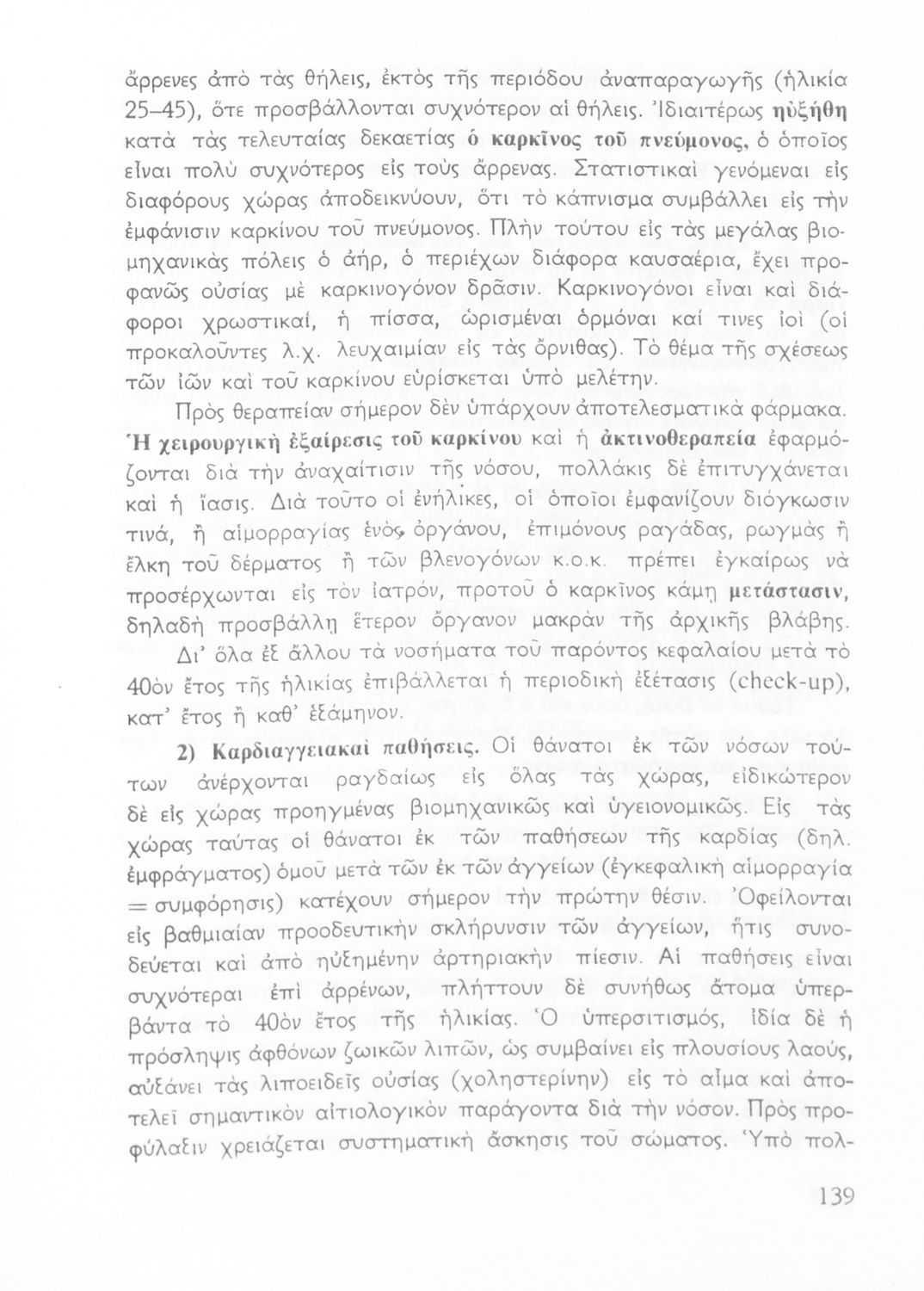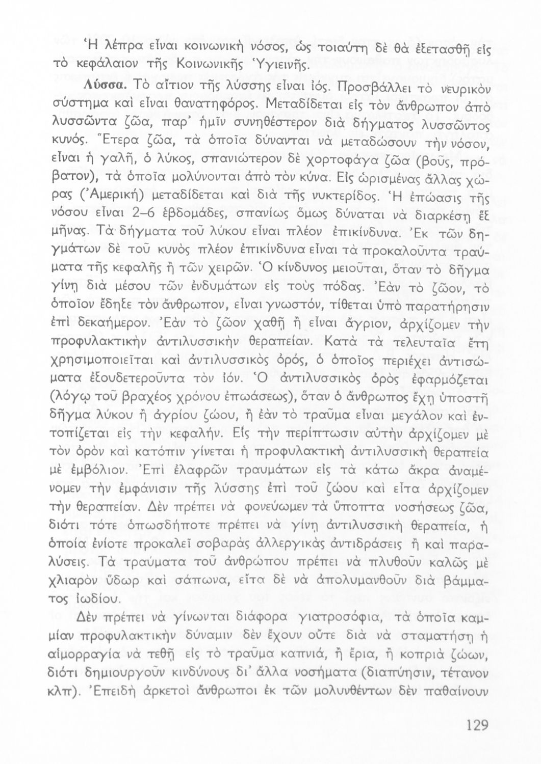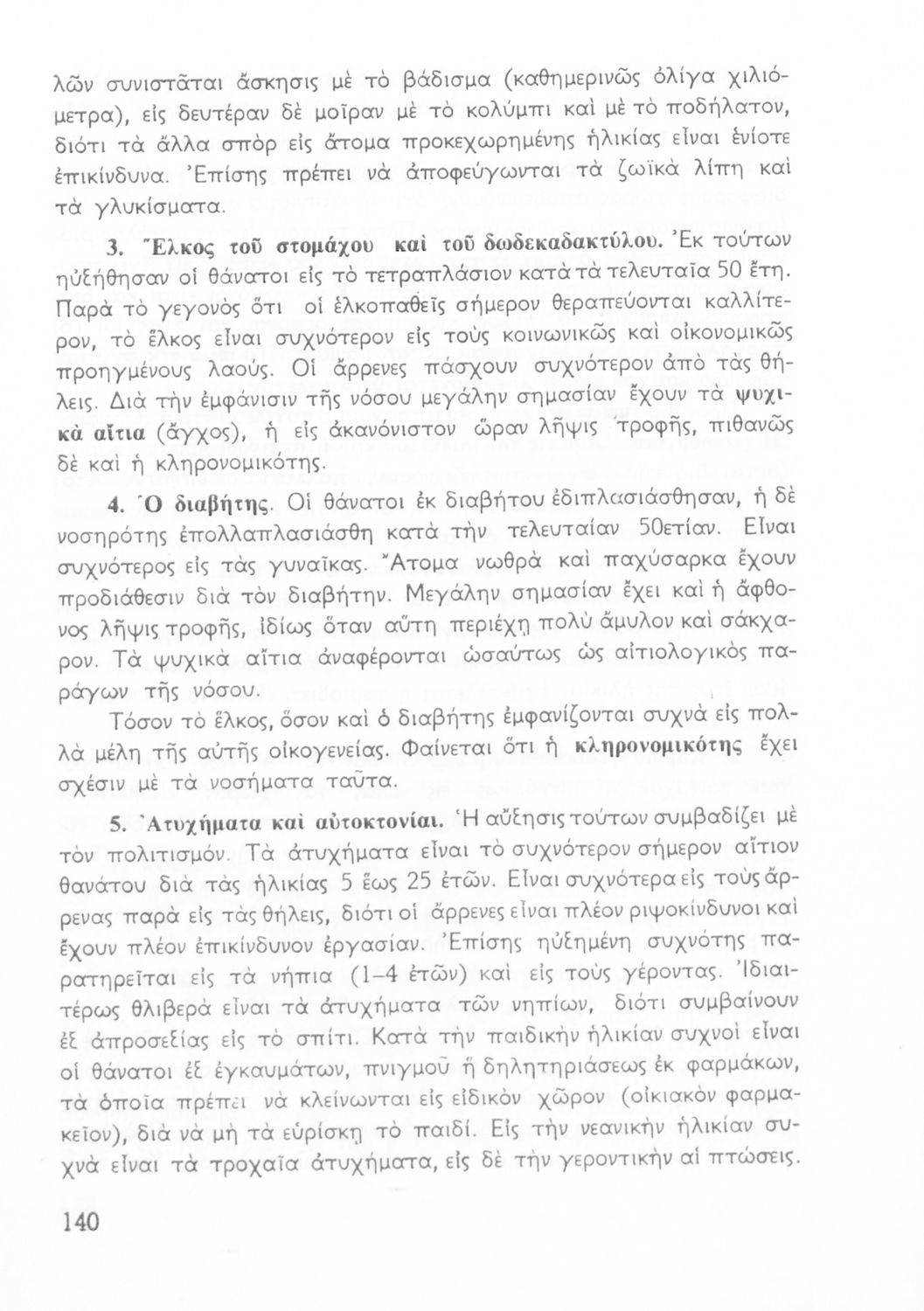 Σχολικό εγχειρίδιο Υγιεινής για τους μαθητές της Ε' τάξης του Γυμνασίου. Το βιβλίο αναφέρεται στις συνθήκες και τις αιτίες που επηρεάζουν την υγεία του ατόμου ή μιας ομάδας ατόμων και παρουσιάζει τα μέτρα που πρέπει να ληφθούν για την ανάκτηση και διατήρηση της υγιεινής των ανθρώπων. Πιο συγκεκριμένα αναφέρεται στην επίδραση της ατμόσφαιρας, του νερού, των λοιμωδών νοσημάτων αλλά και της κληρονομικότητας.