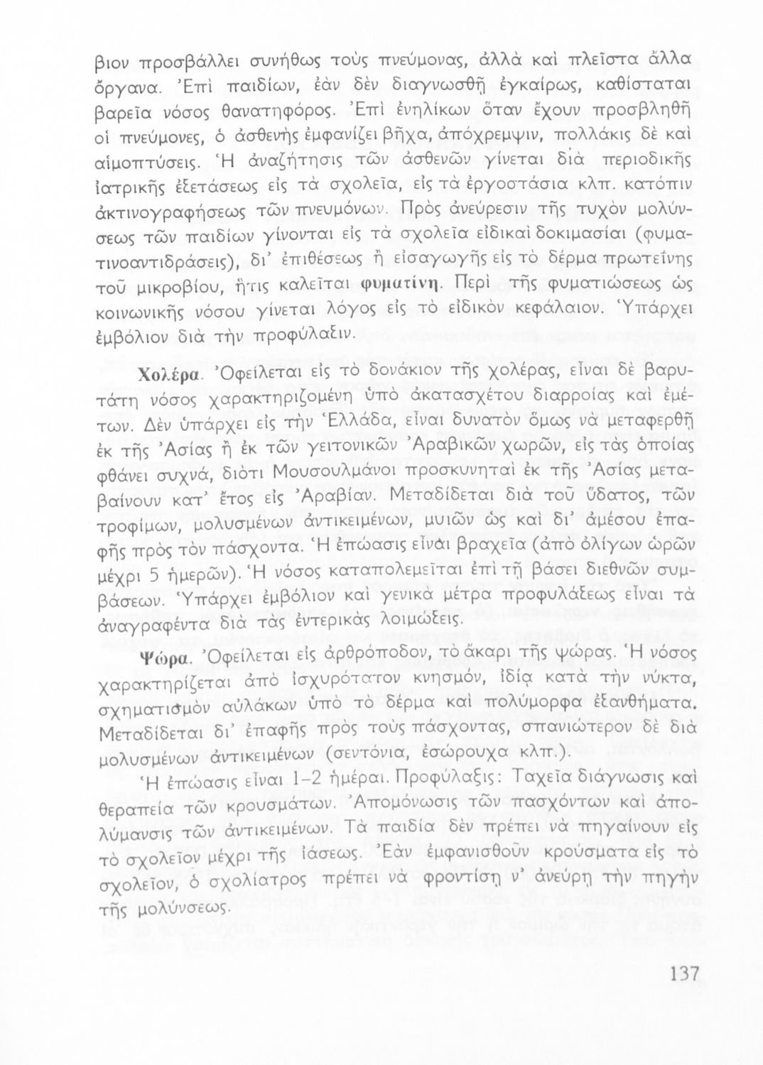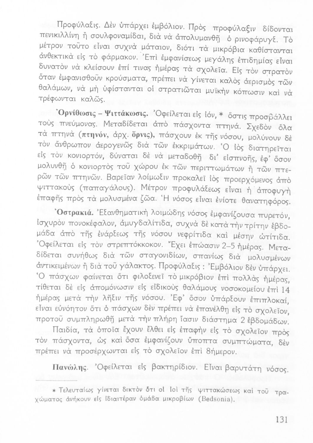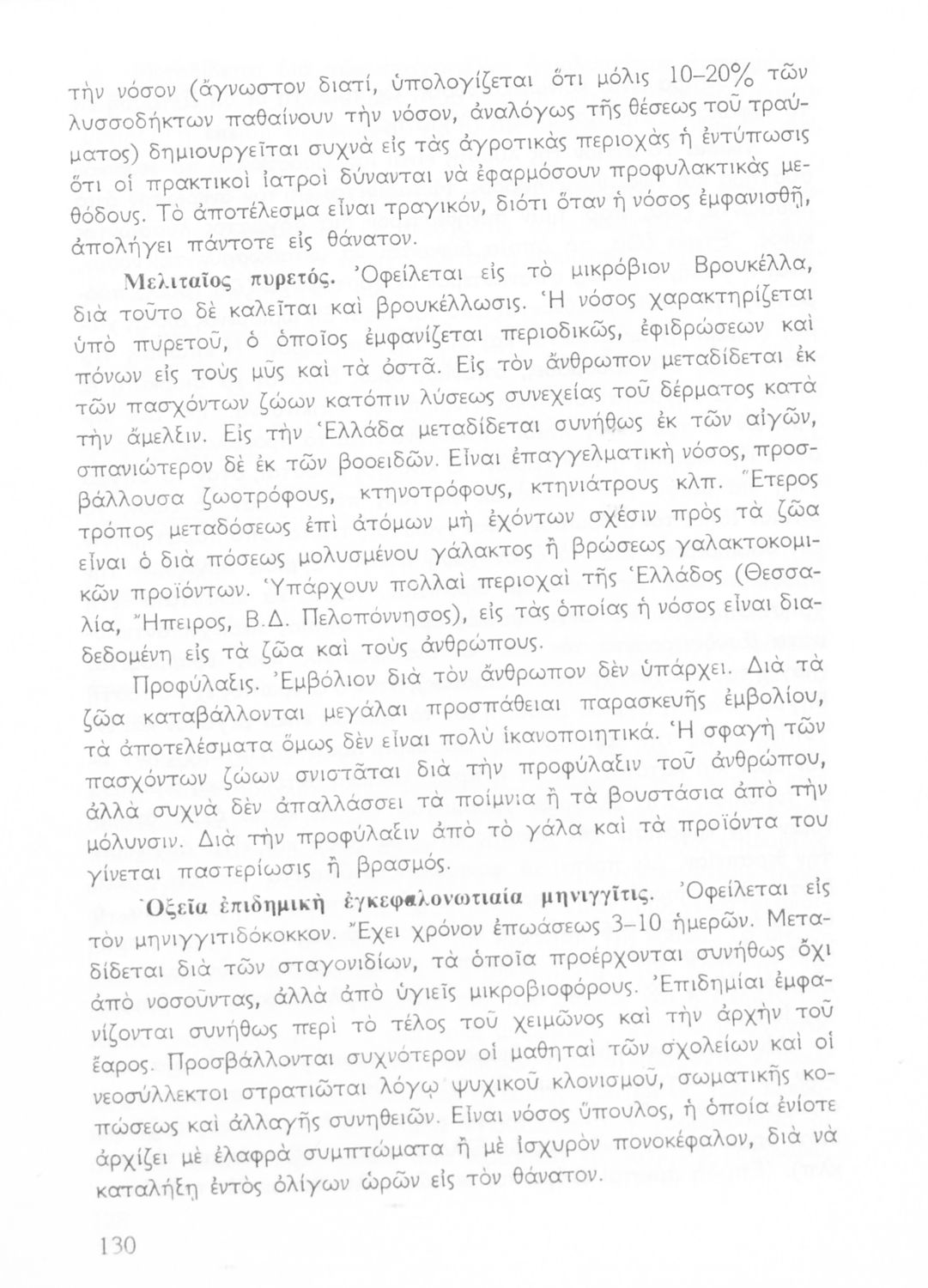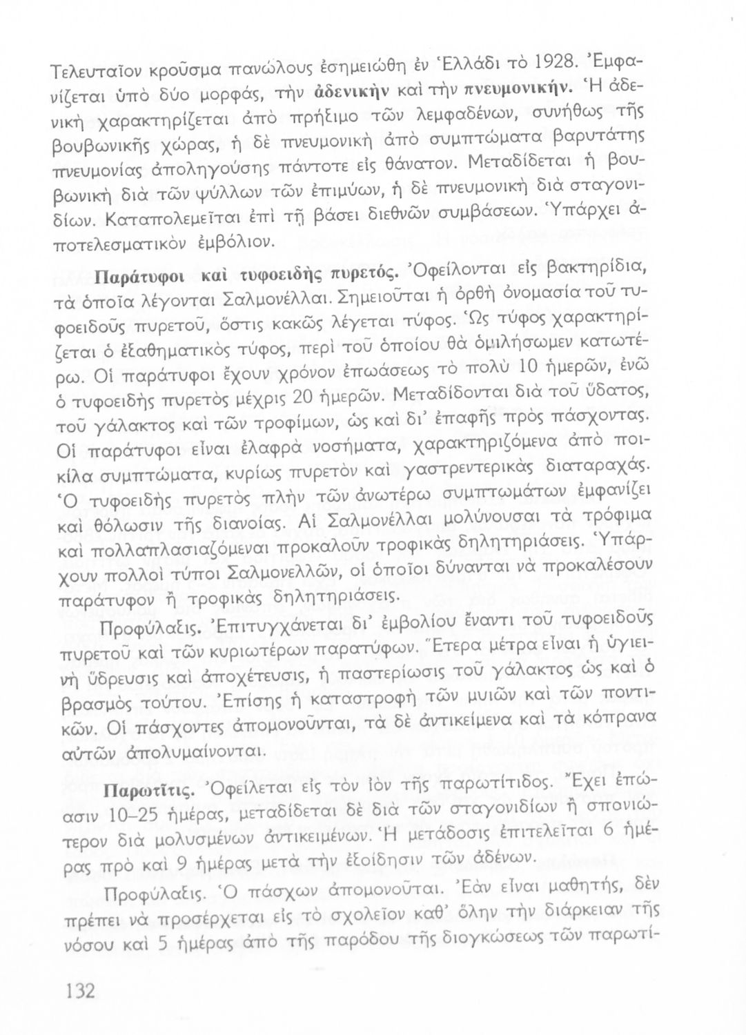 Σχολικό εγχειρίδιο Υγιεινής για τους μαθητές της Ε' τάξης του Γυμνασίου. Το βιβλίο αναφέρεται στις συνθήκες και τις αιτίες που επηρεάζουν την υγεία του ατόμου ή μιας ομάδας ατόμων και παρουσιάζει τα μέτρα που πρέπει να ληφθούν για την ανάκτηση και διατήρηση της υγιεινής των ανθρώπων. Πιο συγκεκριμένα αναφέρεται στην επίδραση της ατμόσφαιρας, του νερού, των λοιμωδών νοσημάτων αλλά και της κληρονομικότητας.
