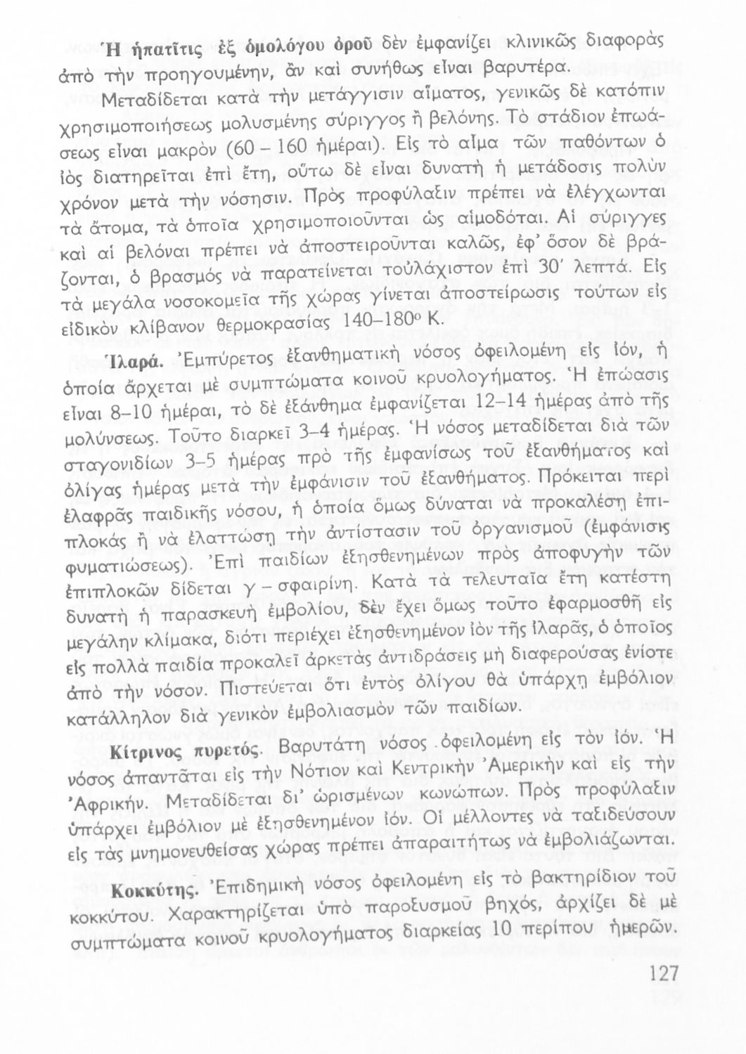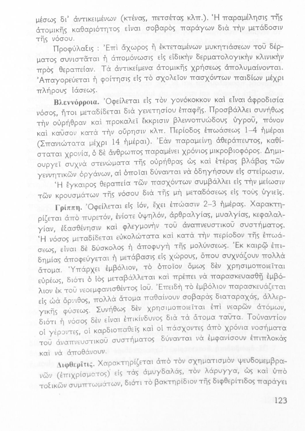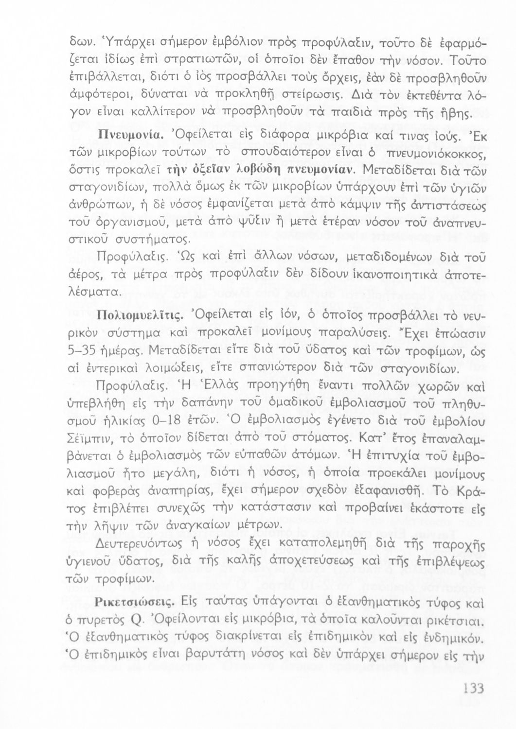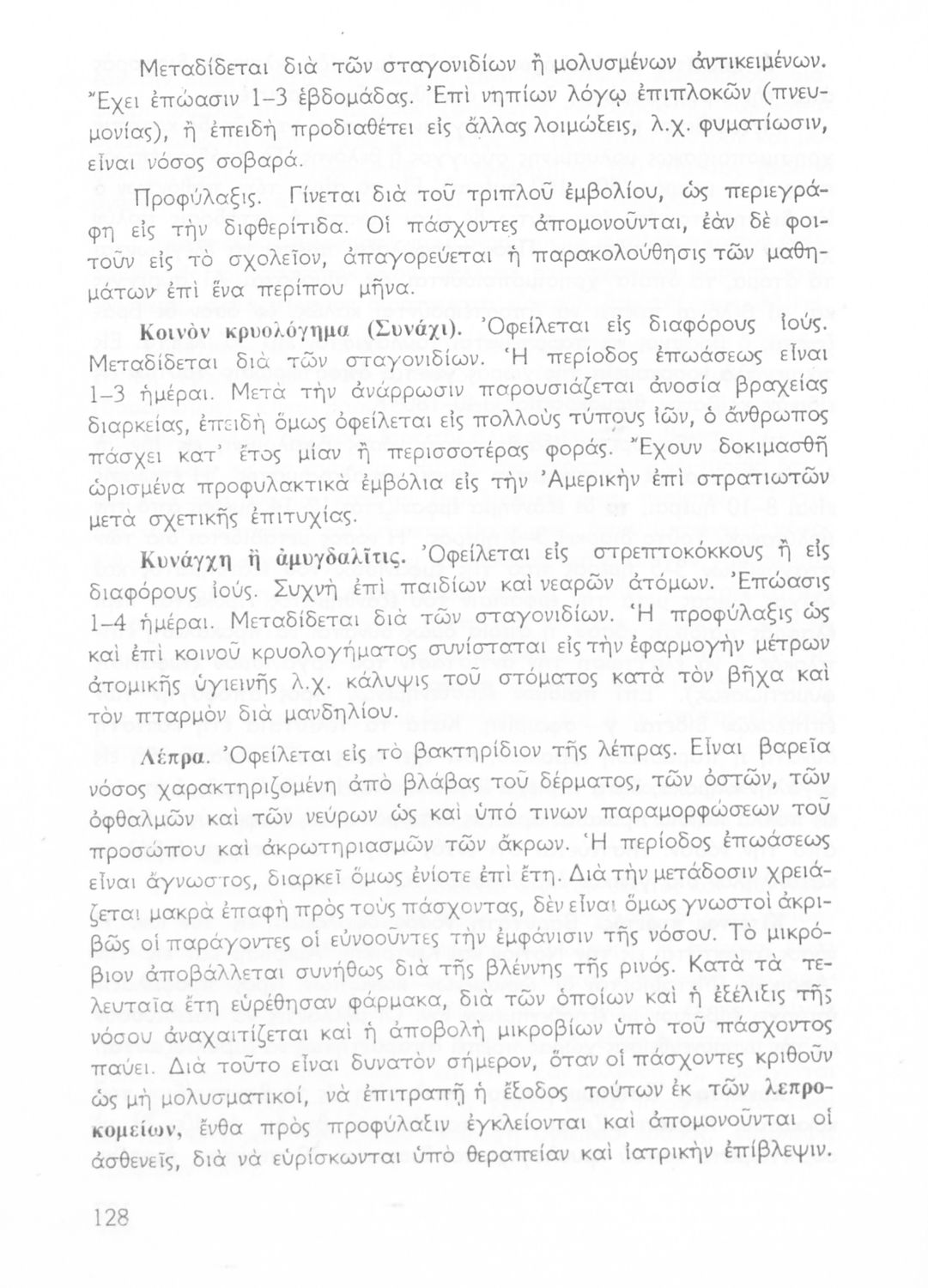 Σχολικό εγχειρίδιο Υγιεινής για τους μαθητές της Ε' τάξης του Γυμνασίου. Το βιβλίο αναφέρεται στις συνθήκες και τις αιτίες που επηρεάζουν την υγεία του ατόμου ή μιας ομάδας ατόμων και παρουσιάζει τα μέτρα που πρέπει να ληφθούν για την ανάκτηση και διατήρηση της υγιεινής των ανθρώπων. Πιο συγκεκριμένα αναφέρεται στην επίδραση της ατμόσφαιρας, του νερού, των λοιμωδών νοσημάτων αλλά και της κληρονομικότητας.