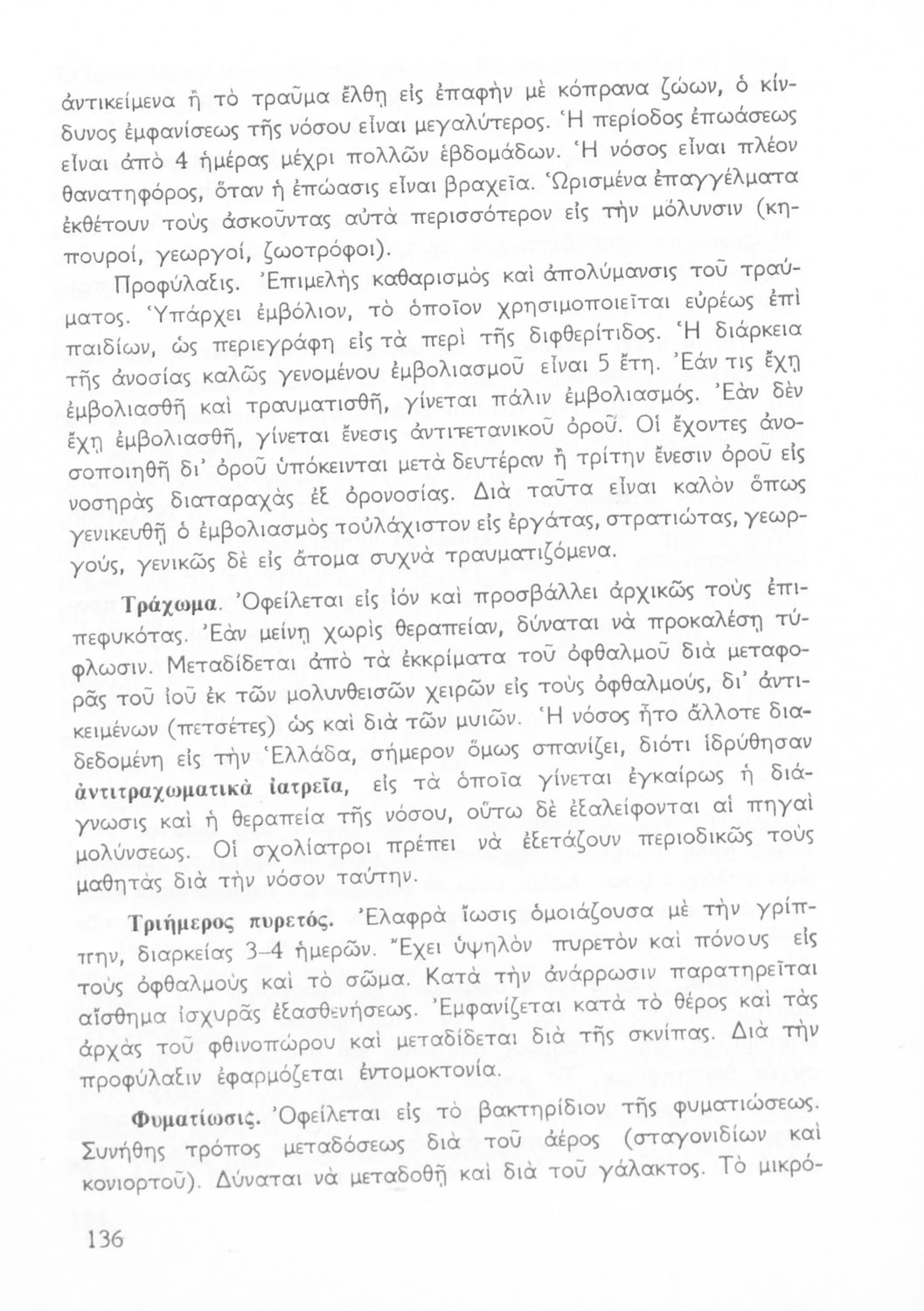 LDR 01758 2200217 4500 035 ## _a03-20558016 040 ## _aΒιβλιοθήκη της Βουλής των Ελλήνων 041 ## _ael 100 ## _aΙωάννης Θ. Παπαβασιλείου 110 ## _a20558016 245 0# _aΥγιεινή Ε' Γυμνασίου 250 ## _a8η Έκδοση 260 ## _aΑθήνα _bΟργανισμός Εκδόσεως Διδακτικών Βιβλίων _c1976 300 ## _a192 520 ## _aΣχολικό εγχειρίδιο Υγιεινής για τους μαθητές της Ε' τάξης του Γυμνασίου. Το βιβλίο αναφέρεται στις συνθήκες και τις αιτίες που επηρεάζουν την υγεία του ατόμου ή μιας ομάδας ατόμων και παρουσιάζει τα μέτρα που πρέπει να ληφθούν για την ανάκτηση και διατήρηση της υγιεινής των ανθρώπων. Πιο συγκεκριμένα αναφέρεται στην επίδραση της ατμόσφαιρας, του νερού, των λοιμωδών νοσημάτων αλλά και της κληρονομικότητας. 521 ## _aΕ' Γυμνασίου 522 ## _aΕλλάδα 546 ## _aΚαθαρεύουσα 563 ## _aΜαλακό Εξώφυλλο 583 ## _a2713/28-4-1976 _c1976 650 #4 _aΑπορρίμματα _aΑτμόσφαιρα _aΔηλητηριάσεις _aΚληρονομικοί νόσοι _aΛοιμώδη νοσήματα _aΛοιμώξεις _aΜικρόβια _aΜόλυνση του νερού _aΝερό _aΝόσος των δυτών _aΡύπανση και μόλυνση του αέρα _aΤρόφιμα