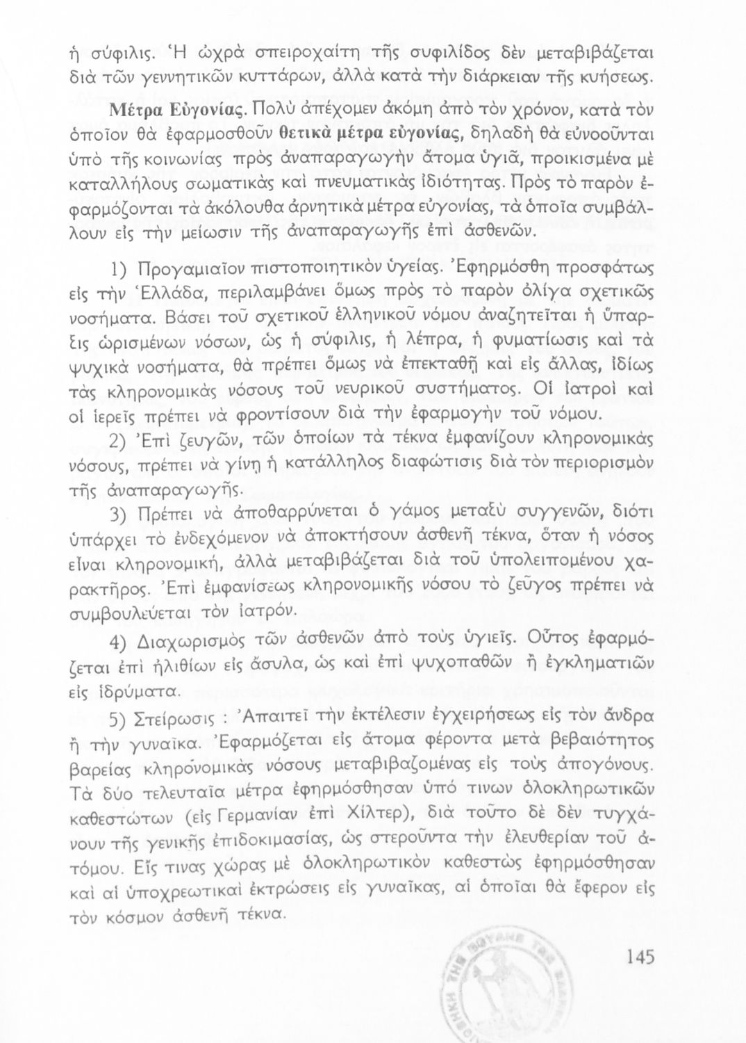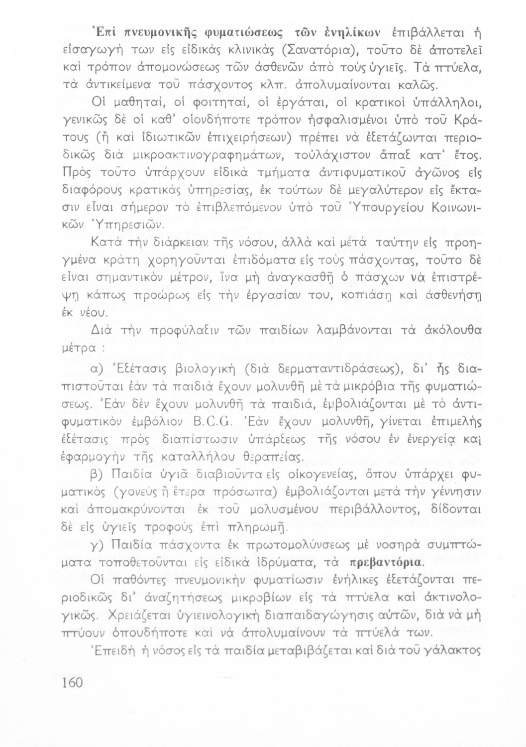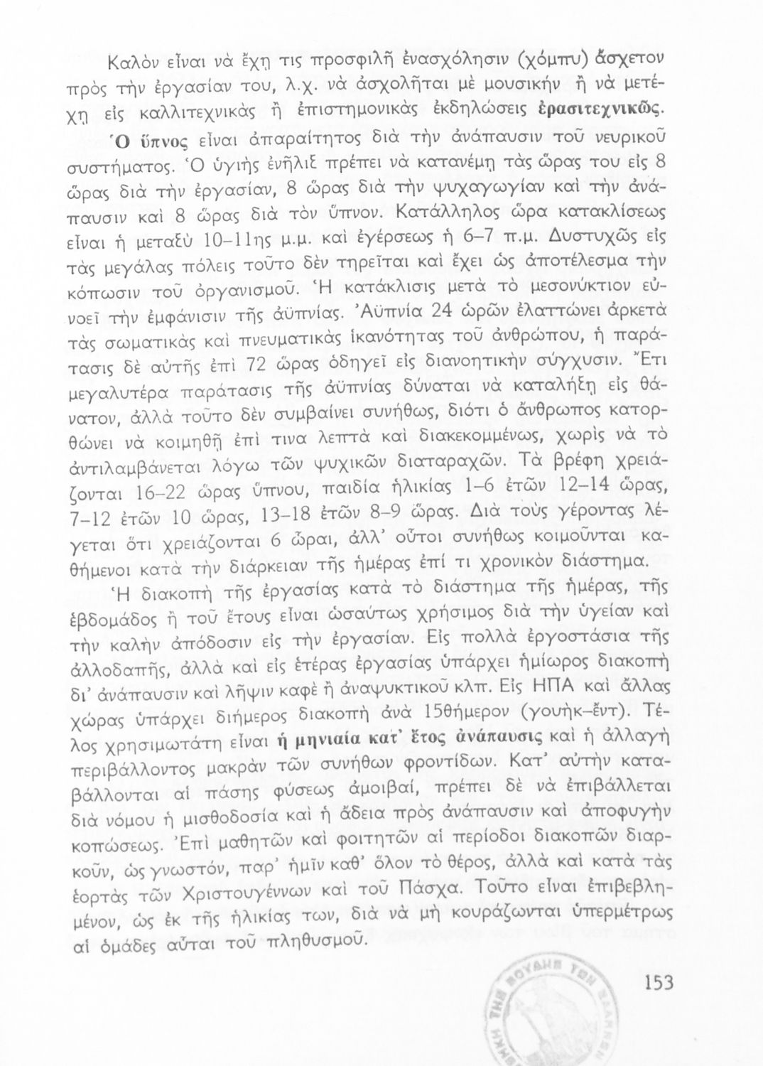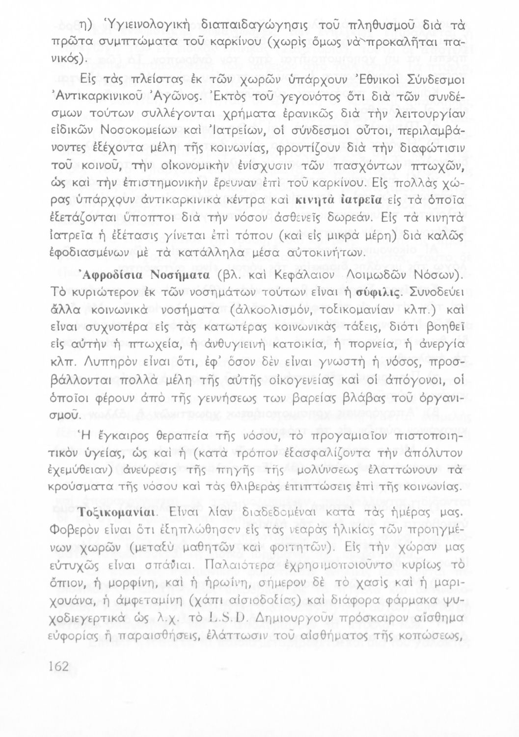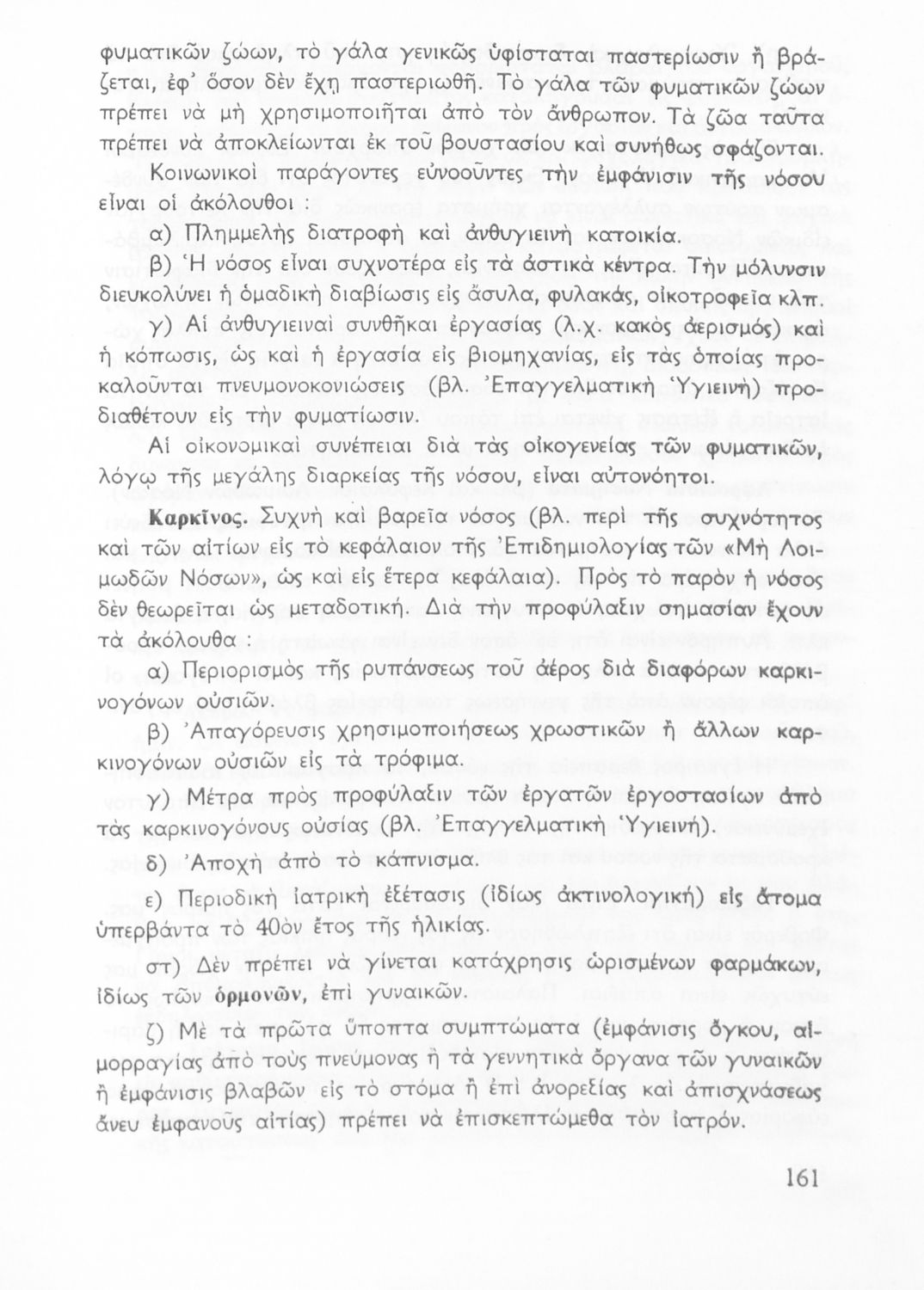 Σχολικό εγχειρίδιο Υγιεινής για τους μαθητές της Ε' τάξης του Γυμνασίου. Το βιβλίο αναφέρεται στις συνθήκες και τις αιτίες που επηρεάζουν την υγεία του ατόμου ή μιας ομάδας ατόμων και παρουσιάζει τα μέτρα που πρέπει να ληφθούν για την ανάκτηση και διατήρηση της υγιεινής των ανθρώπων. Πιο συγκεκριμένα αναφέρεται στην επίδραση της ατμόσφαιρας, του νερού, των λοιμωδών νοσημάτων αλλά και της κληρονομικότητας.