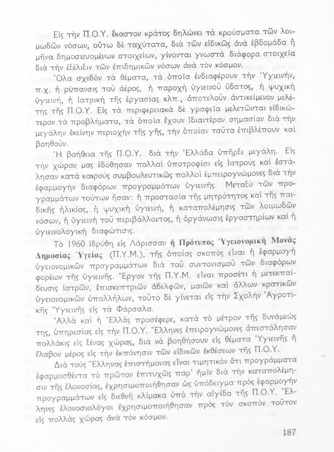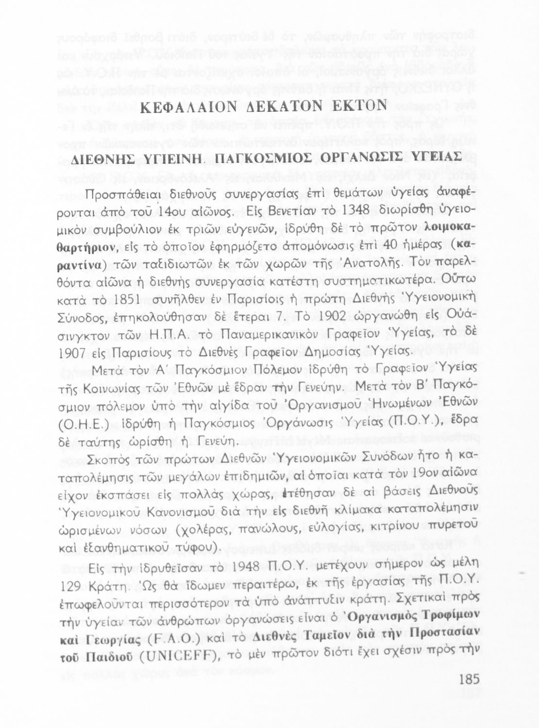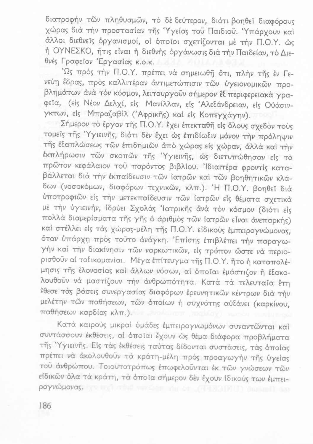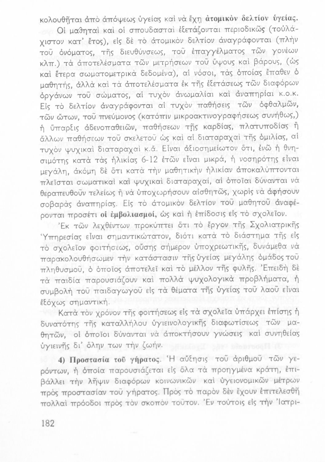 Σχολικό εγχειρίδιο Υγιεινής για τους μαθητές της Ε' τάξης του Γυμνασίου. Το βιβλίο αναφέρεται στις συνθήκες και τις αιτίες που επηρεάζουν την υγεία του ατόμου ή μιας ομάδας ατόμων και παρουσιάζει τα μέτρα που πρέπει να ληφθούν για την ανάκτηση και διατήρηση της υγιεινής των ανθρώπων. Πιο συγκεκριμένα αναφέρεται στην επίδραση της ατμόσφαιρας, του νερού, των λοιμωδών νοσημάτων αλλά και της κληρονομικότητας.