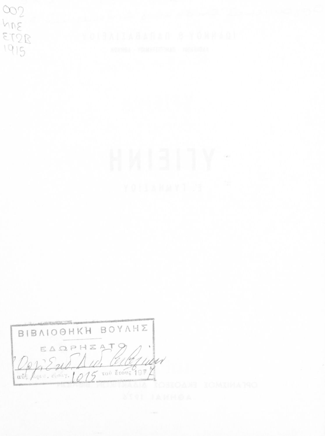 Εντοπισμός πρωτοτύπου: Βιβλιοθήκη της Βουλής των Ελλήνων