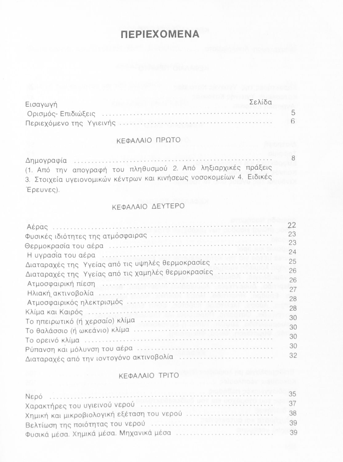 Σχολικό εγχειρίδιο Υγιεινής για τους μαθητές της Β' τάξης του Λυκείου. Το βιβλίο αναφέρεται στις συνθήκες και τις αιτίες που επηρεάζουν την υγεία του ατόμου ή μιας ομάδας ατόμων και παρουσιάζει τα μέτρα που πρέπει να ληφθούν για την ανάκτηση και διατήρηση της υγιεινής των ανθρώπων. Πιο συγκεκριμένα αναφέρεται στην επίδραση της ατμόσφαιρας, του νερού, των λοιμωδών νοσημάτων αλλά και της κληρονομικότητας.