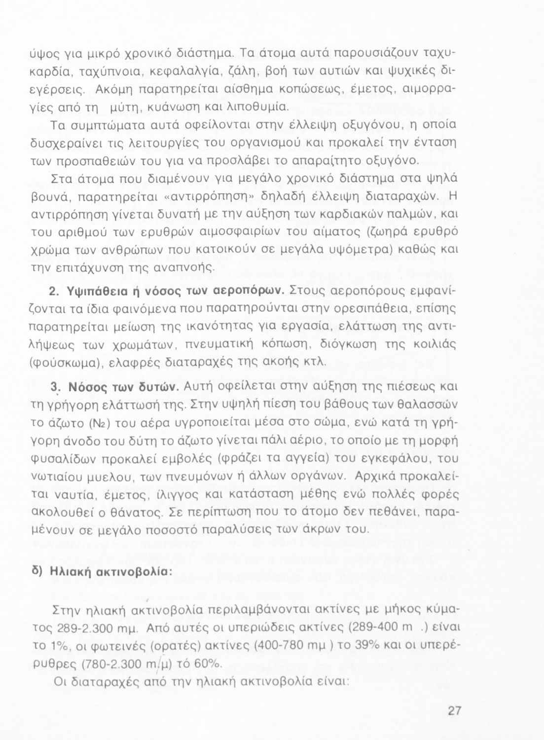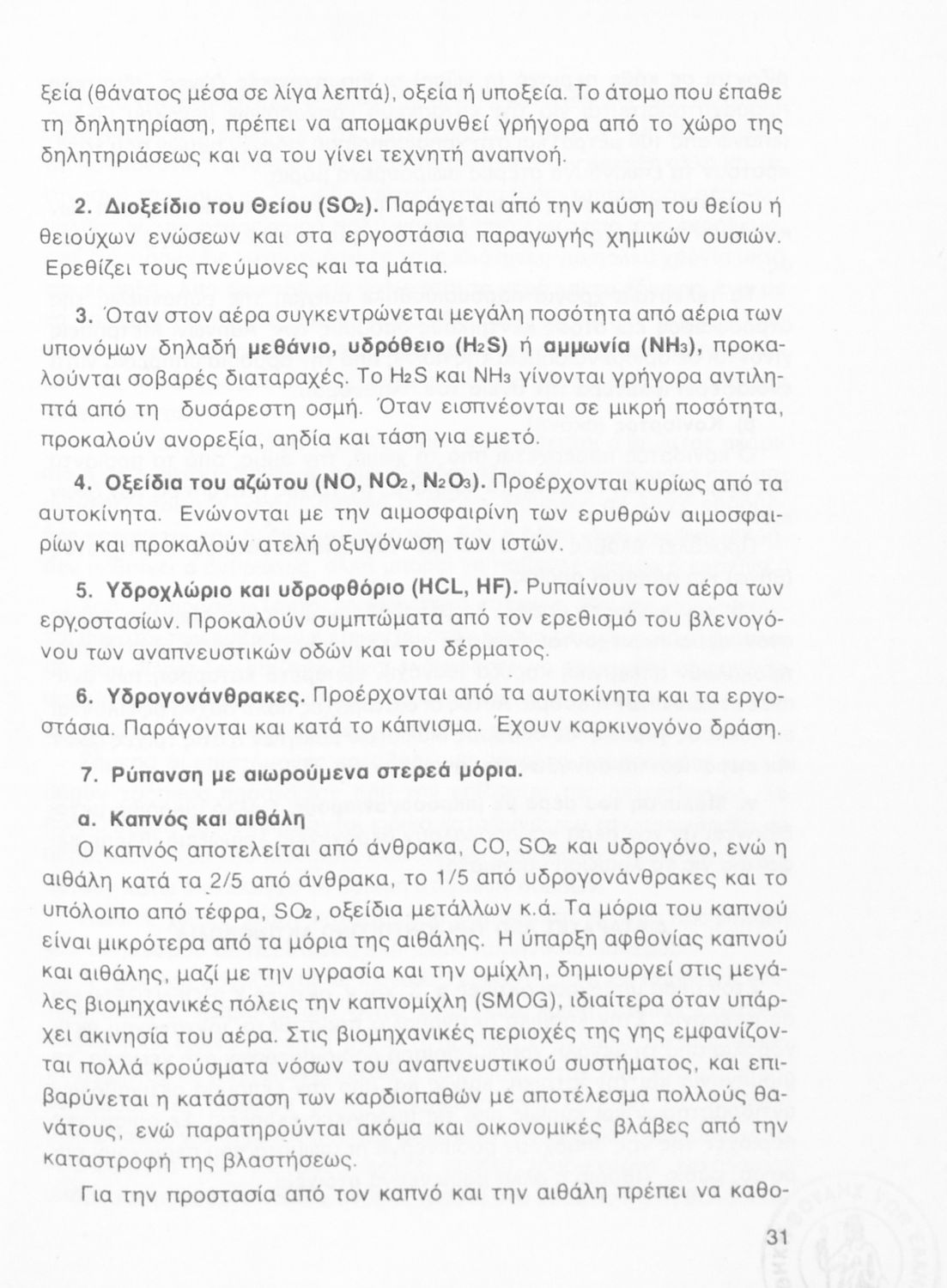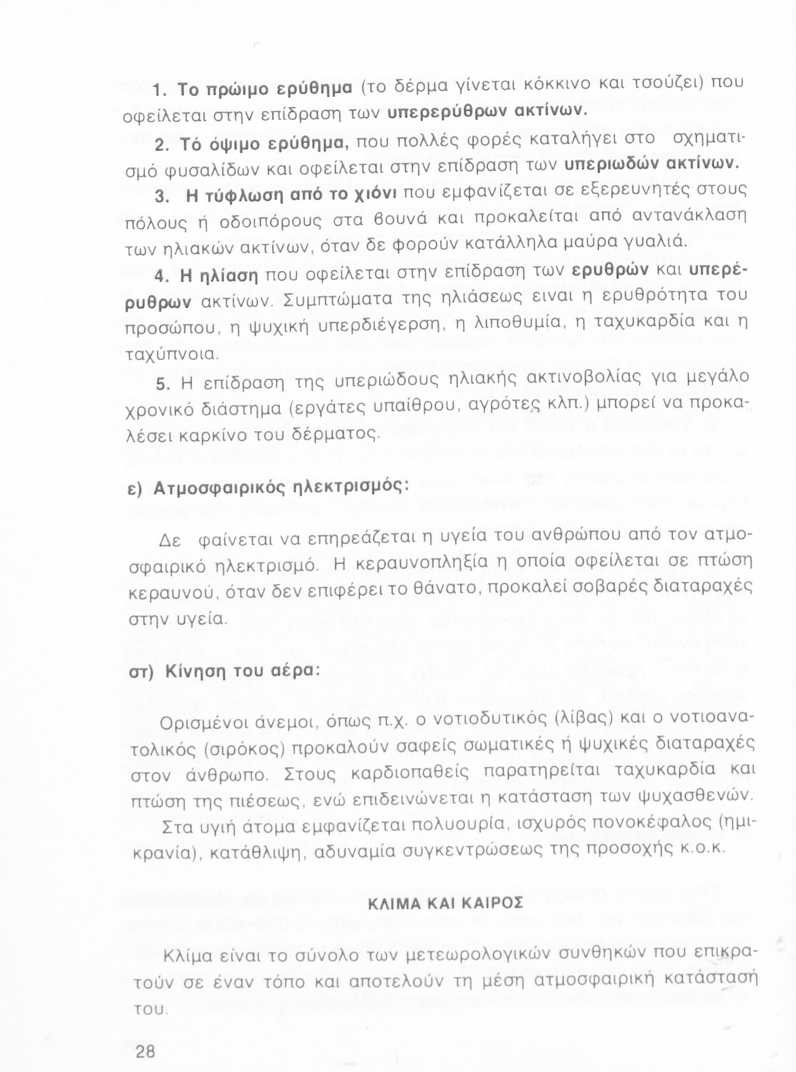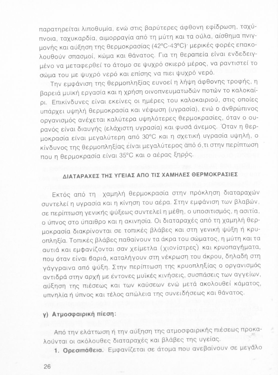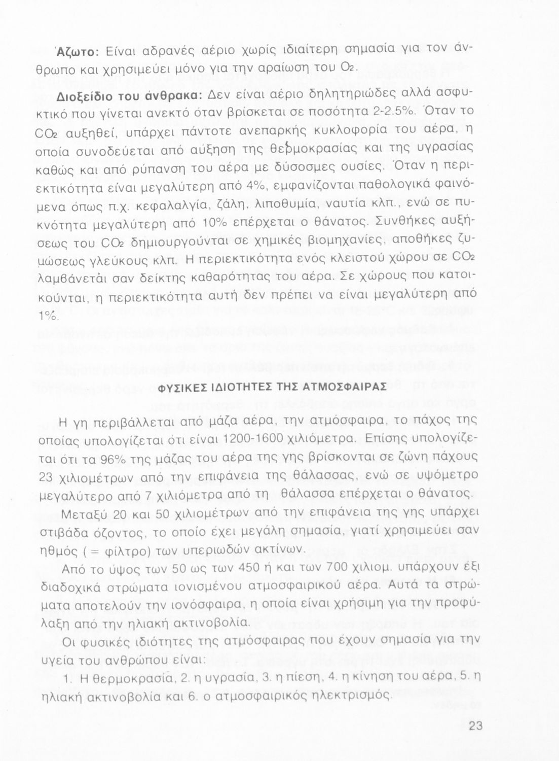 Σχολικό εγχειρίδιο Υγιεινής για τους μαθητές της Β' τάξης του Λυκείου. Το βιβλίο αναφέρεται στις συνθήκες και τις αιτίες που επηρεάζουν την υγεία του ατόμου ή μιας ομάδας ατόμων και παρουσιάζει τα μέτρα που πρέπει να ληφθούν για την ανάκτηση και διατήρηση της υγιεινής των ανθρώπων. Πιο συγκεκριμένα αναφέρεται στην επίδραση της ατμόσφαιρας, του νερού, των λοιμωδών νοσημάτων αλλά και της κληρονομικότητας.