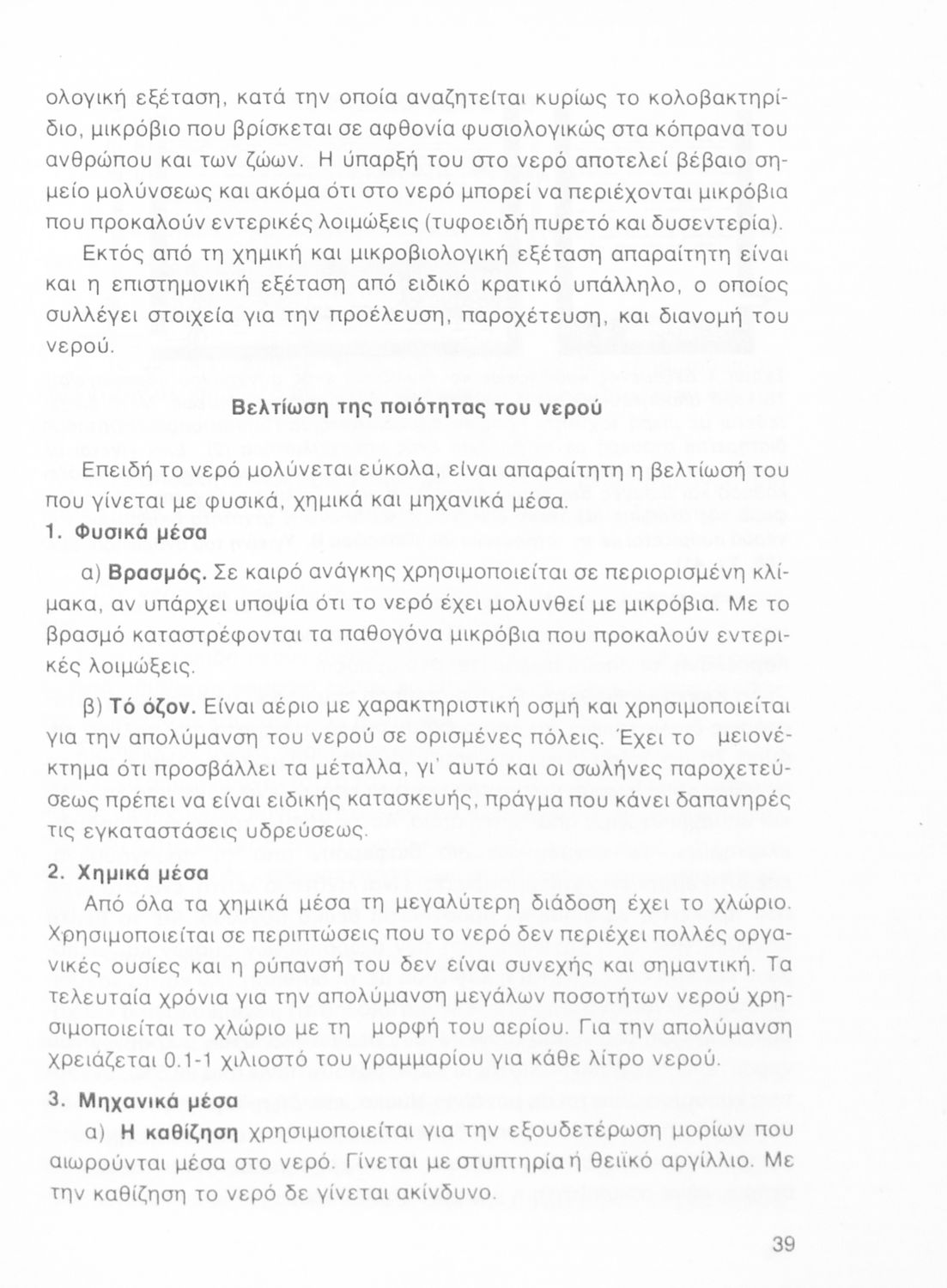 Σχολικό εγχειρίδιο Υγιεινής για τους μαθητές της Β' τάξης του Λυκείου. Το βιβλίο αναφέρεται στις συνθήκες και τις αιτίες που επηρεάζουν την υγεία του ατόμου ή μιας ομάδας ατόμων και παρουσιάζει τα μέτρα που πρέπει να ληφθούν για την ανάκτηση και διατήρηση της υγιεινής των ανθρώπων. Πιο συγκεκριμένα αναφέρεται στην επίδραση της ατμόσφαιρας, του νερού, των λοιμωδών νοσημάτων αλλά και της κληρονομικότητας.