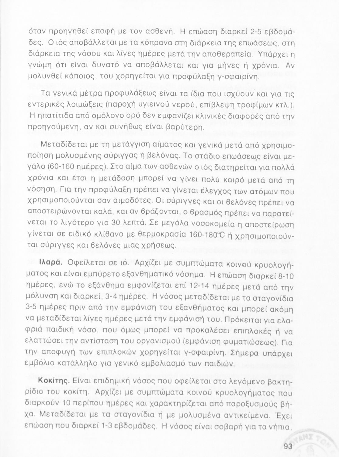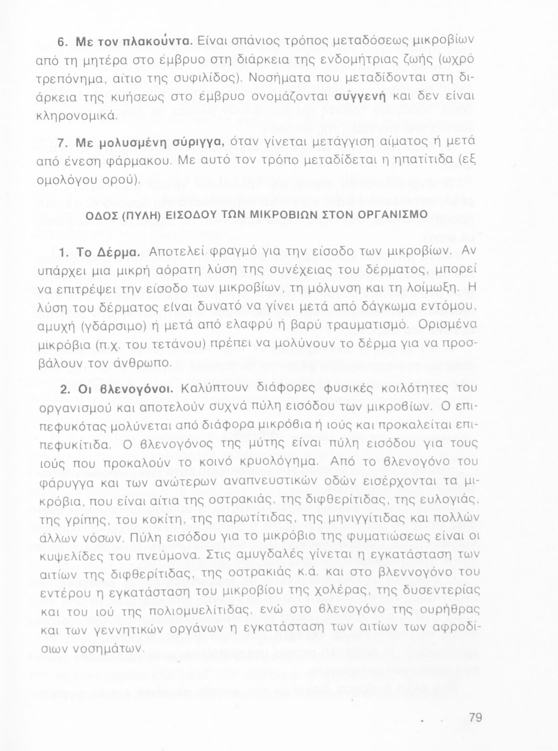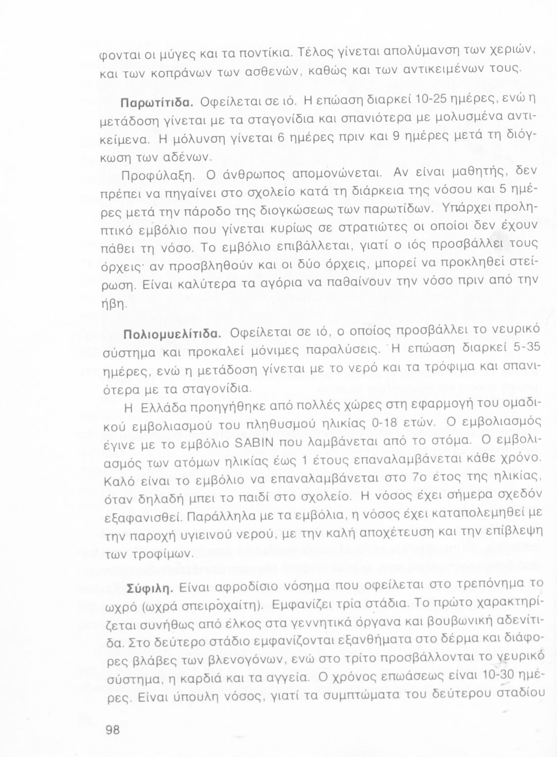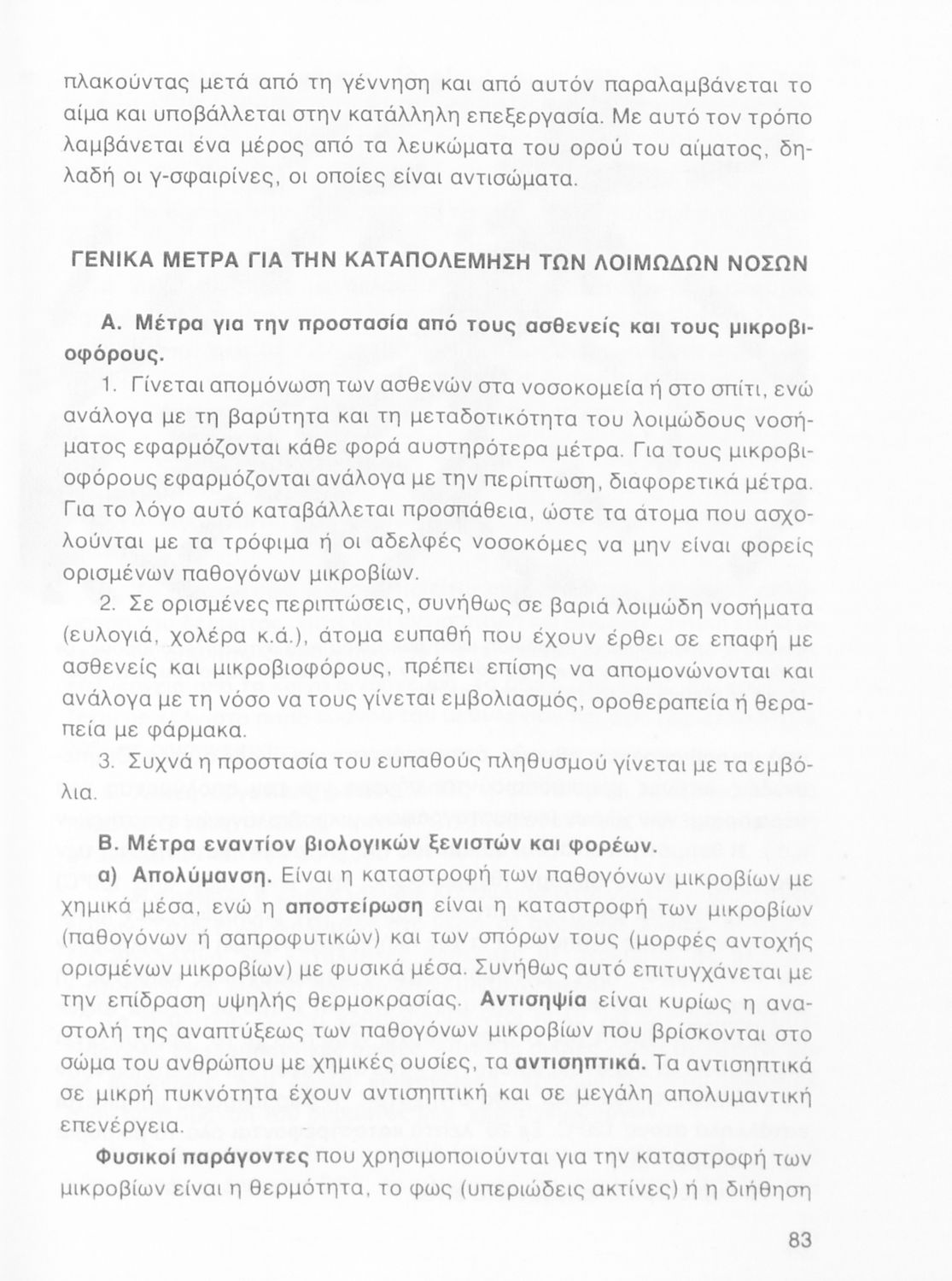 Σχολικό εγχειρίδιο Υγιεινής για τους μαθητές της Β' τάξης του Λυκείου. Το βιβλίο αναφέρεται στις συνθήκες και τις αιτίες που επηρεάζουν την υγεία του ατόμου ή μιας ομάδας ατόμων και παρουσιάζει τα μέτρα που πρέπει να ληφθούν για την ανάκτηση και διατήρηση της υγιεινής των ανθρώπων. Πιο συγκεκριμένα αναφέρεται στην επίδραση της ατμόσφαιρας, του νερού, των λοιμωδών νοσημάτων αλλά και της κληρονομικότητας.