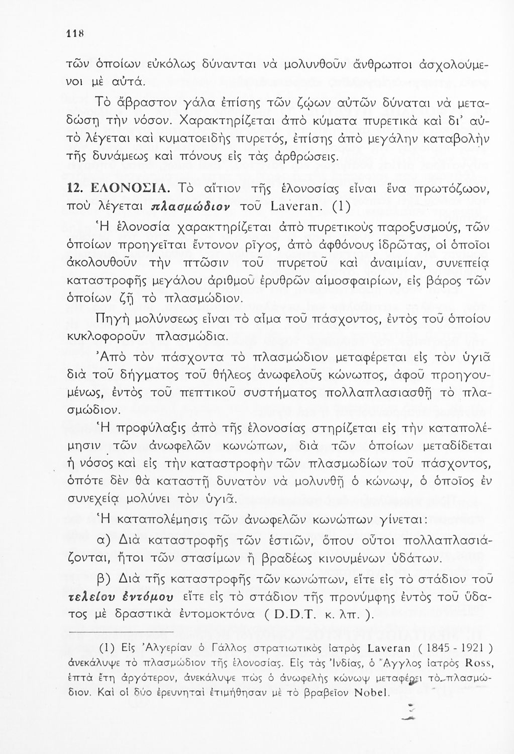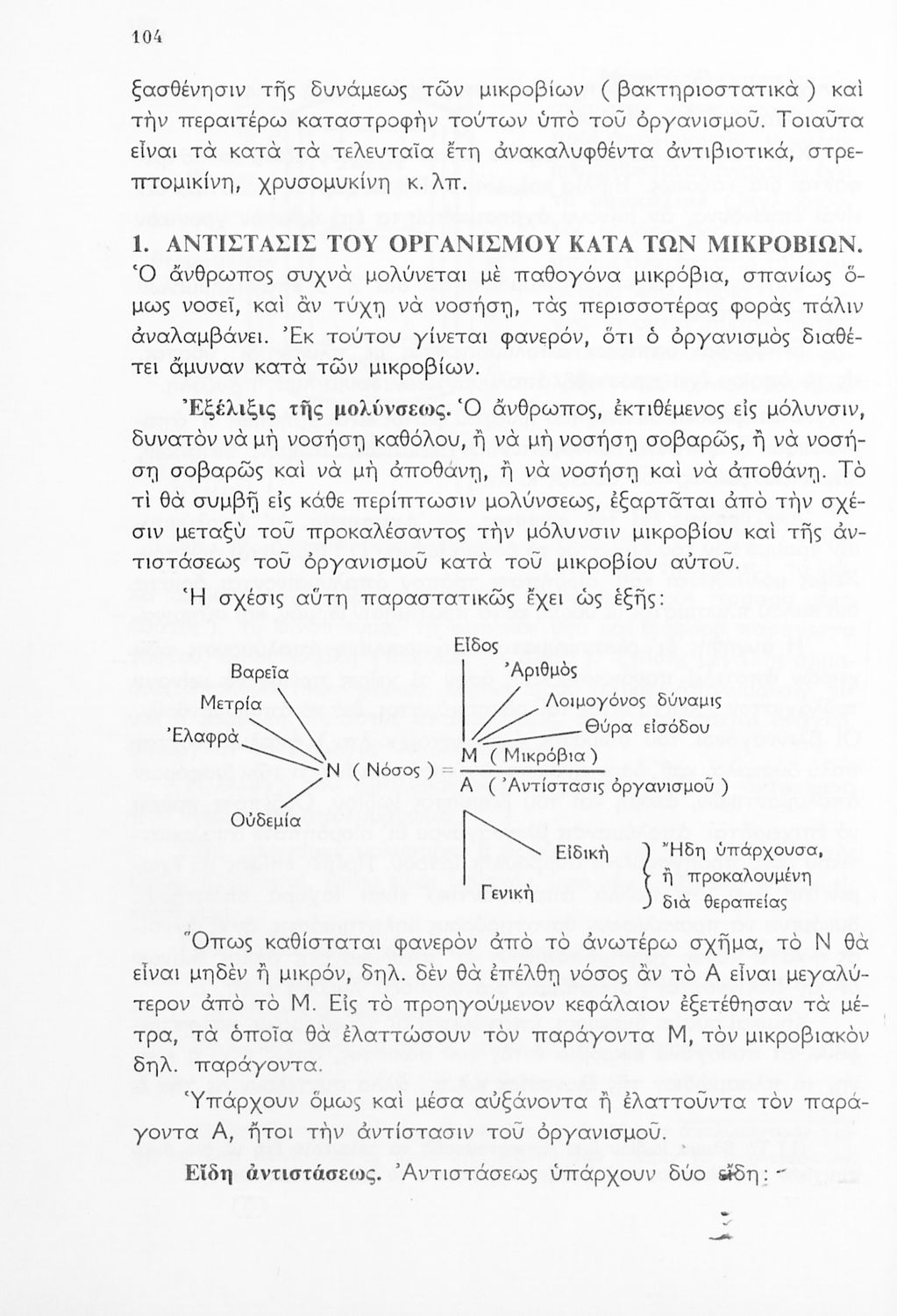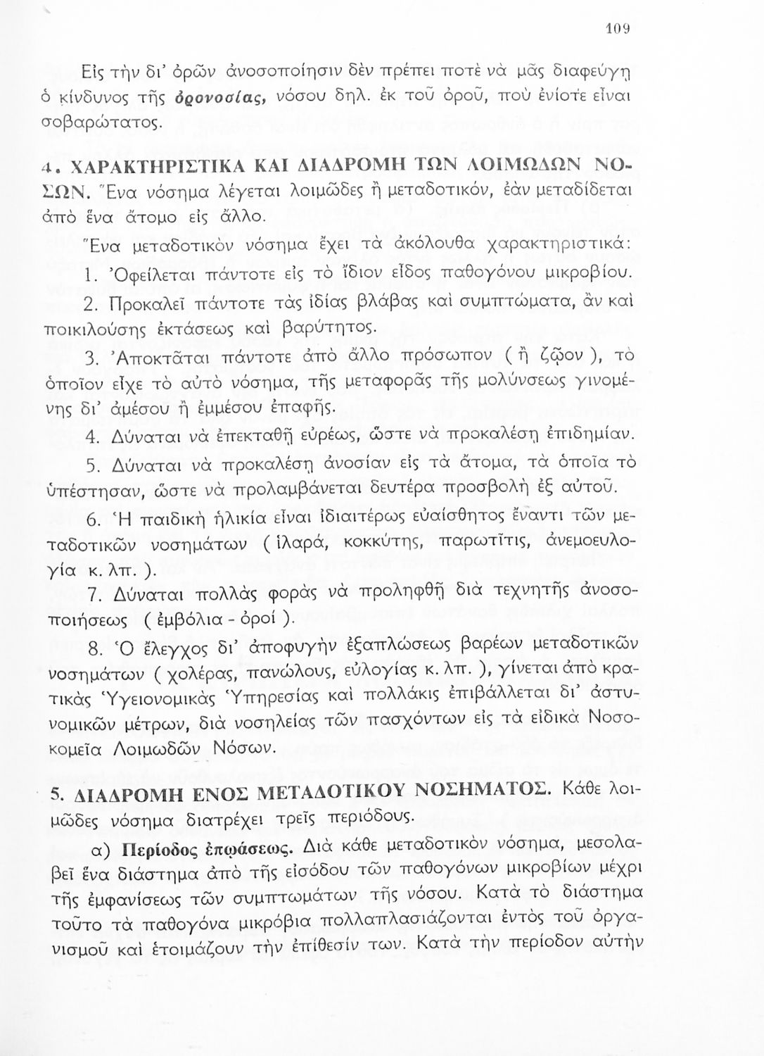 Σχολικό εγχειρίδιο Υγιεινής για τις τάξεις του Γυμνασίου. Αναφέρεται στο ζήτημα της υγιεινής και εξετάζει τις συνθήκες και τις αιτίες που επηρεάζουν την υγεία του ατόμου ή μιας ομάδας ατόμων και παρουσιάζει τα μέτρα που πρέπει να ληφθούν για την ανάκτηση και διατήρηση της υγείας. Πιο συγκεκριμένα το βιβλίο αναφέρεται στις επιδράσεις του αέρα, της ενδυμασίας και του νερού, των λοιμώδη νοσημάτων και το ρόλο της κληρονομικότητας.