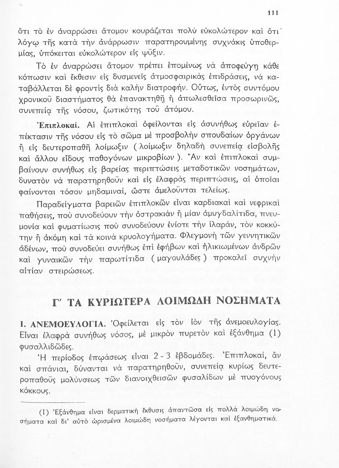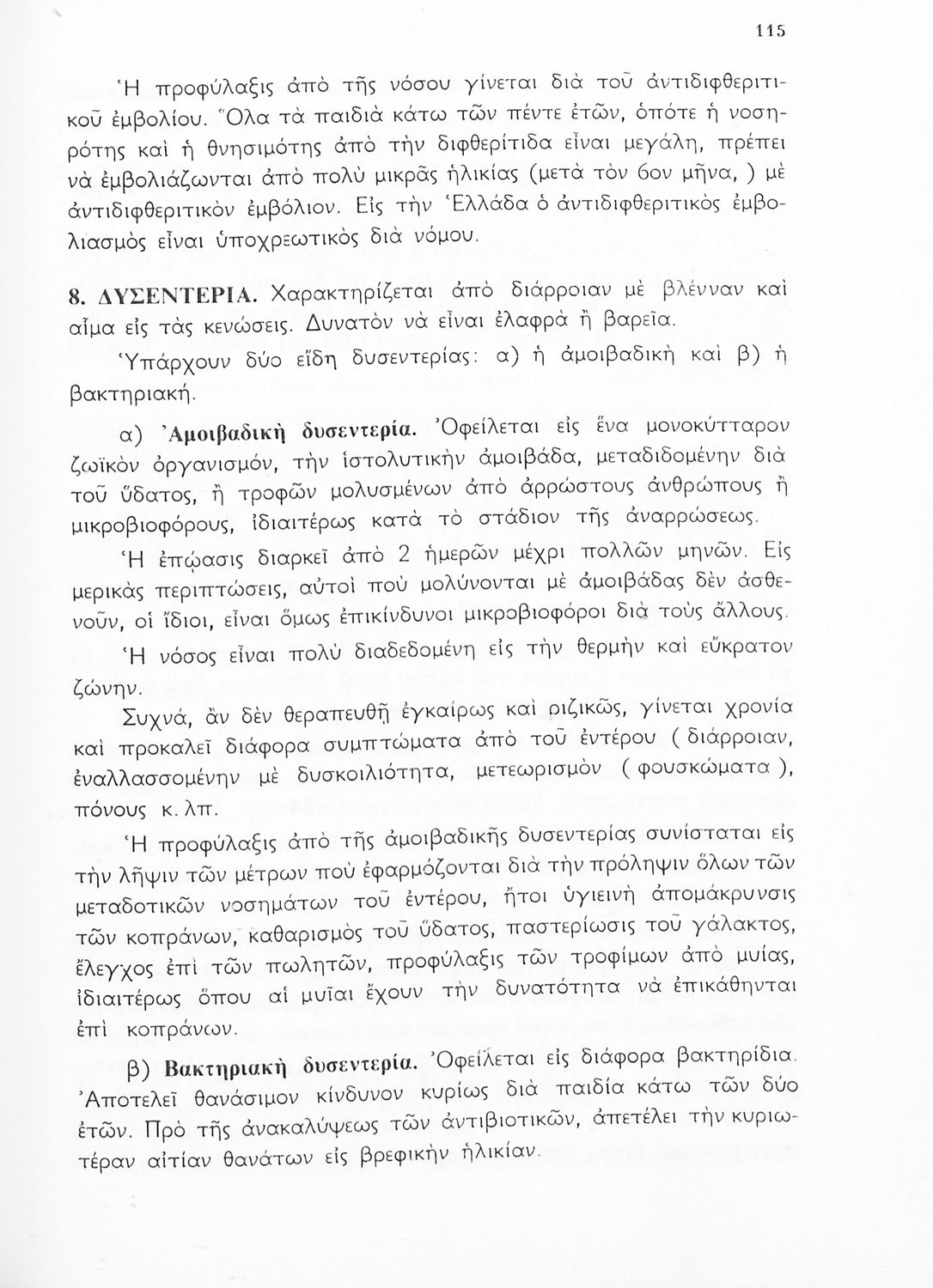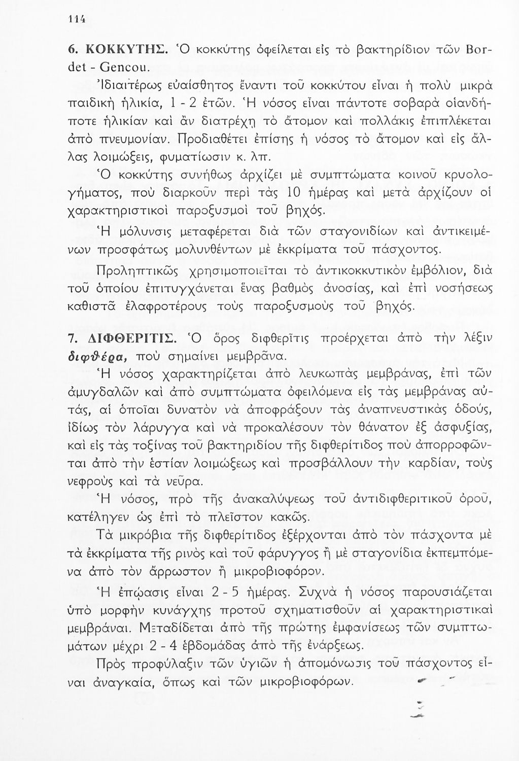 Σχολικό εγχειρίδιο Υγιεινής για τις τάξεις του Γυμνασίου. Αναφέρεται στο ζήτημα της υγιεινής και εξετάζει τις συνθήκες και τις αιτίες που επηρεάζουν την υγεία του ατόμου ή μιας ομάδας ατόμων και παρουσιάζει τα μέτρα που πρέπει να ληφθούν για την ανάκτηση και διατήρηση της υγείας. Πιο συγκεκριμένα το βιβλίο αναφέρεται στις επιδράσεις του αέρα, της ενδυμασίας και του νερού, των λοιμώδη νοσημάτων και το ρόλο της κληρονομικότητας.