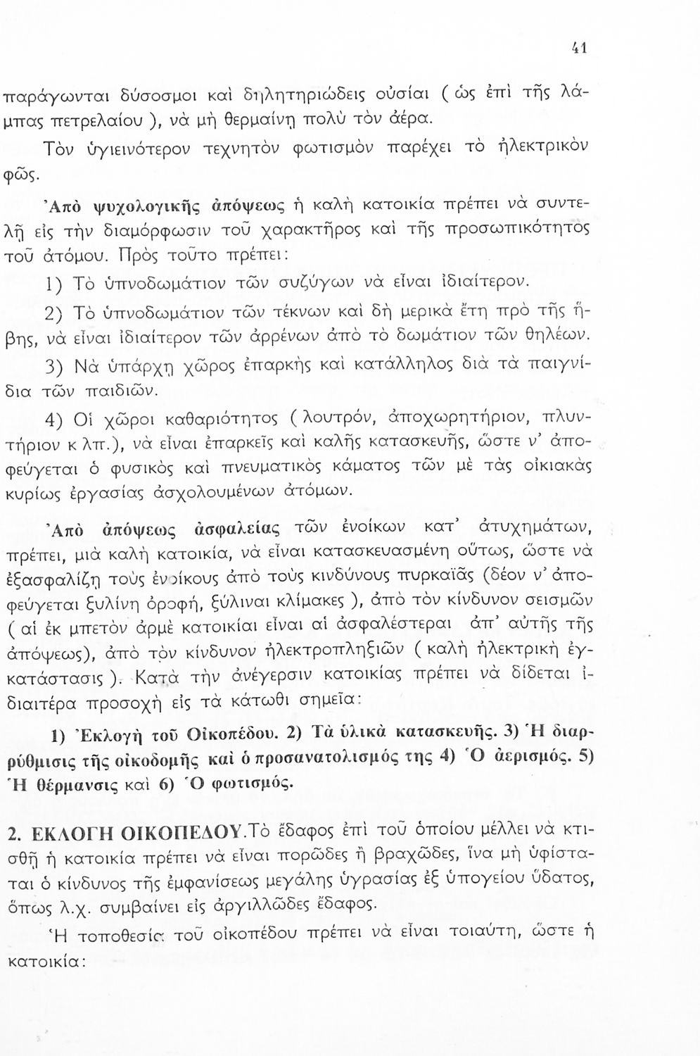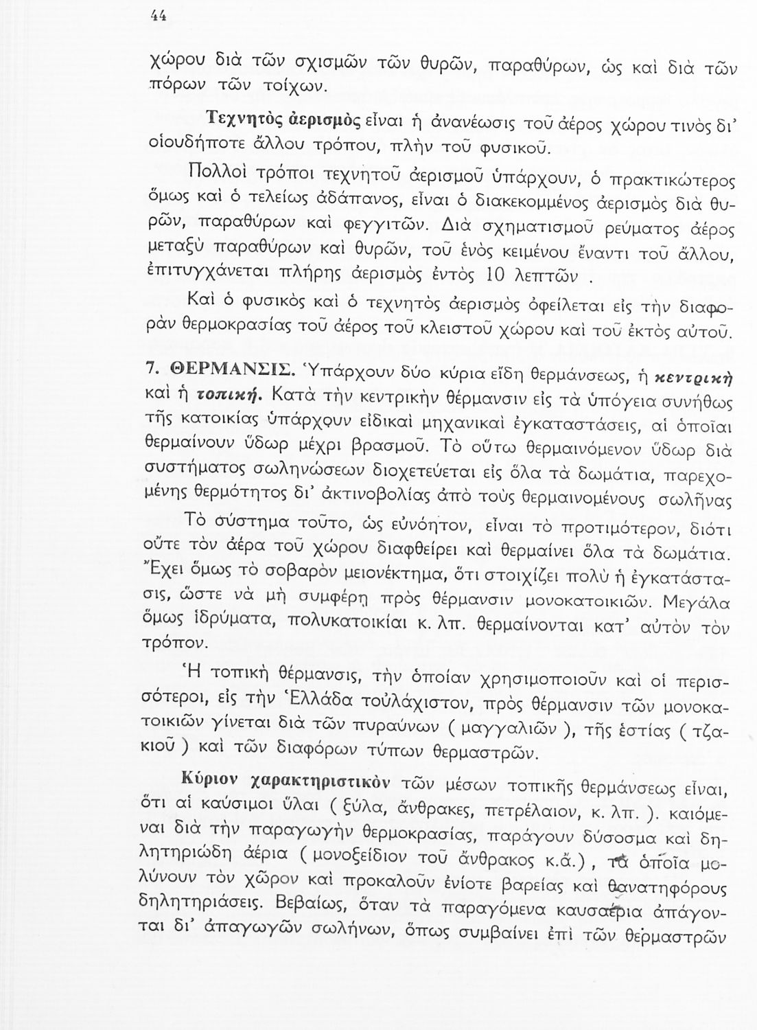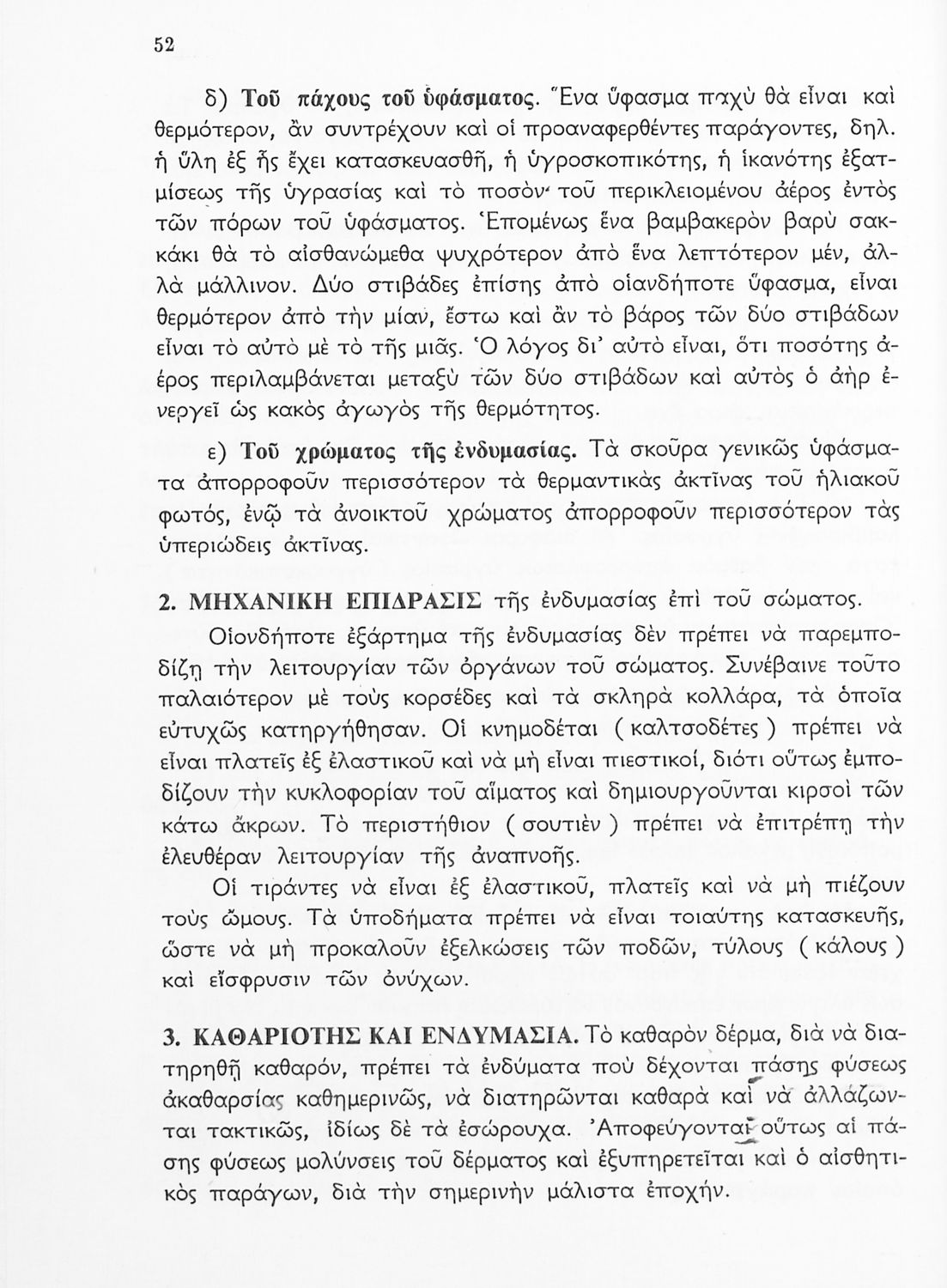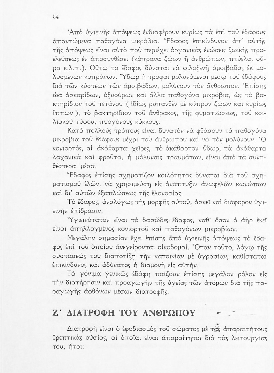 Σχολικό εγχειρίδιο Υγιεινής για τις τάξεις του Γυμνασίου. Αναφέρεται στο ζήτημα της υγιεινής και εξετάζει τις συνθήκες και τις αιτίες που επηρεάζουν την υγεία του ατόμου ή μιας ομάδας ατόμων και παρουσιάζει τα μέτρα που πρέπει να ληφθούν για την ανάκτηση και διατήρηση της υγείας. Πιο συγκεκριμένα το βιβλίο αναφέρεται στις επιδράσεις του αέρα, της ενδυμασίας και του νερού, των λοιμώδη νοσημάτων και το ρόλο της κληρονομικότητας.