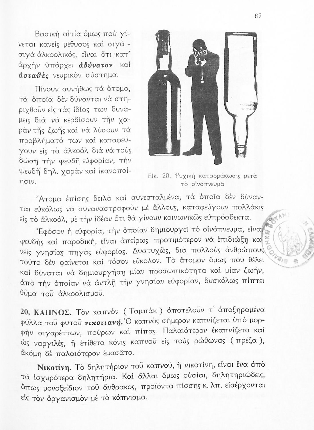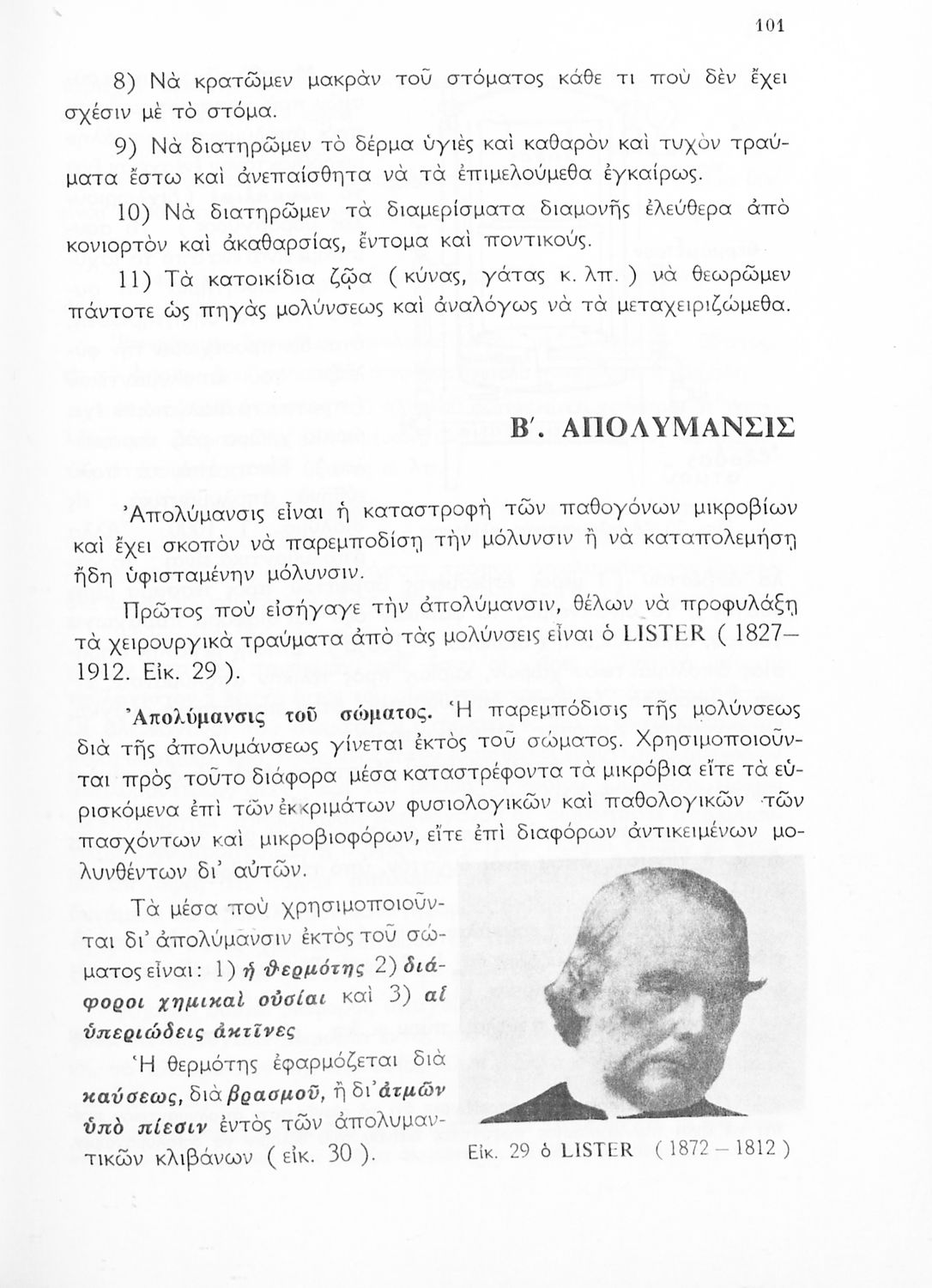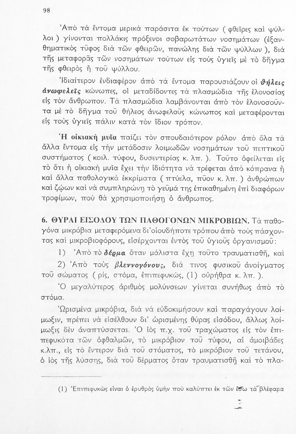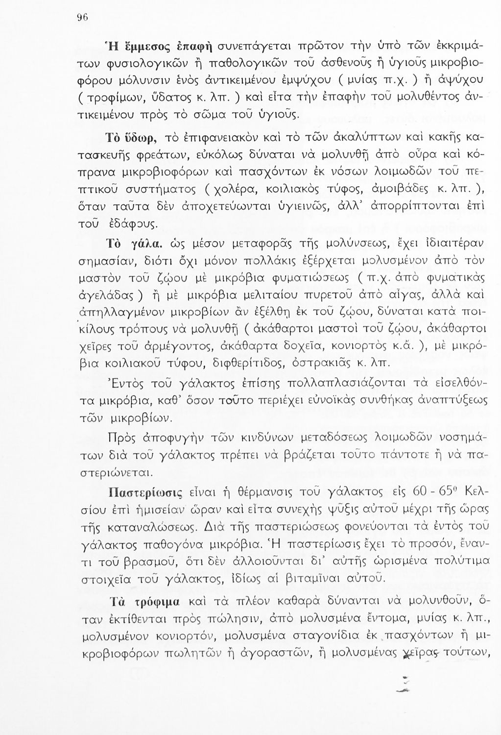 Σχολικό εγχειρίδιο Υγιεινής για τις τάξεις του Γυμνασίου. Αναφέρεται στο ζήτημα της υγιεινής και εξετάζει τις συνθήκες και τις αιτίες που επηρεάζουν την υγεία του ατόμου ή μιας ομάδας ατόμων και παρουσιάζει τα μέτρα που πρέπει να ληφθούν για την ανάκτηση και διατήρηση της υγείας. Πιο συγκεκριμένα το βιβλίο αναφέρεται στις επιδράσεις του αέρα, της ενδυμασίας και του νερού, των λοιμώδη νοσημάτων και το ρόλο της κληρονομικότητας.