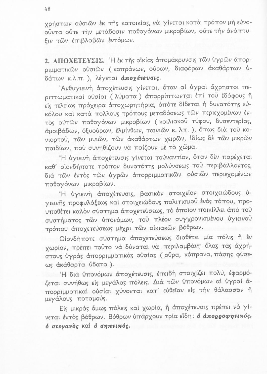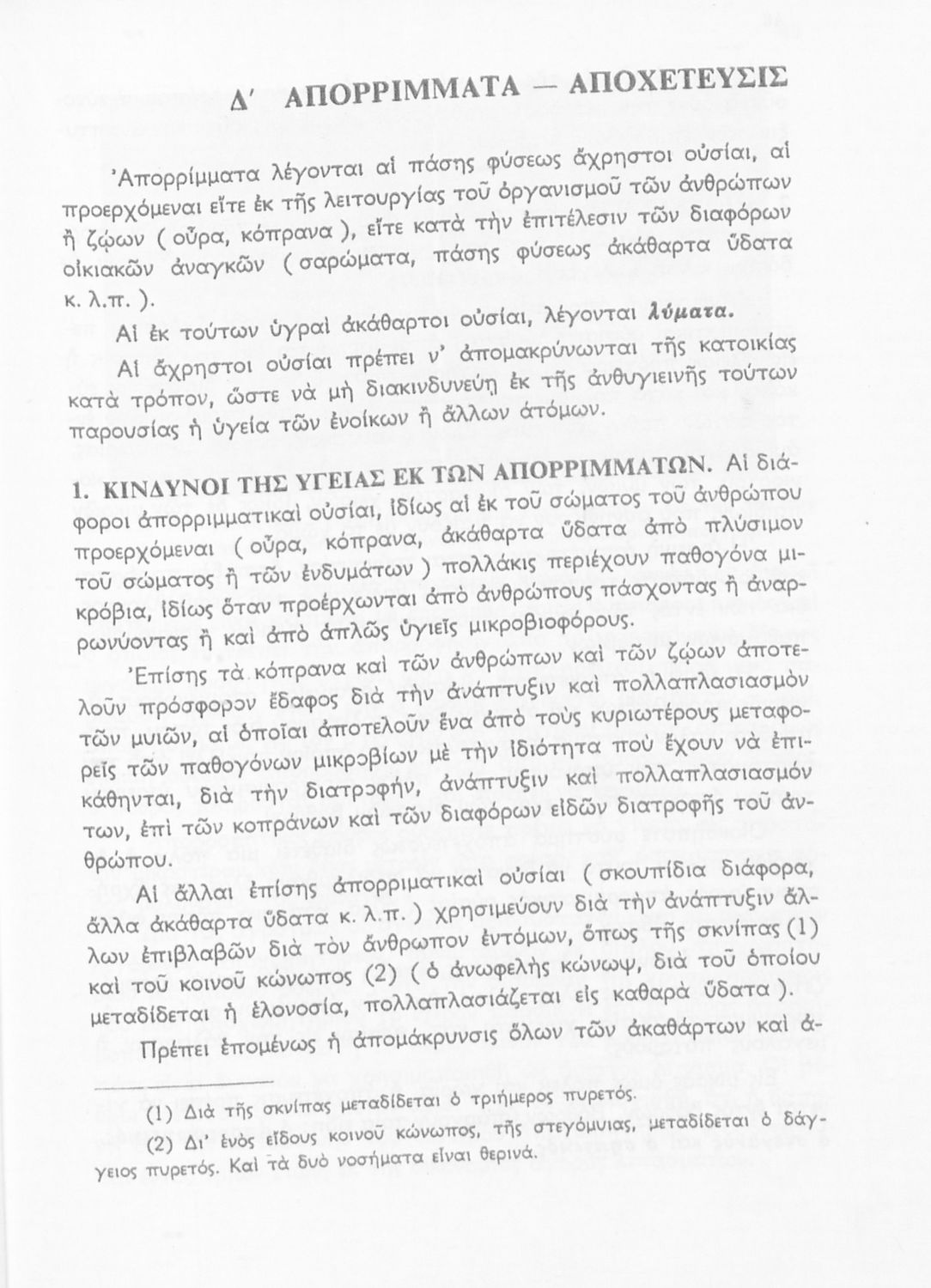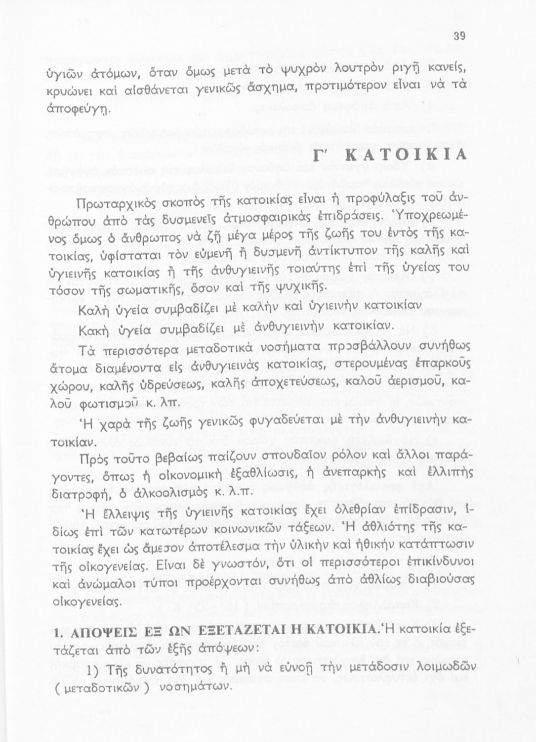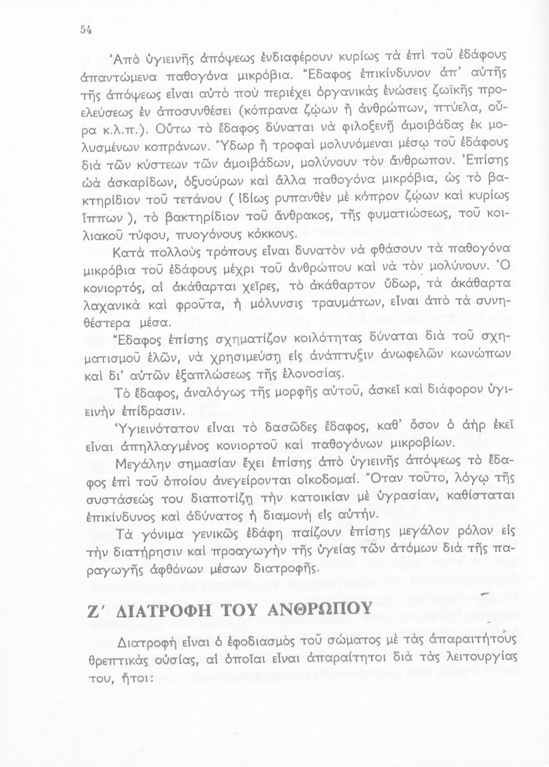 Σχολικό εγχειρίδιο Υγιεινής της Β΄ Γυμνασίου. Αναφέρεται στο ζήτημα της υγιεινής και εξετάζει τις συνθήκες και τις αιτίες που επηρεάζουν την υγεία του ατόμου ή μιας ομάδας ατόμων και παρουσιάζει τα μέτρα που πρέπει να ληφθούν για την ανάκτηση και διατήρηση της υγείας. Πιο συγκεκριμένα το βιβλίο αναφέρεται στις επιδράσεις του αέρα, της ενδυμασίας και του νερού, των λοιμώδη νοσημάτων και το ρόλο της κληρονομικότητας.