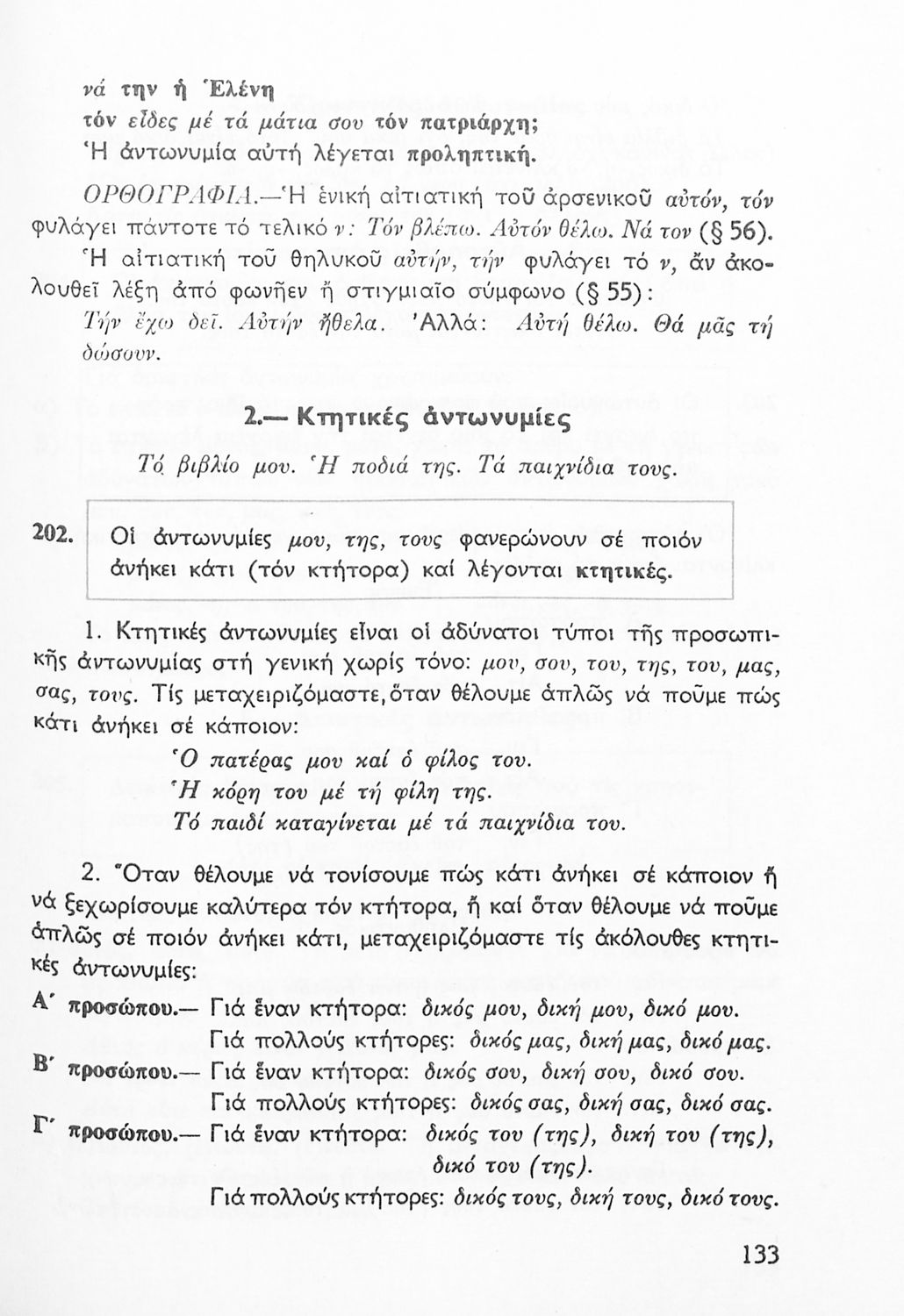 Σχολικό εγχειρίδιο Γραμματικής για τη ΣΤ΄ Δημοτικού και τις τάξεις της Μέσης εκπαίδευσης. Περιέχει τη διδασκαλία της Γραμματικής της δημοτικής και για τους παιδαγωγούς αλλά και τους μαθητές.