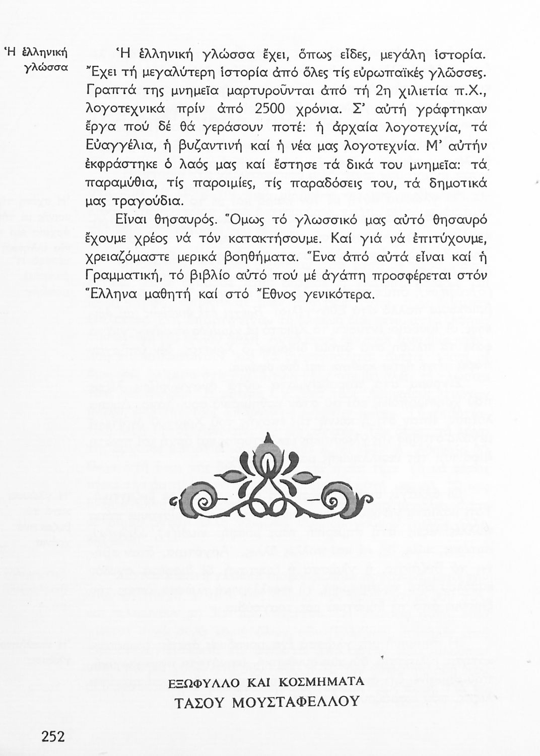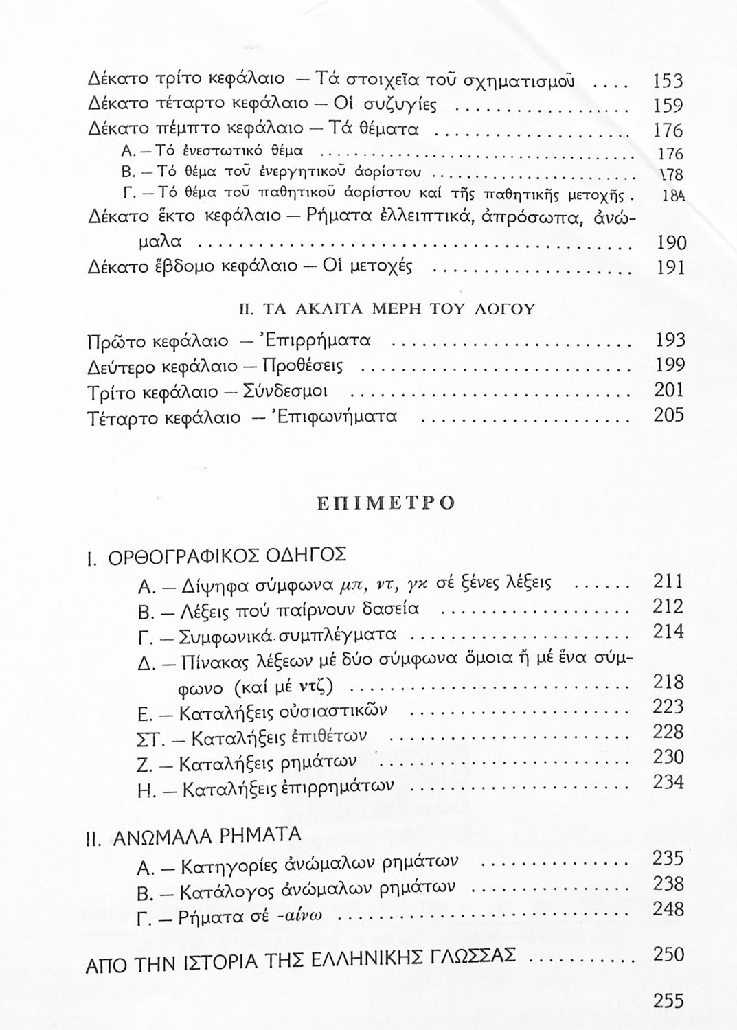 Σχολικό εγχειρίδιο Γραμματικής για τη ΣΤ΄ Δημοτικού και τις τάξεις της Μέσης εκπαίδευσης. Περιέχει τη διδασκαλία της Γραμματικής της δημοτικής και για τους παιδαγωγούς αλλά και τους μαθητές.