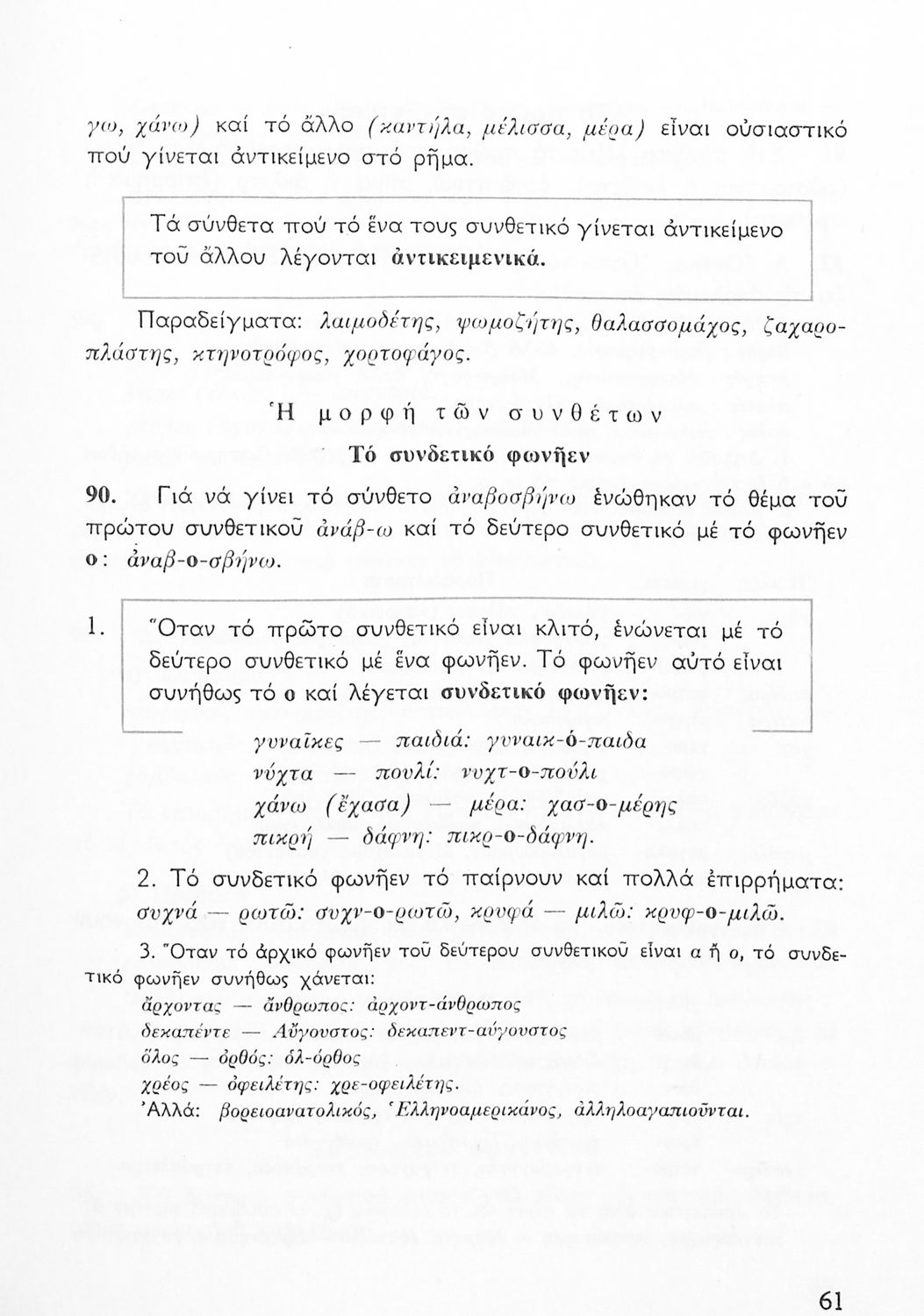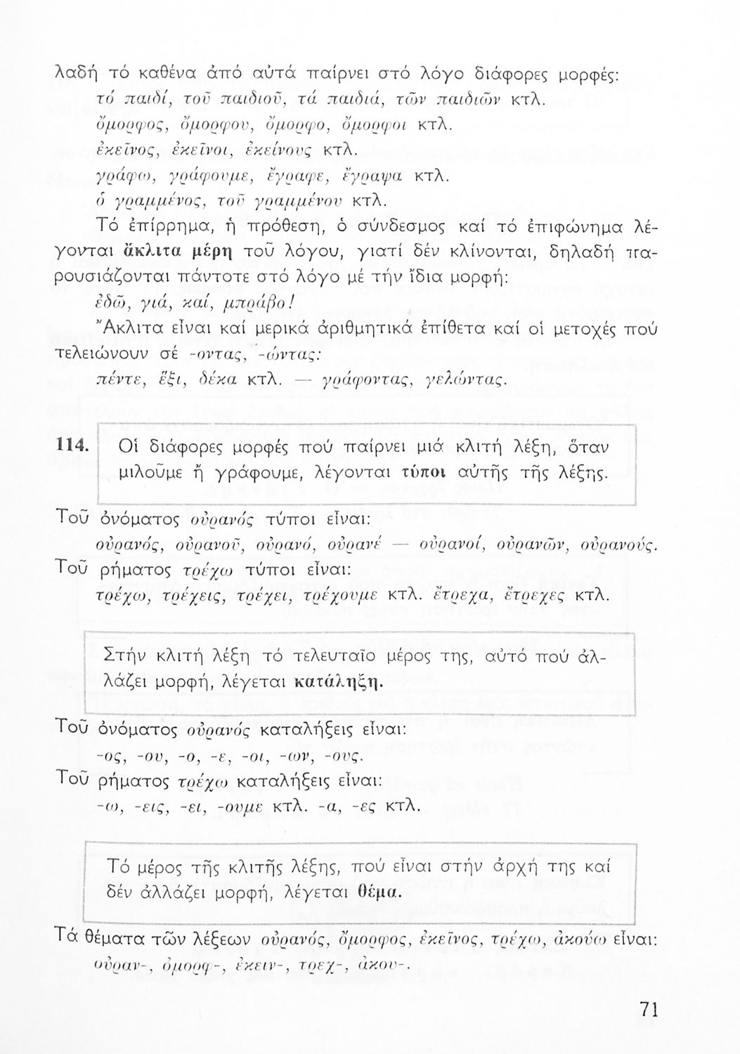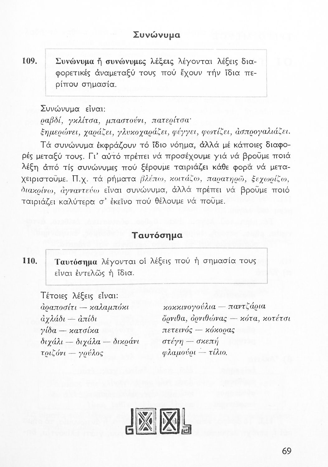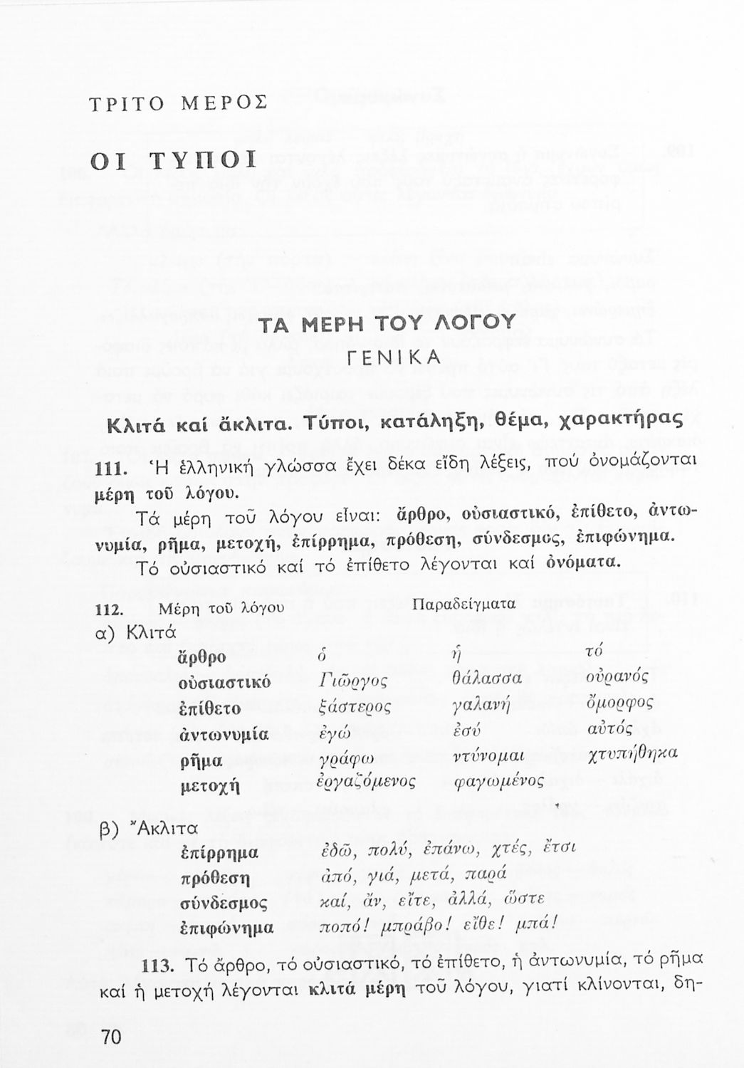 Σχολικό εγχειρίδιο Γραμματικής για τη ΣΤ΄ Δημοτικού και τις τάξεις της Μέσης εκπαίδευσης. Περιέχει τη διδασκαλία της Γραμματικής της δημοτικής και για τους παιδαγωγούς αλλά και τους μαθητές.