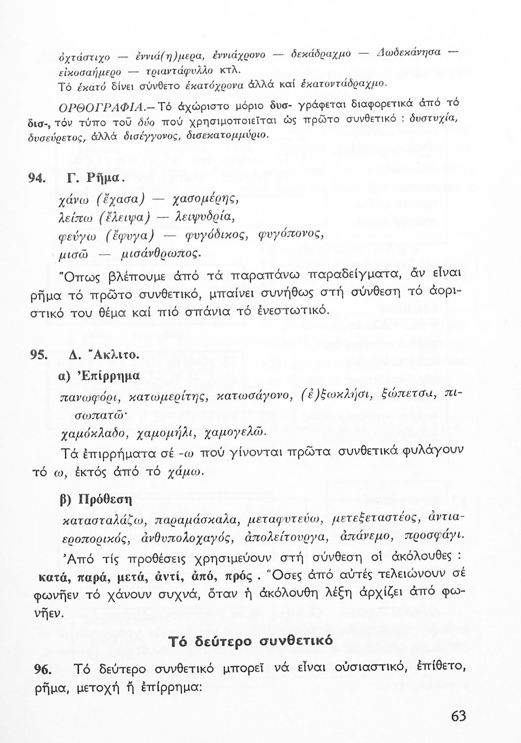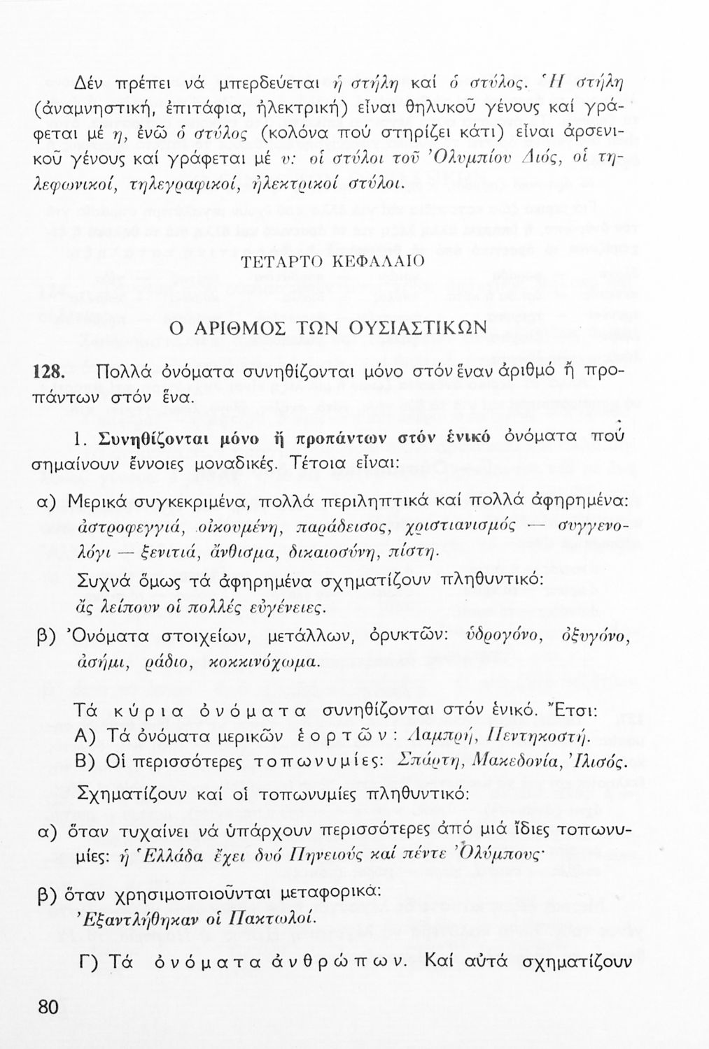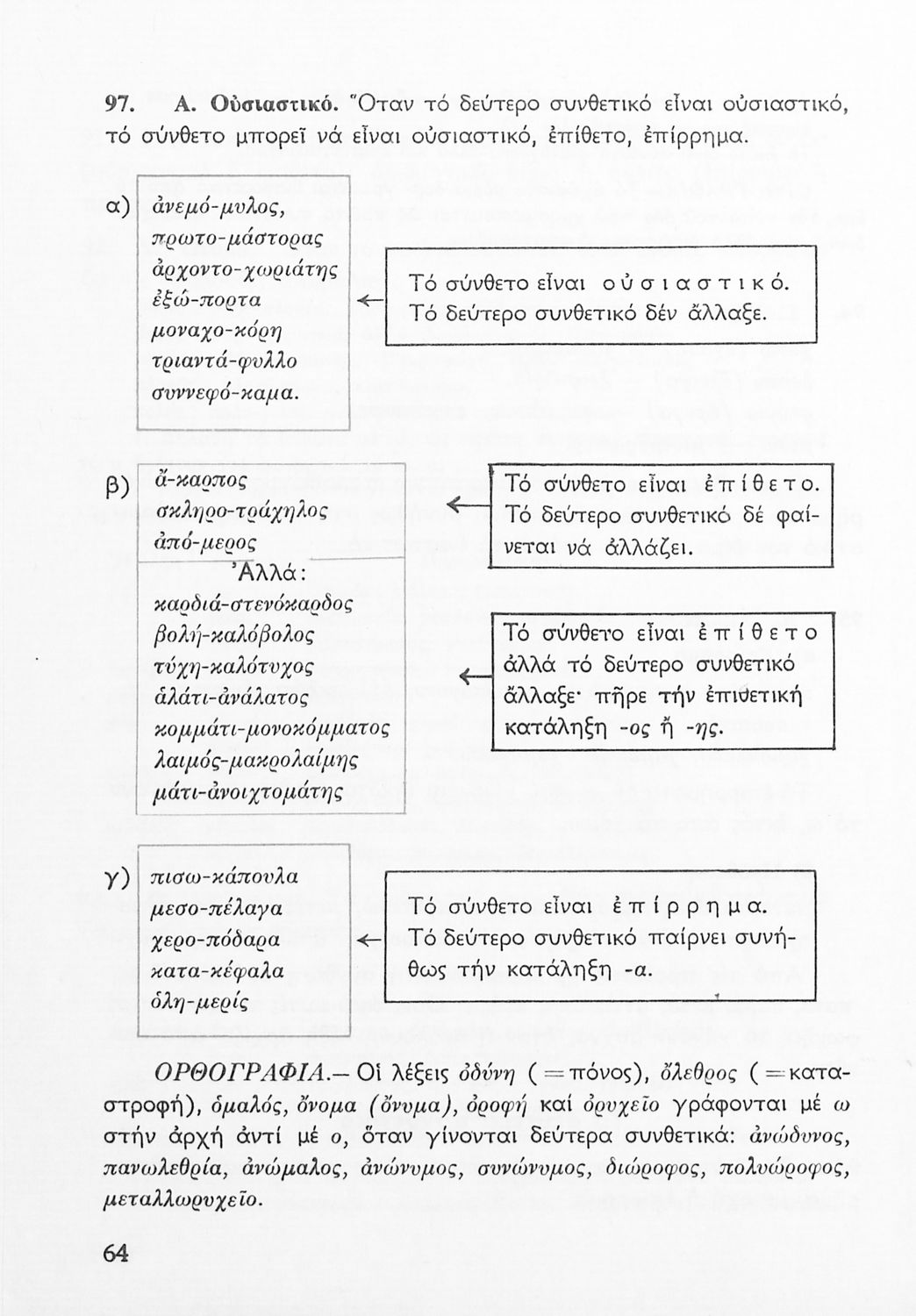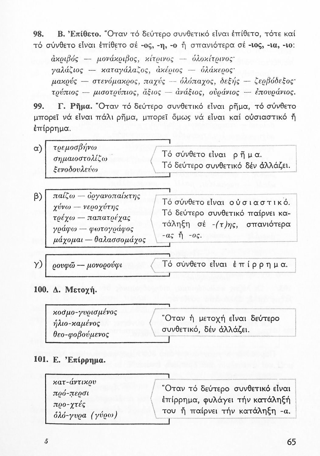 Σχολικό εγχειρίδιο με κανόνες Γραμματικής της Νεοελληνικής Γλώσσας. Το συγκεκριμένο τεύχος περιέχει ορθογραφικό οδηγό και κατάλογο ανώμαλων ρημάτων.