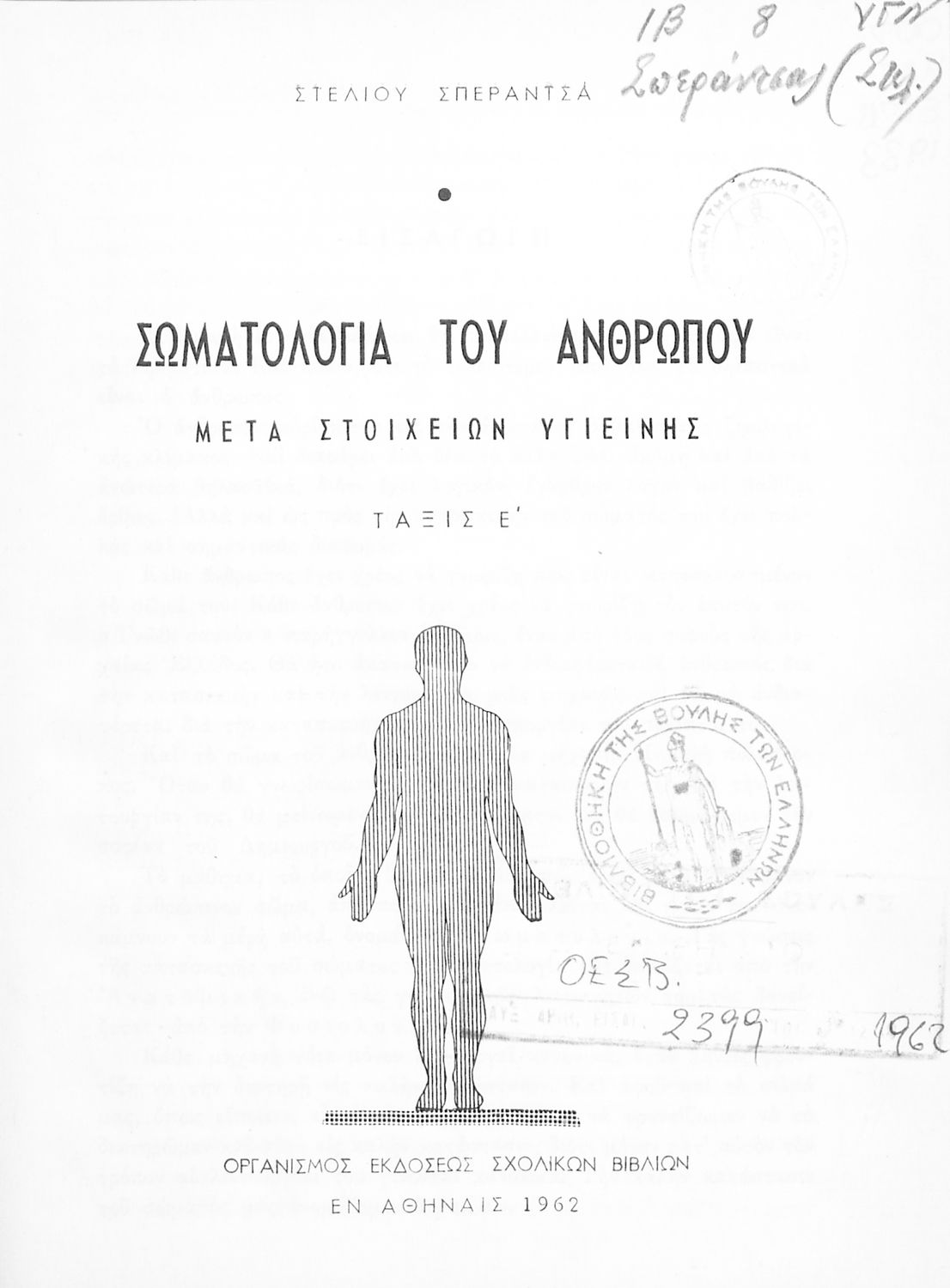 Τίτλος: Σωματολογία του ανθρώπου μετά στοιχείων Υγιεινής τάξις Ε ́