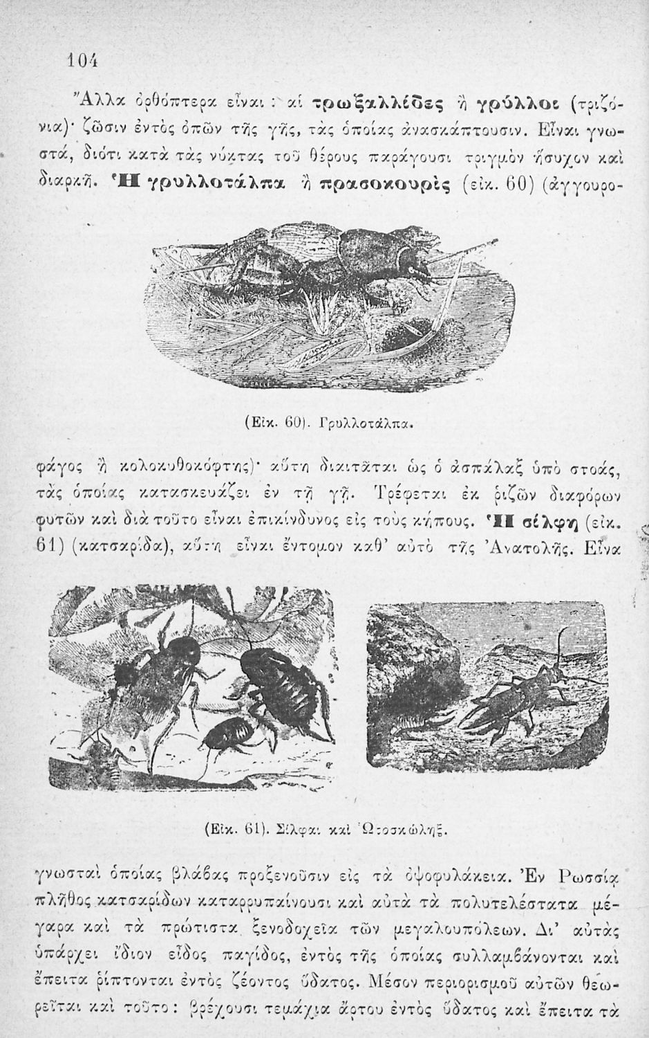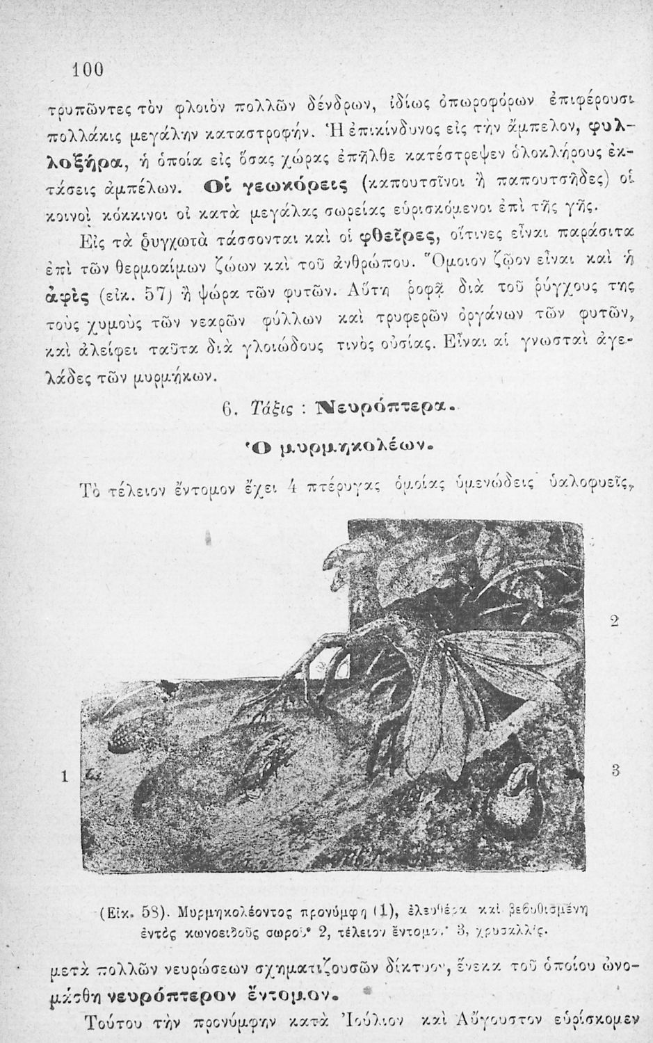 Σχολικό εγχειρίδιο Γεωγραφίας για την Α΄ Ελληνικών Σχολείων. Βιβλίο Φυσικής Ιστορίας με ζώα και φυτά που αναφέρονται οι χρήσεις τους, οι εχθροί και οι προφυλάξεις.