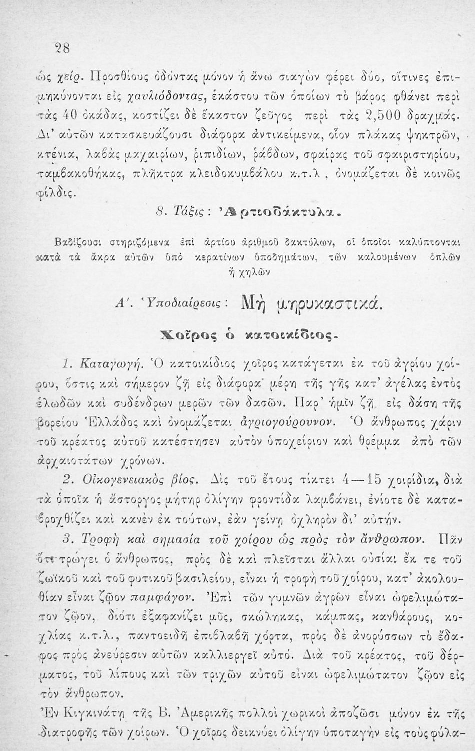 Σχολικό εγχειρίδιο Φυσικής Ιστορίας για τα Ελληνικά Σχολεία και Παρθεναγωγεία που περιλαμβάνει στοιχεία ζωολογίας και της φυτολογίας και διακρίνει τα ζώα και τα φυτά ανάλογα με την συνομοταξία στην οποία ...