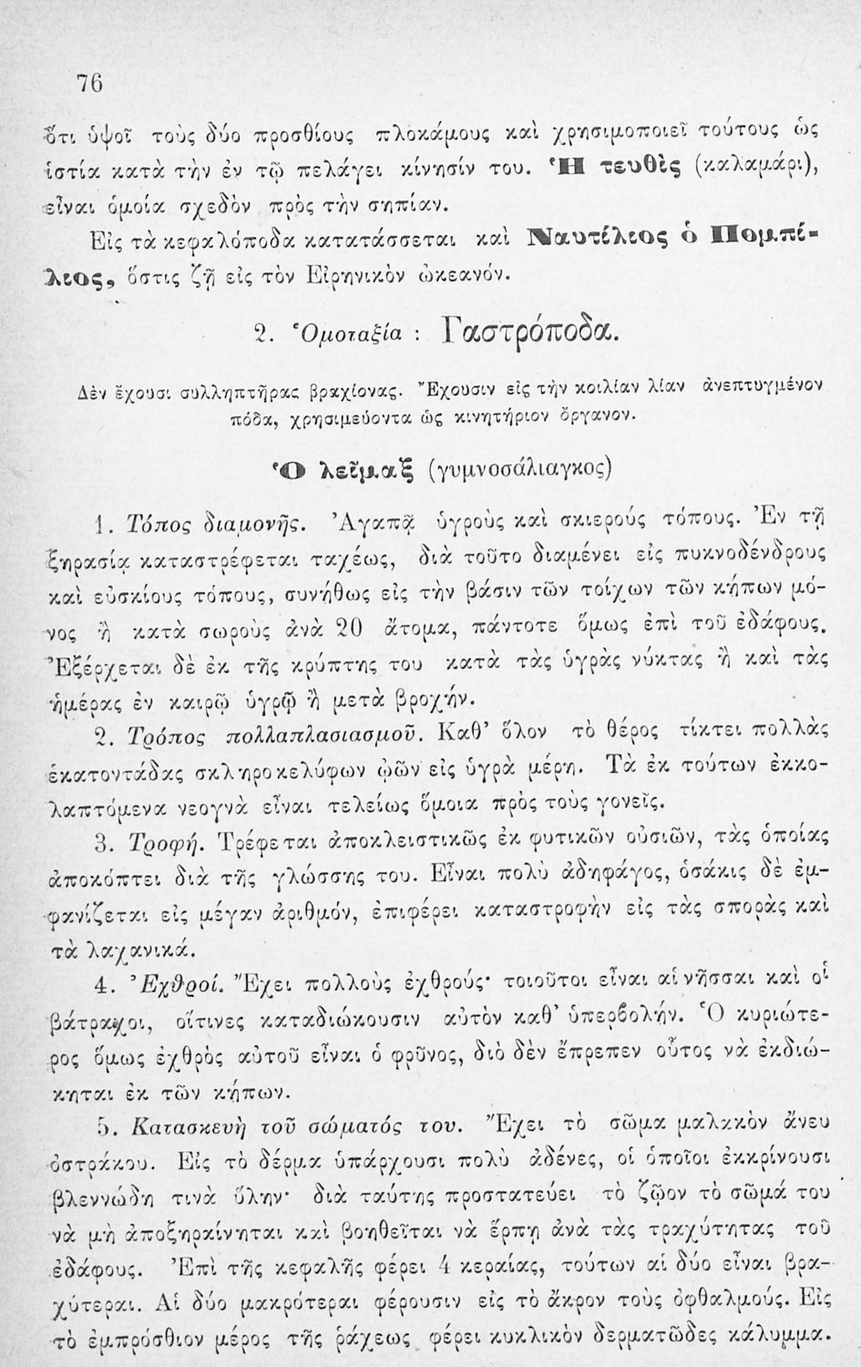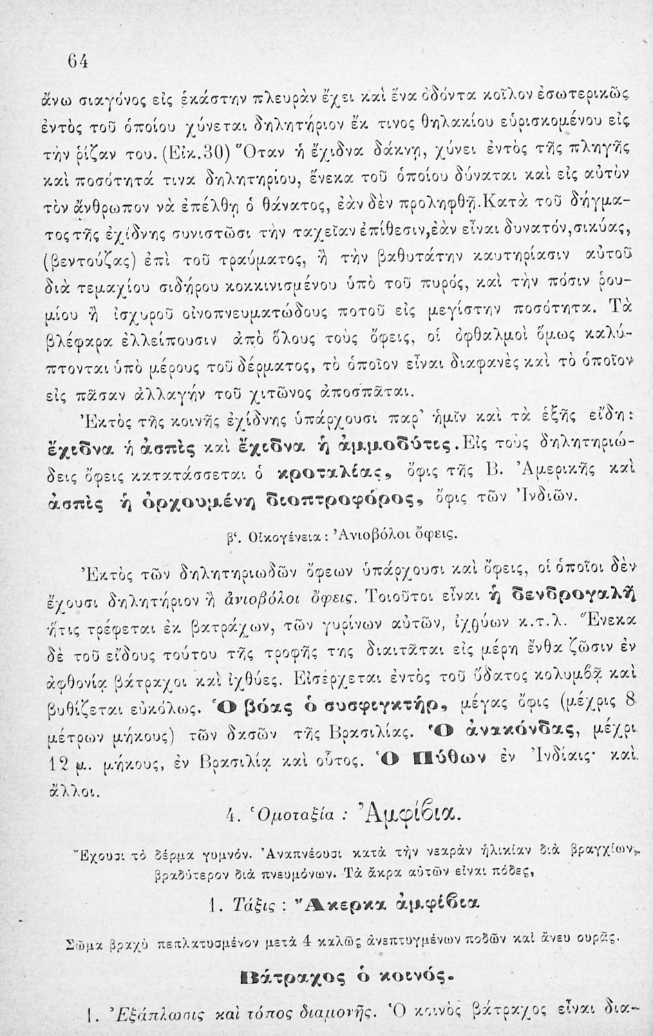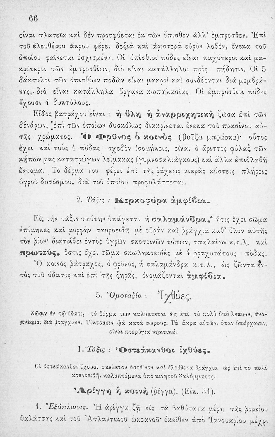 Σχολικό Εγχειρίδιο Φυσικής Ιστορίας για τις Α' και Β' Ελληνικών Σχολείων και Παρθεναγωγείων που περιλαμβάνει στοιχεία ζωολογίας και της φυτολογίας και διακρίνει τα ζώα και τα φυτά ανάλογα με την συνομοταξία στην οποία ανήκουν
