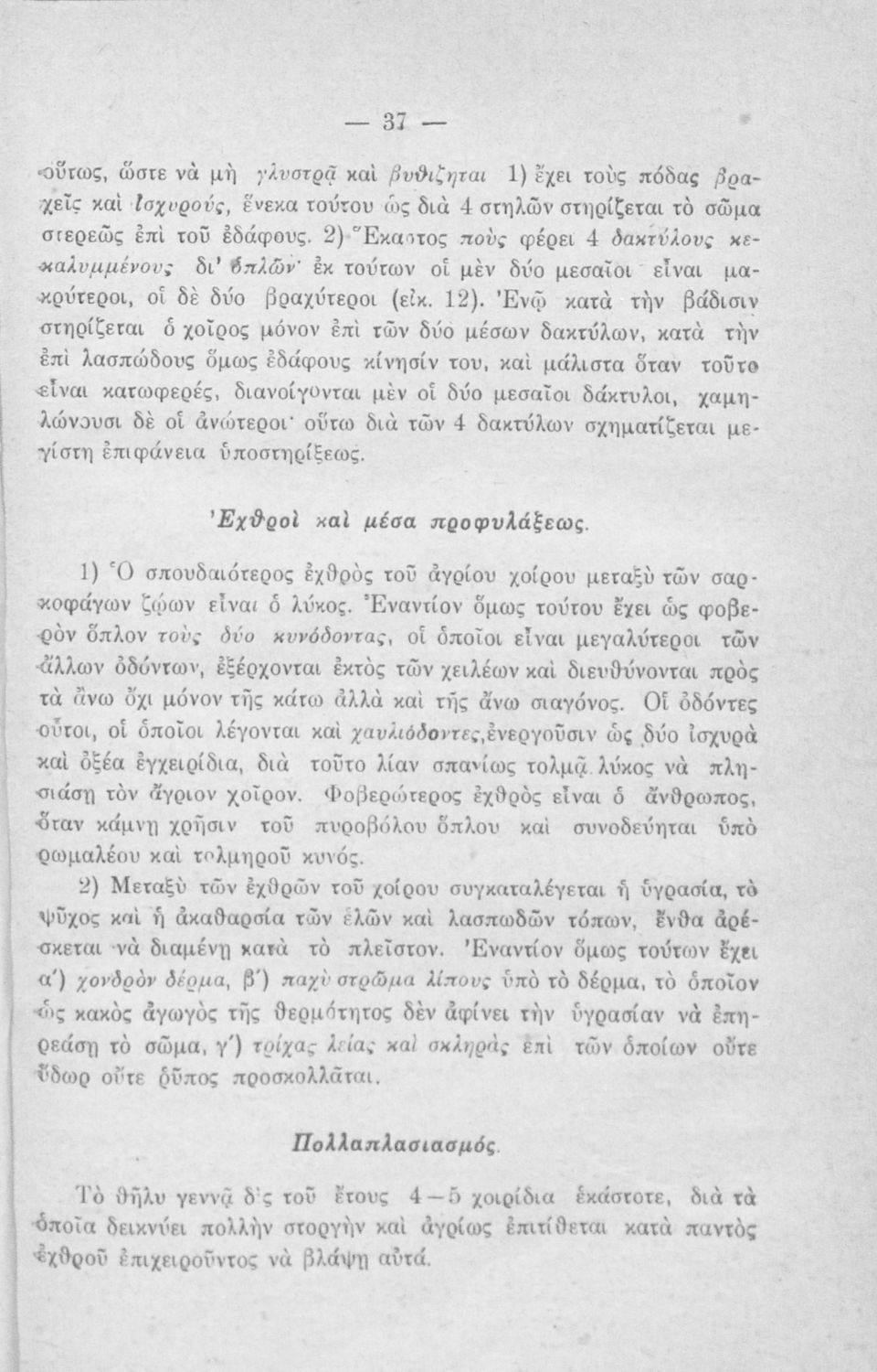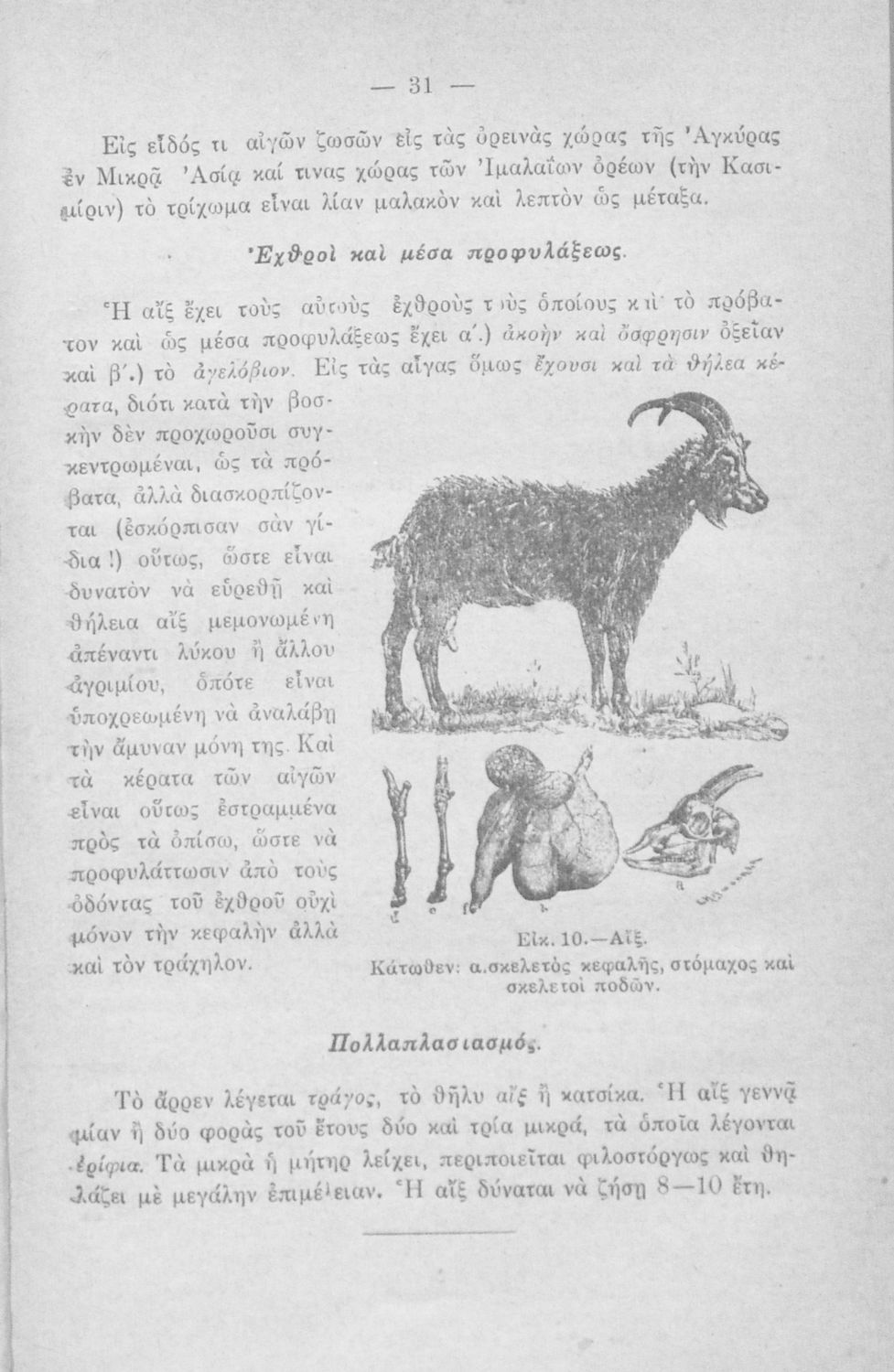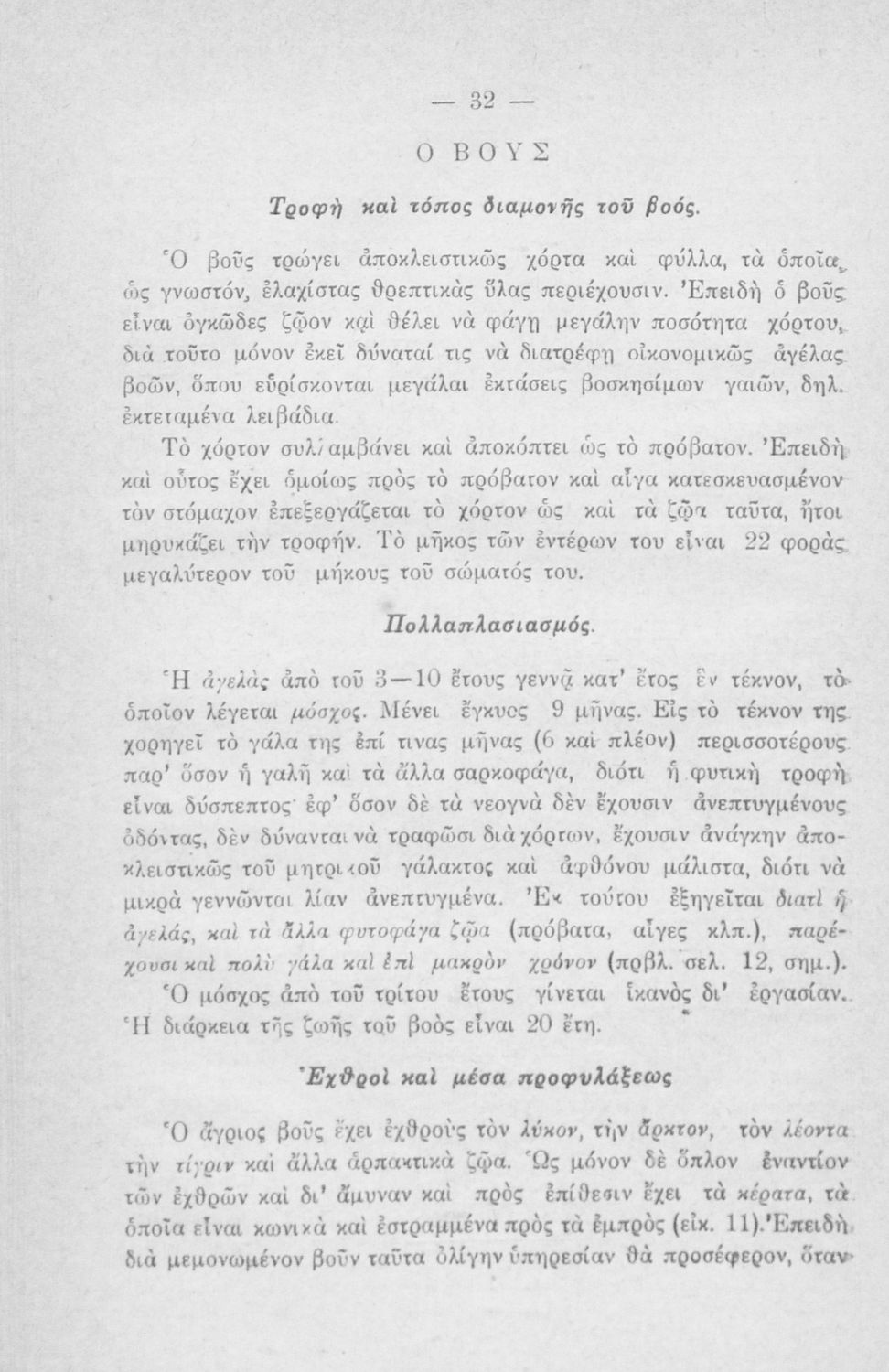 Σχολικό εγχειρίδιο Γεωγραφίας για την Α΄ Ελληνικών Σχολείων. Βιβλίο Φυσικής Ιστορίας με ζώα και φυτά που αναφέρονται οι χρήσεις τους, οι εχθροί και οι προφυλάξεις.