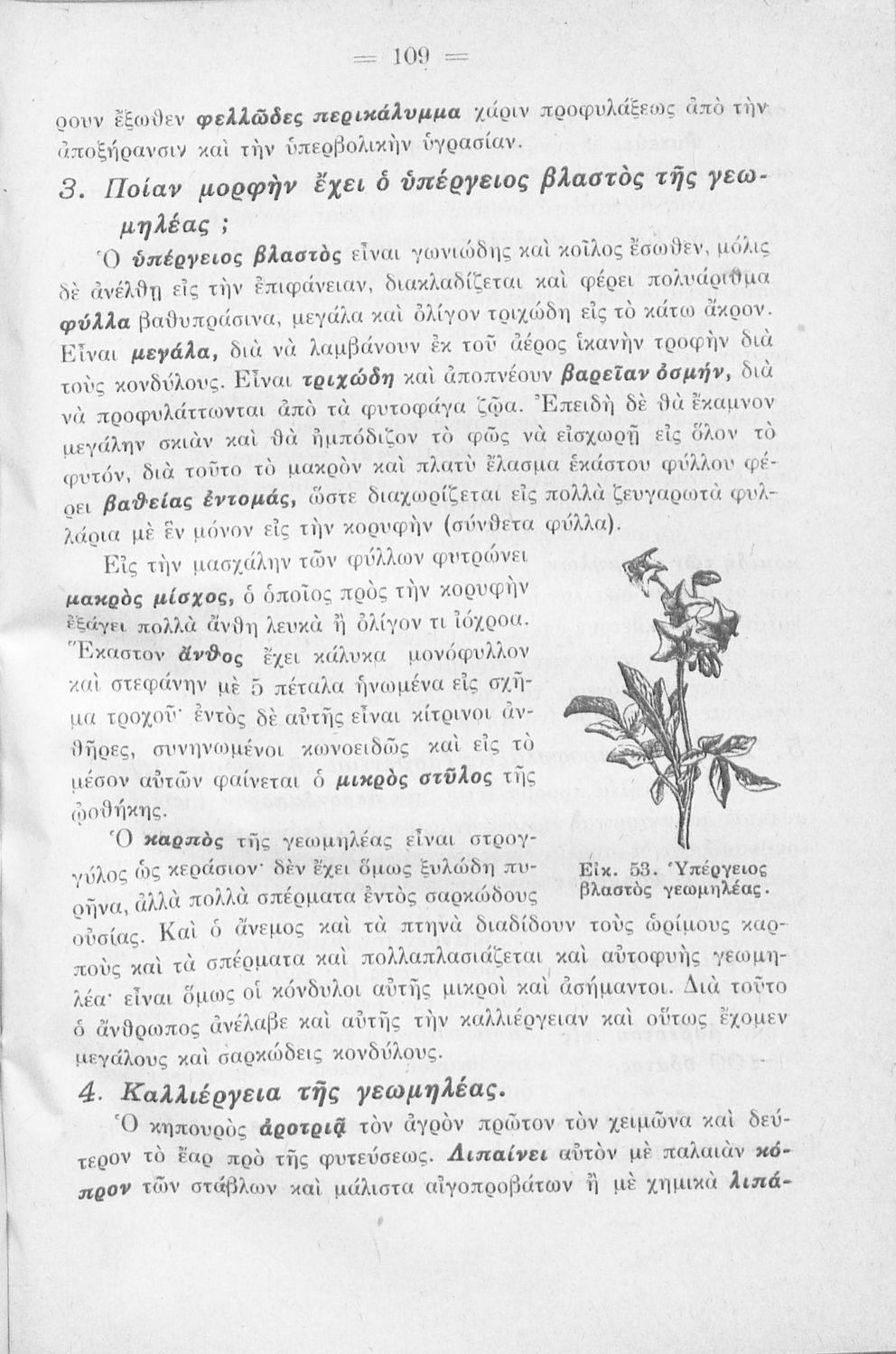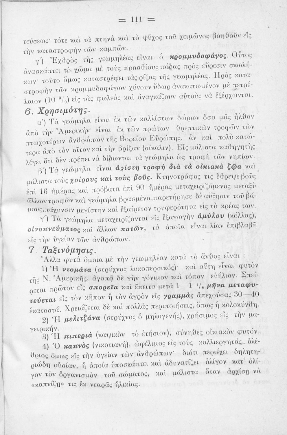 Σχολικό εγχειρίδιο Γεωγραφίας για την Α΄ Ελληνικών Σχολείων. Βιβλίο Φυσικής Ιστορίας με ζώα και φυτά που αναφέρονται οι χρήσεις τους, οι εχθροί και οι προφυλάξεις.