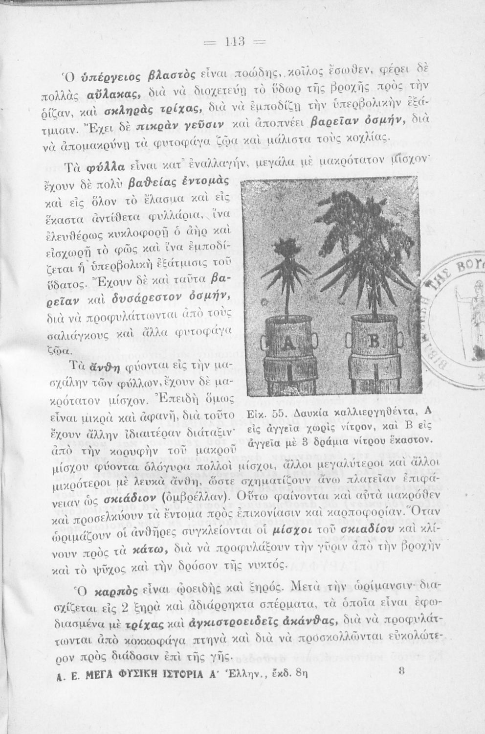 Σχολικό Εγχειρίδιο Φυσικής Ιστορίας για τις Α' και Β' Ελληνικών Σχολείων και Παρθεναγωγείων που περιλαμβάνει στοιχεία ζωολογίας και της φυτολογίας και διακρίνει τα ζώα και τα φυτά ανάλογα με την συνομοταξία ...