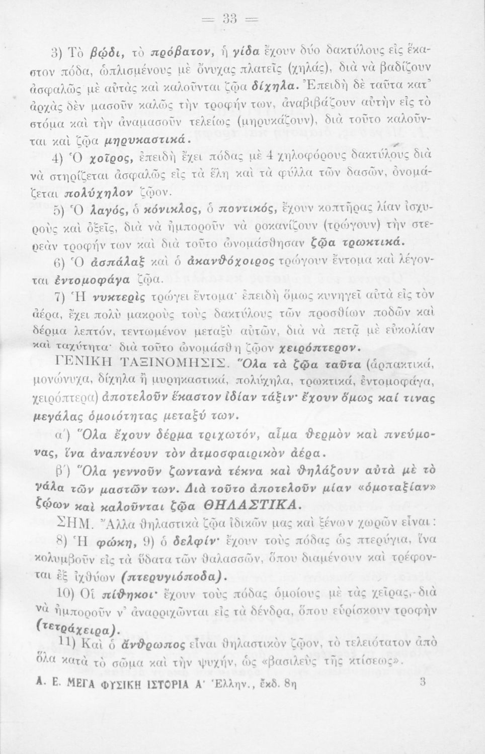 Σχολικό εγχειρίδιο της Α' Ελληνικού Σχολείου για το μάθημα της Φυσικής Ιστορίας. Το εγχειρίδιο περιλαμβάνει τα βασικά ζητήματα της επιστήμης της ζωολογίας (κατηγορίες και διαφορές μεταξύ ζώων, πτηνών και ...