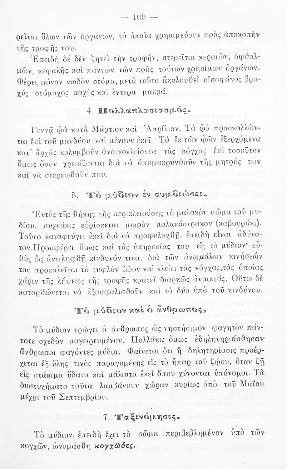 Σχολικό εγχειρίδιο Φυσικής Ιστορίας της Α' Τάξης των Γυμνασίων και Ημιγυμνασίων. Το βιβλίο χωρίζεται σε τρία κεφάλαια: ζωολογία, ορυκτολογία, φυτολογία.