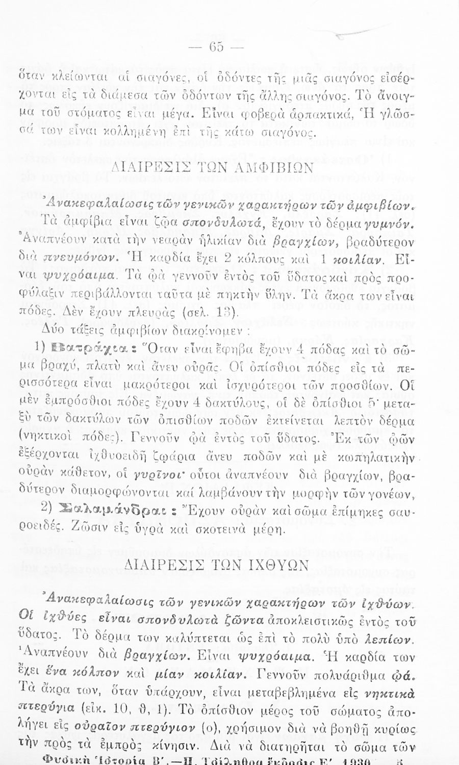 Παρουσίαση περιεχομένου: Σχολικό εγχειρίδιο Φυσικής Ιστορίας της Α' Τάξης των Γυμνασίων και Ημιγυμνασίων. Το βιβλίο χωρίζεται σε τρία κεφάλαια: ζωολογία, ορυκτολογία, φυτολογία.