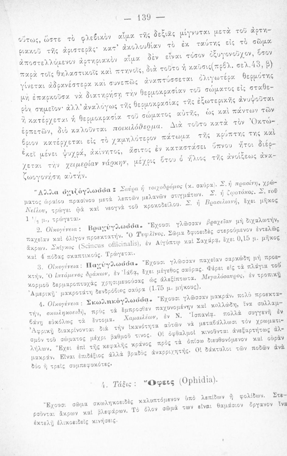 Σχολικό εγχειρίδιο Φυσικής Ιστορίας για τα Ελληνικά Σχολεία και Παρθεναγωγεία που περιλαμβάνει στοιχεία ζωολογίας και της φυτολογίας και διακρίνει τα ζώα και τα φυτά ανάλογα με την συνομοταξία στην οποία ...