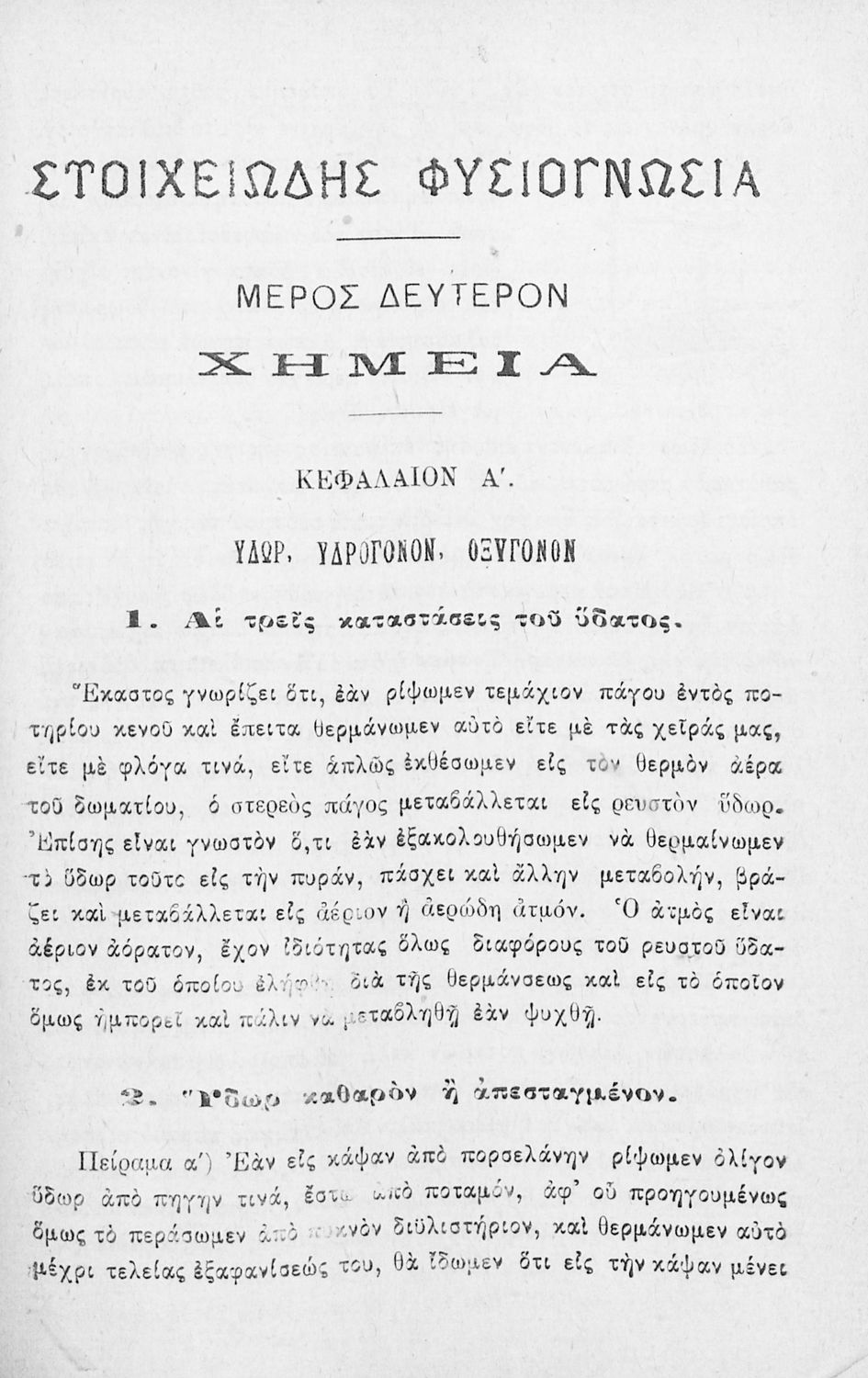 Στοιχειώδη μαθήματα Φυσιογνωσίας. Φυσική και Χημεία. Δια την Τρίτη Τάξιν των Ελληνικών Σχολείων και Παρθεναγωγείων