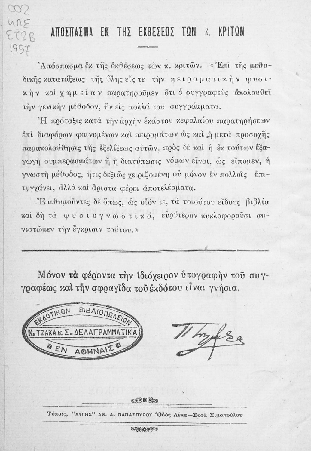 Εκδότης: Δημ. Ν. Τζάκας, Στεφ. Δελαγραμμάτικας