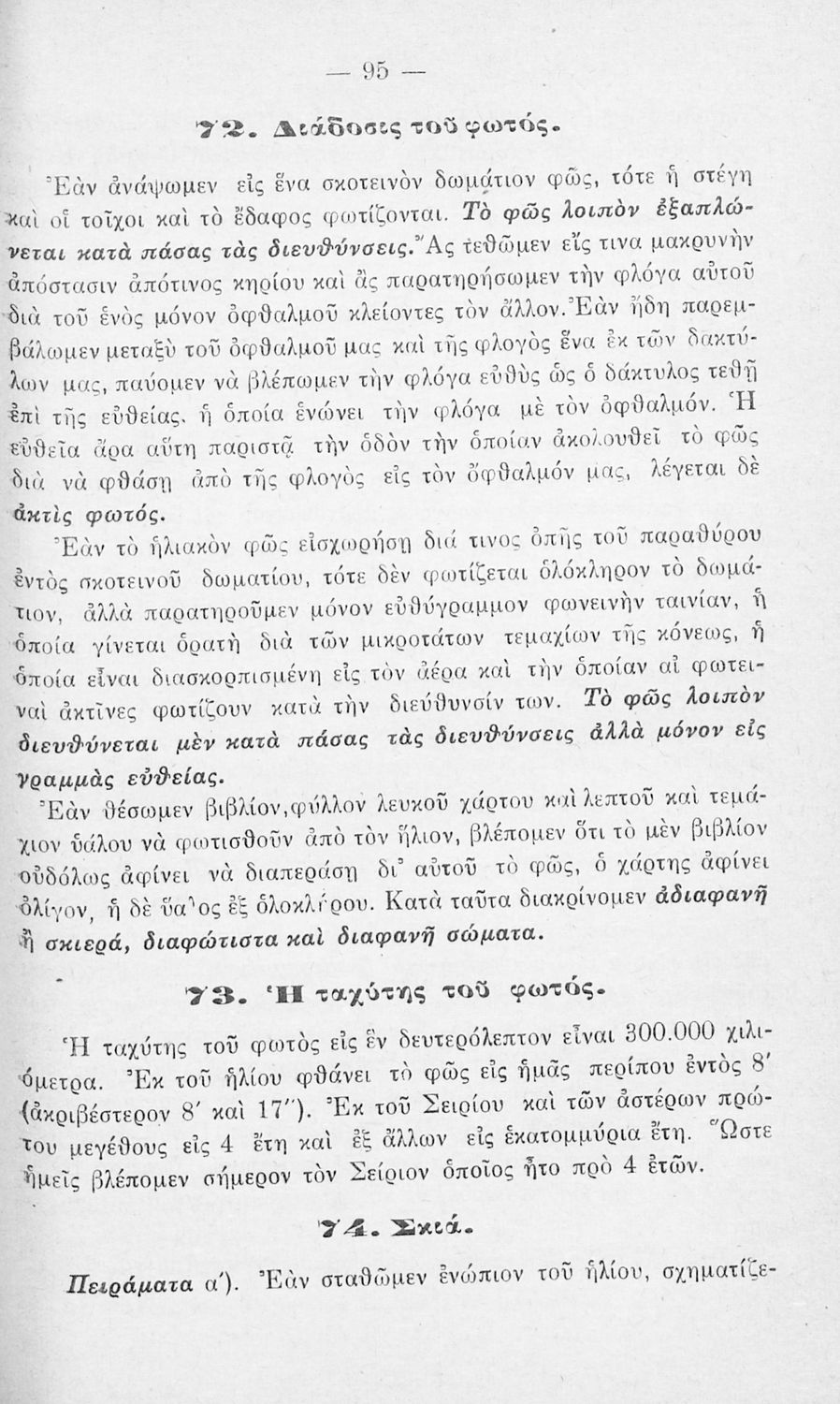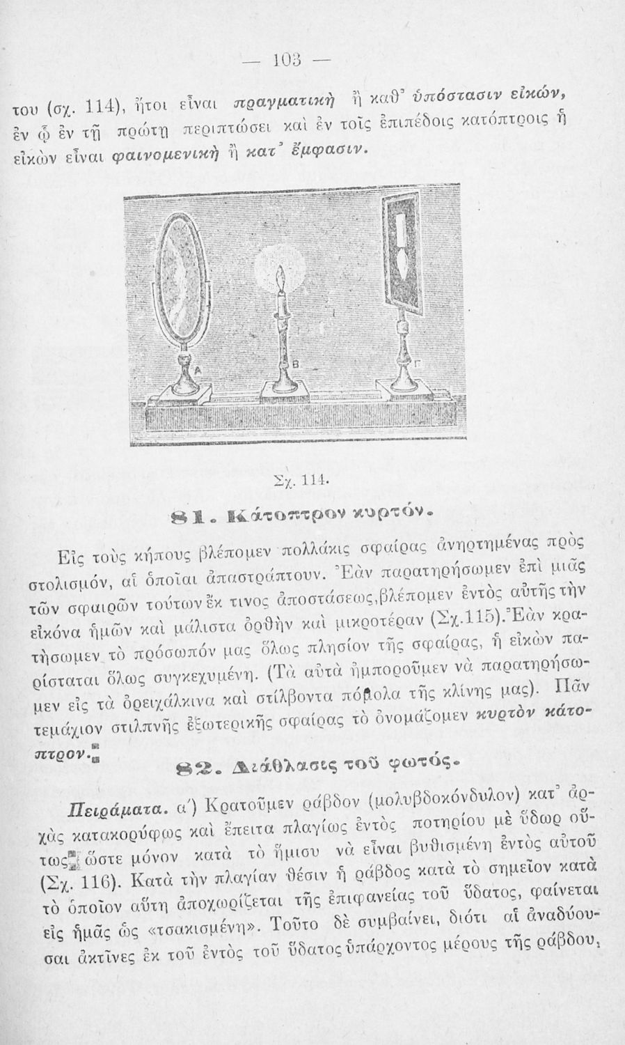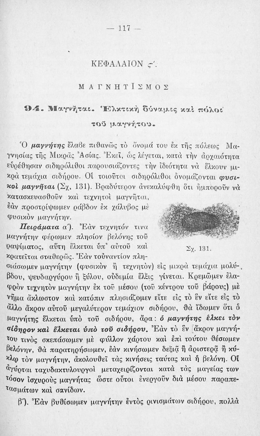 Σχολικό εγχειρίδιο Φυσικής και Χημείας της Γ' Τάξης των Ελληνικών Σχολείων και Παρθεναγωγείων. Το βιβλίο ξεκινάει παρουσιάζοντας τα βασικά στοιχεία ισορροπίας και κίνησης των στερεών σωμάτων και στη συνέχεια των υγρών και των αερίων. Μετά αναφέρεται στον ήχο, τη θερμότητα, το φως, στον ηλεκτρισμό και στον ηλεκτρομαγνητισμό. Στο δεύτερο μέρος, παρουσιάζει τα βασικά στοιχεία της χημείας, υδρογόνο, άζωτο, θείο, φώσφορο καθώς και τις διάφορες ενώσεις όπως το πετρέλαιο.