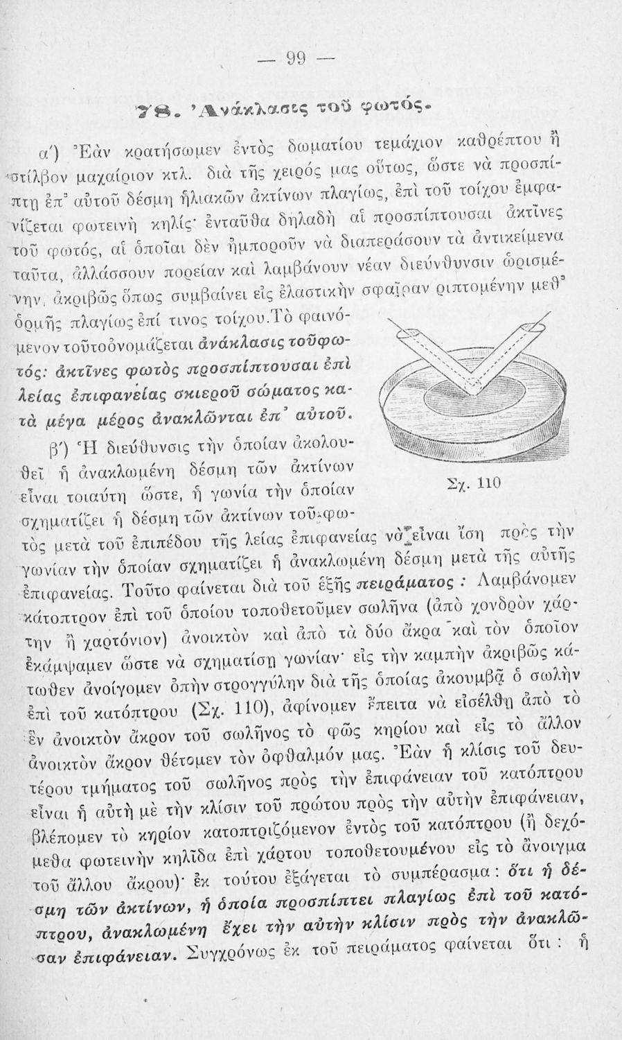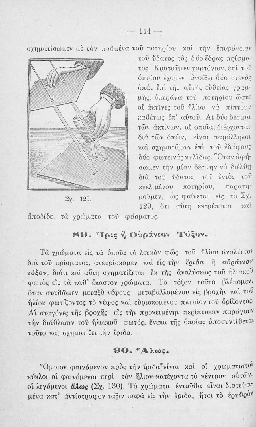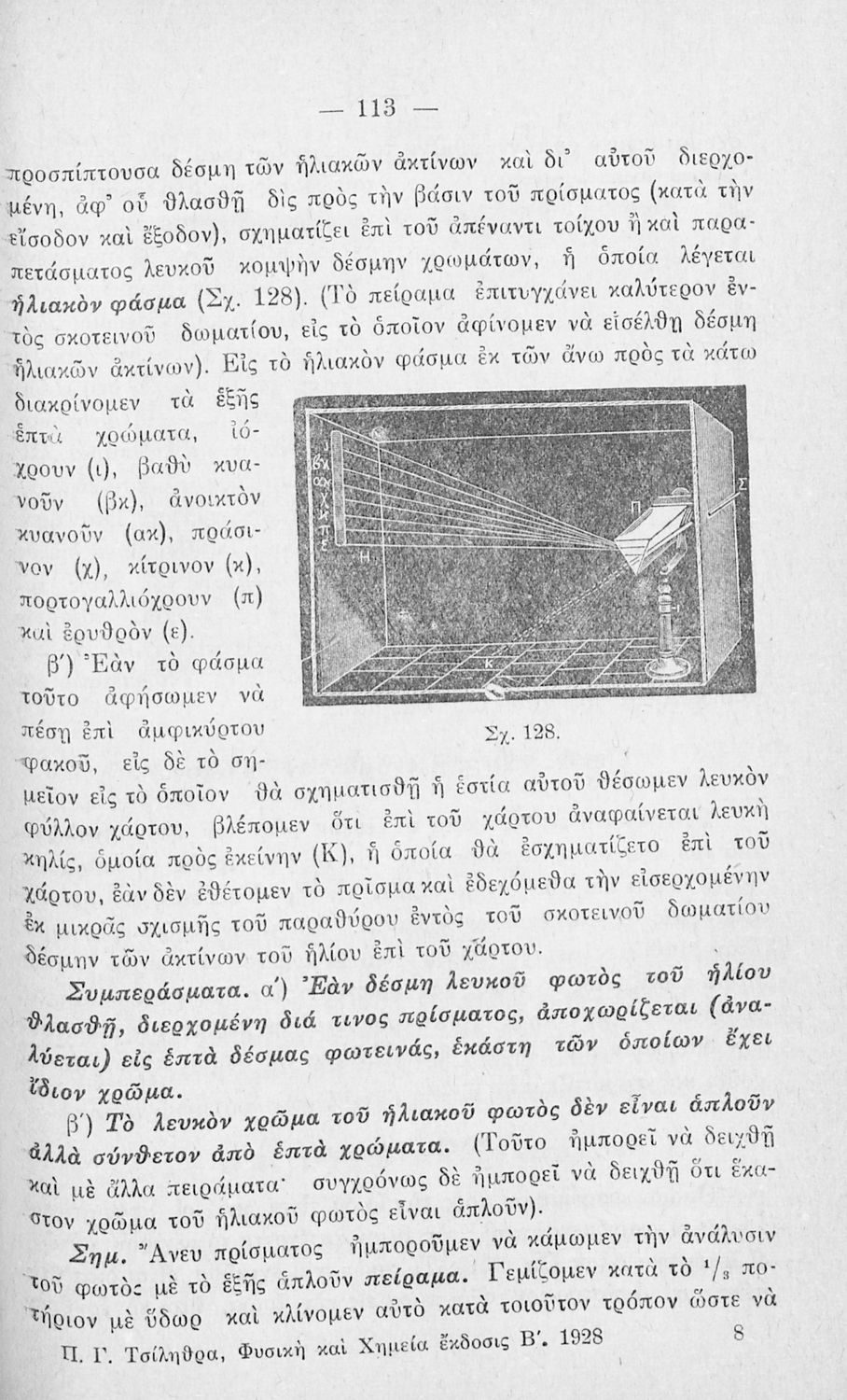 Σχολικό εγχειρίδιο Φυσικής και Χημείας της Γ' Τάξης των Ελληνικών Σχολείων και Παρθεναγωγείων. Το βιβλίο ξεκινάει παρουσιάζοντας τα βασικά στοιχεία ισορροπίας και κίνησης των στερεών σωμάτων και στη συνέχεια των υγρών και των αερίων. Μετά αναφέρεται στον ήχο, τη θερμότητα, το φως, στον ηλεκτρισμό και στον ηλεκτρομαγνητισμό. Στο δεύτερο μέρος, παρουσιάζει τα βασικά στοιχεία της χημείας, υδρογόνο, άζωτο, θείο, φώσφορο καθώς και τις διάφορες ενώσεις όπως το πετρέλαιο.