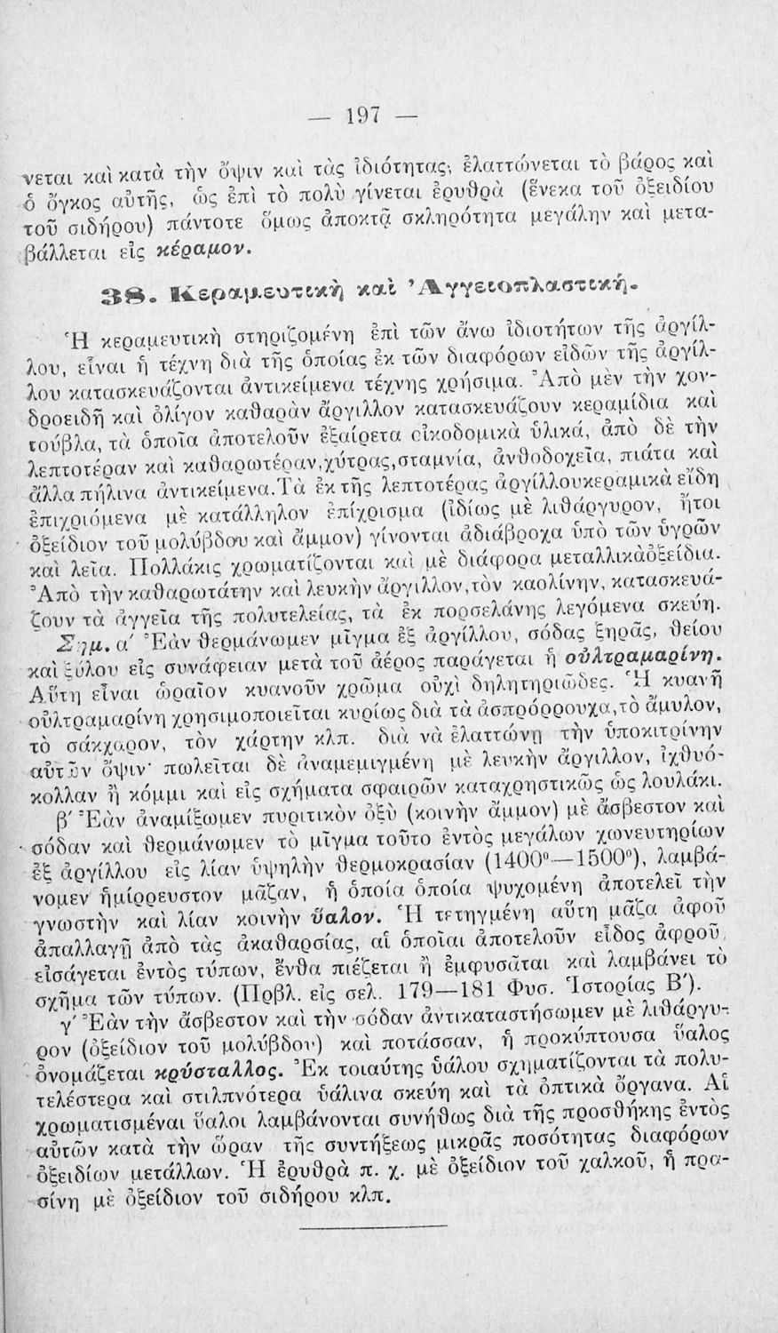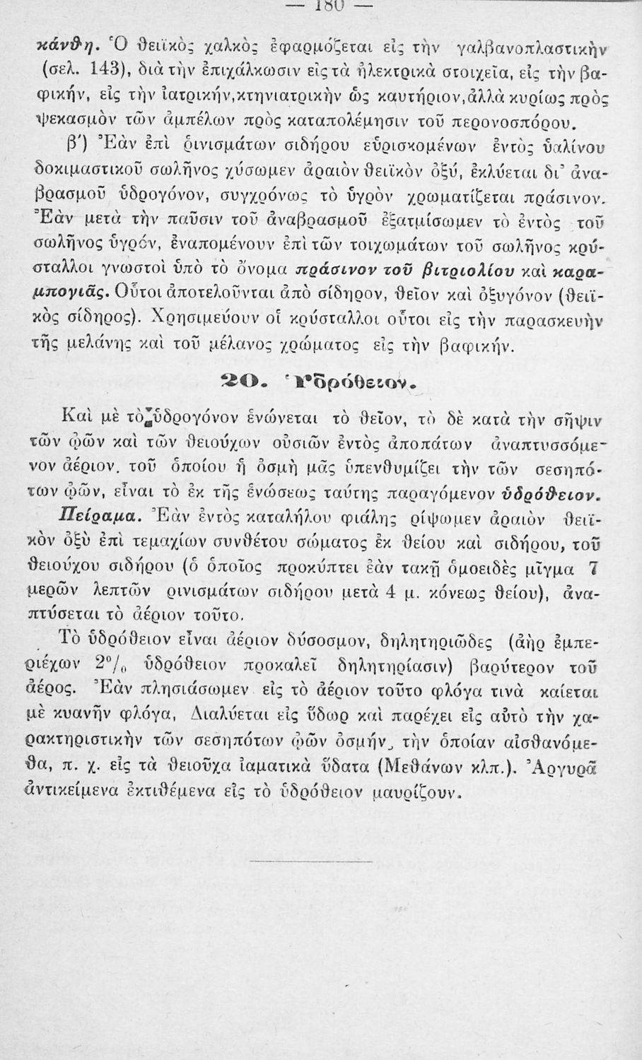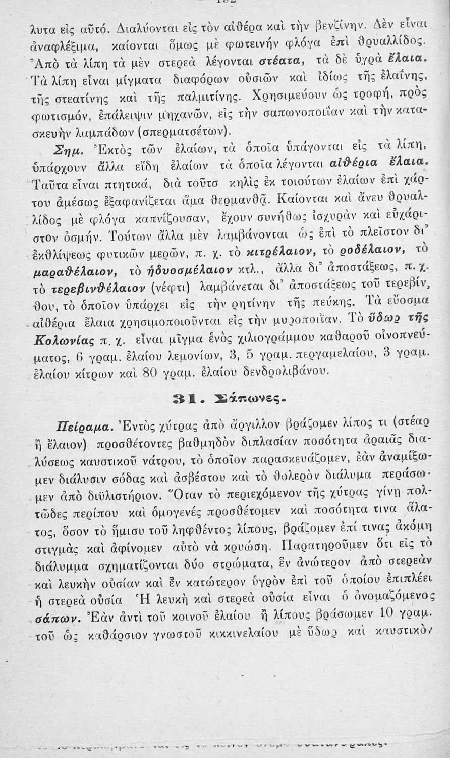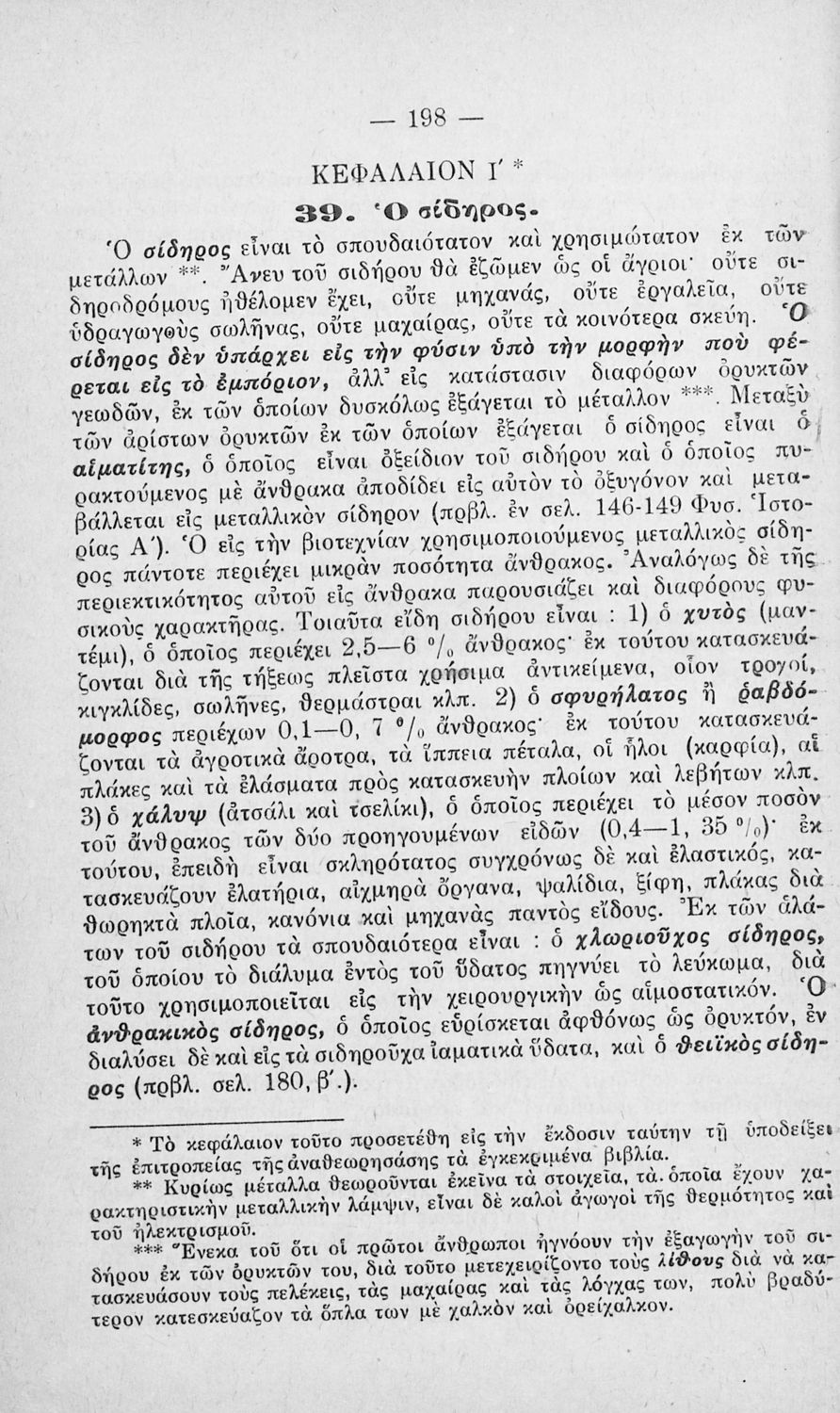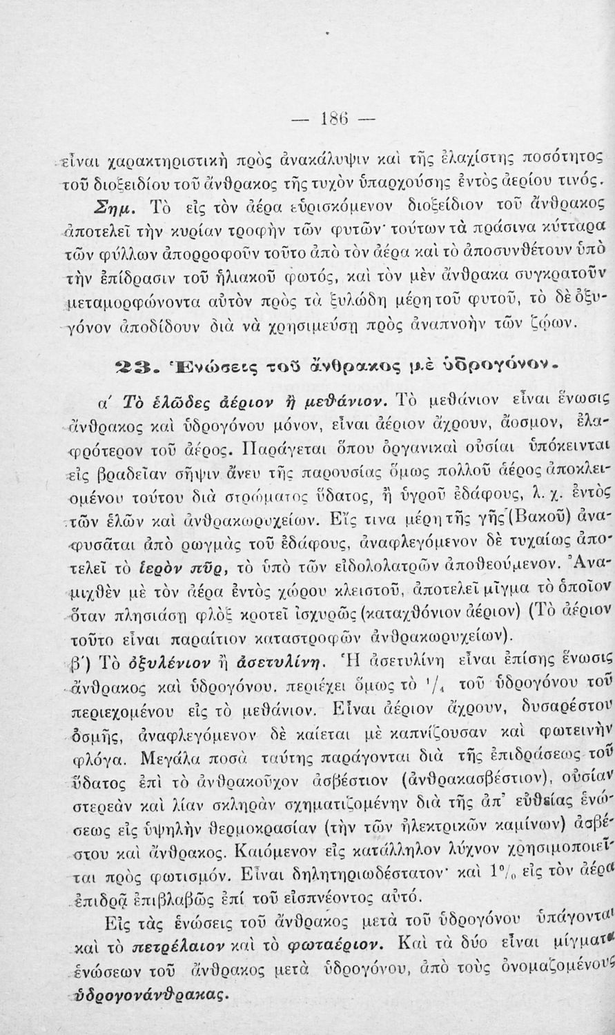Σχολικό εγχειρίδιο Φυσικής και Χημείας της Γ' Τάξης των Ελληνικών Σχολείων και Παρθεναγωγείων. Το βιβλίο ξεκινάει παρουσιάζοντας τα βασικά στοιχεία ισορροπίας και κίνησης των στερεών σωμάτων και στη συνέχεια των υγρών και των αερίων. Μετά αναφέρεται στον ήχο, τη θερμότητα, το φως, στον ηλεκτρισμό και στον ηλεκτρομαγνητισμό. Στο δεύτερο μέρος, παρουσιάζει τα βασικά στοιχεία της χημείας, υδρογόνο, άζωτο, θείο, φώσφορο καθώς και τις διάφορες ενώσεις όπως το πετρέλαιο.