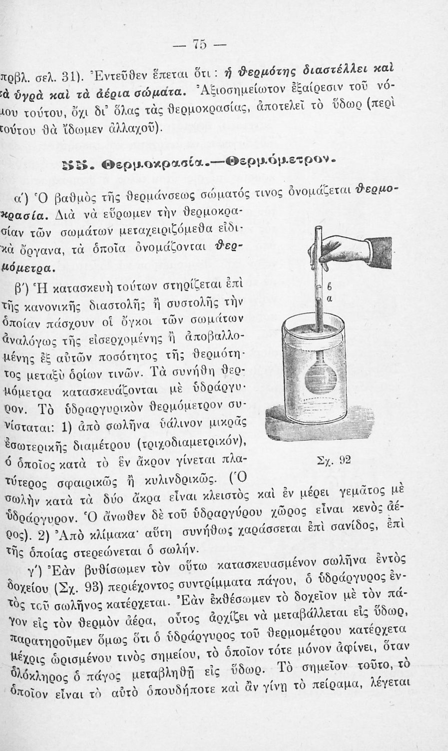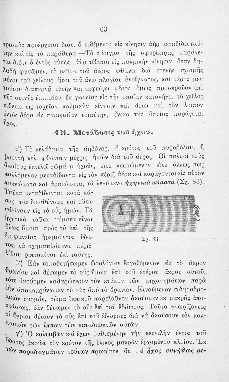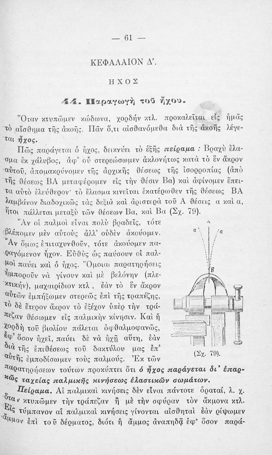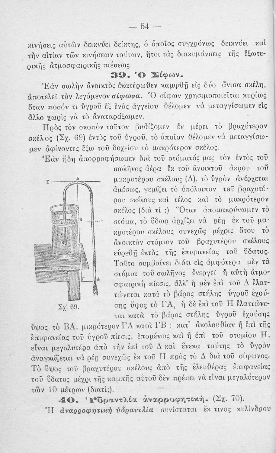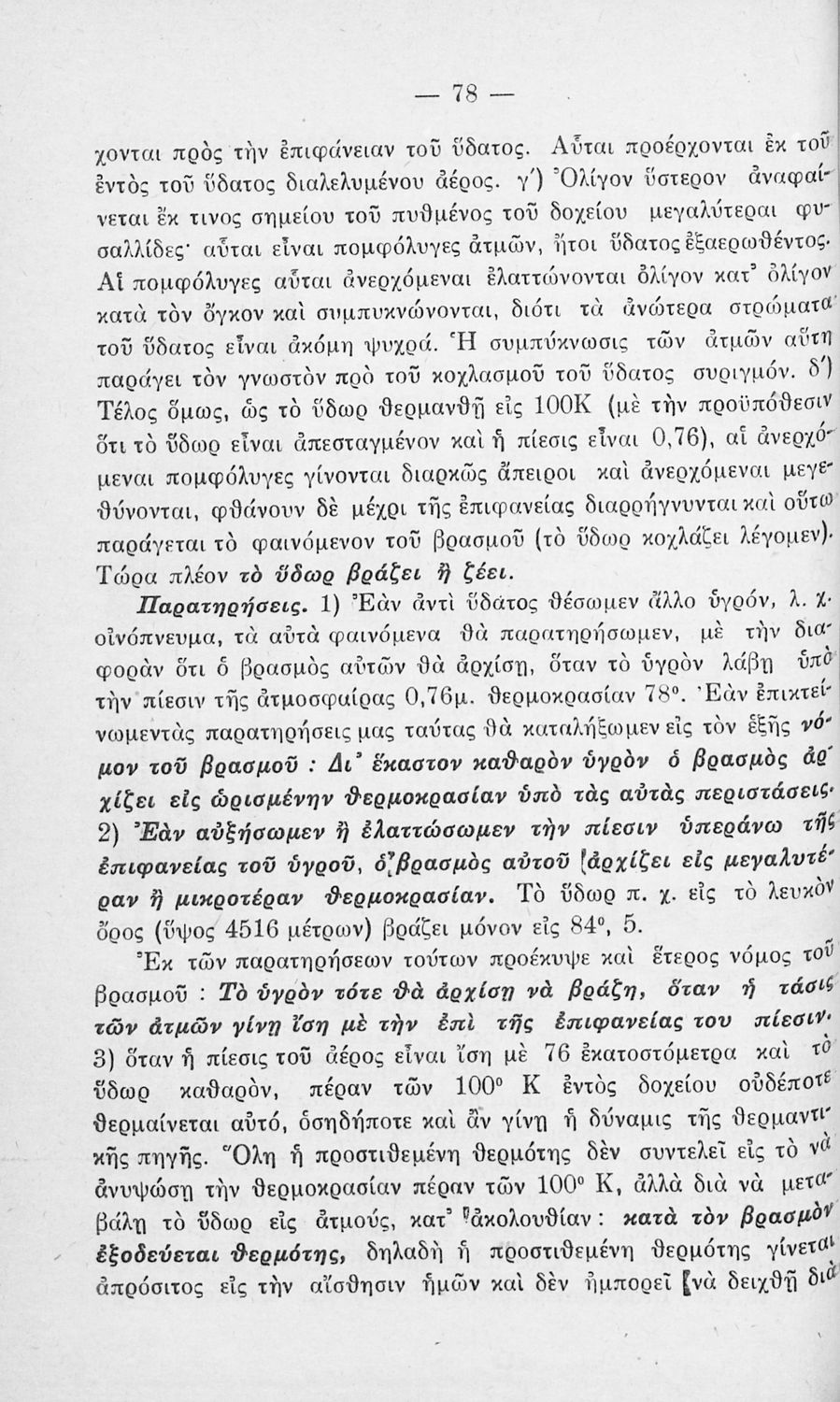 Σχολικό εγχειρίδιο Φυσικής και Χημείας της Γ' Τάξης των Ελληνικών Σχολείων και Παρθεναγωγείων. Το βιβλίο ξεκινάει παρουσιάζοντας τα βασικά στοιχεία ισορροπίας και κίνησης των στερεών σωμάτων και στη συνέχεια των υγρών και των αερίων. Μετά αναφέρεται στον ήχο, τη θερμότητα, το φως, στον ηλεκτρισμό και στον ηλεκτρομαγνητισμό. Στο δεύτερο μέρος, παρουσιάζει τα βασικά στοιχεία της χημείας, υδρογόνο, άζωτο, θείο, φώσφορο καθώς και τις διάφορες ενώσεις όπως το πετρέλαιο.