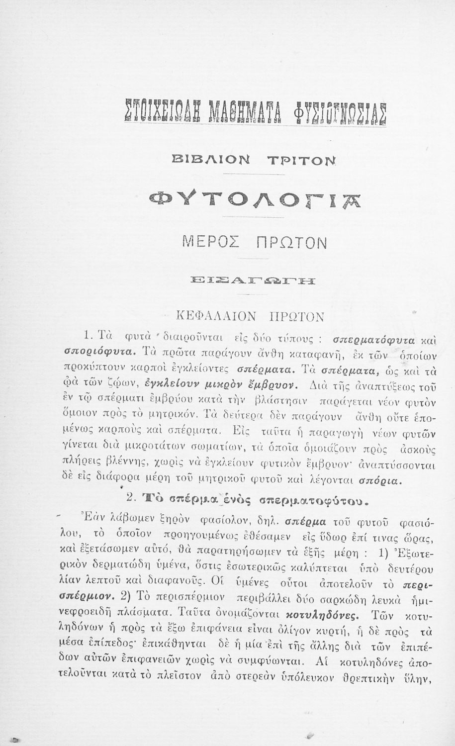 Τίτλος: Μεθοδικόν Εγχειρίδιον Φυσιογνωσίας περιλαμβάνον στοιχεία Ανθρωπολογίας, Ζωολογίας, Φυτολογίας, Ορυκτολογίας και Γεωλογίας δια τους μαθητάς και μαθητρίας των Εμπορικών Σχολών