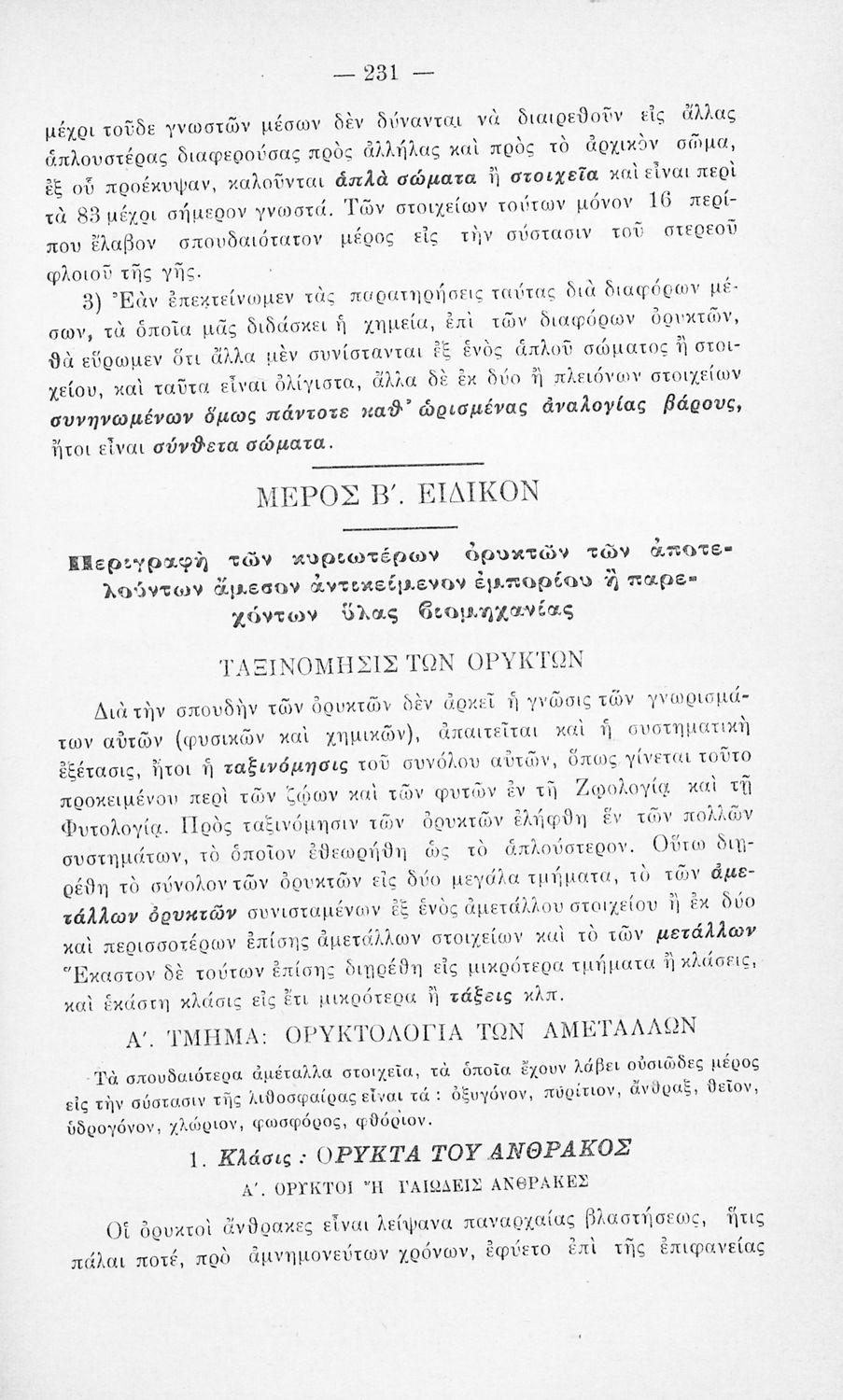 Μάθημα: Φυτολογία, Ζωολογία, Ανθρωπολογία, Ορυκτολογία, Γεωλογία
